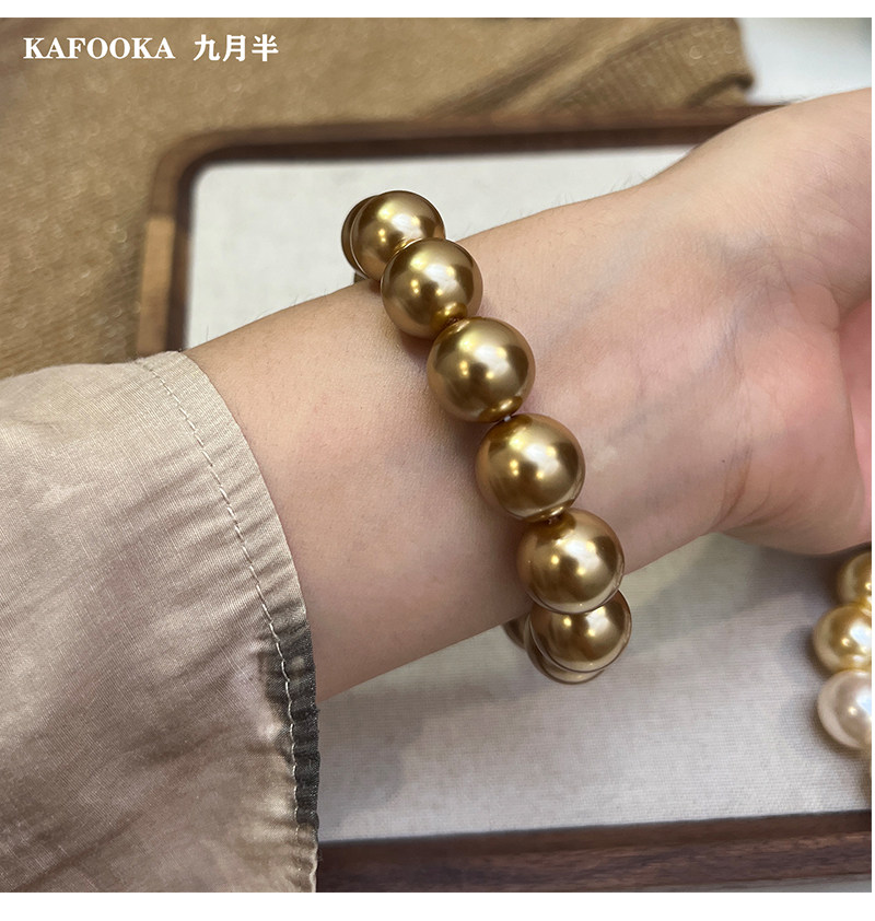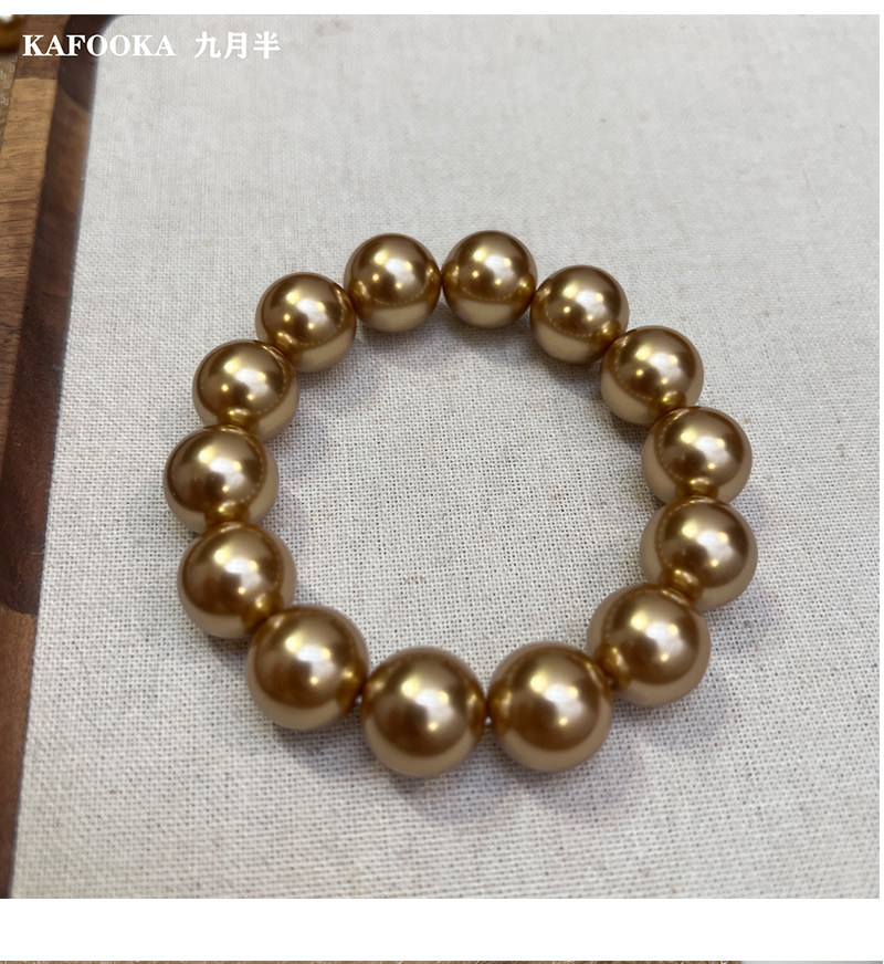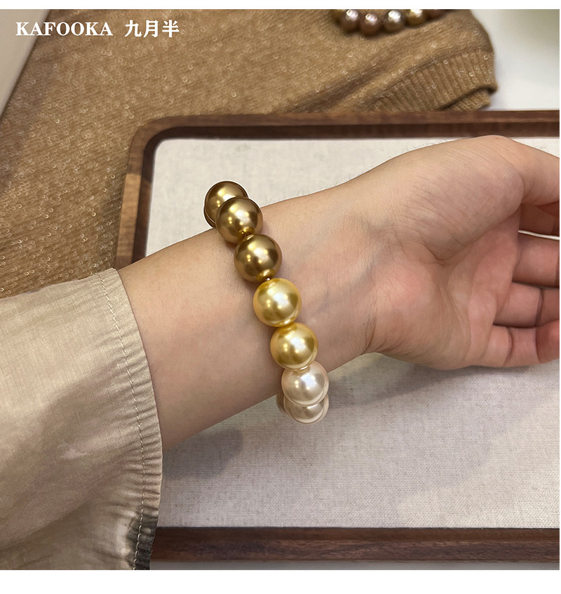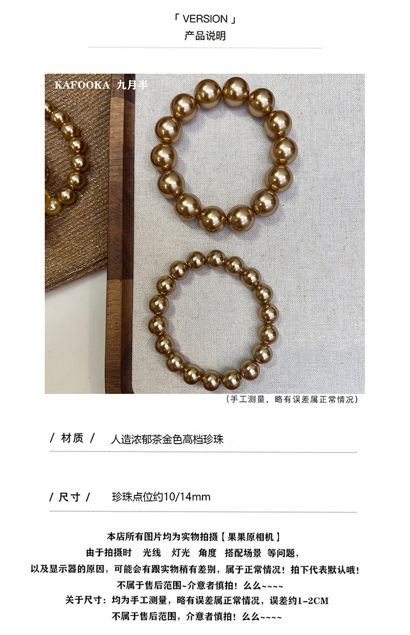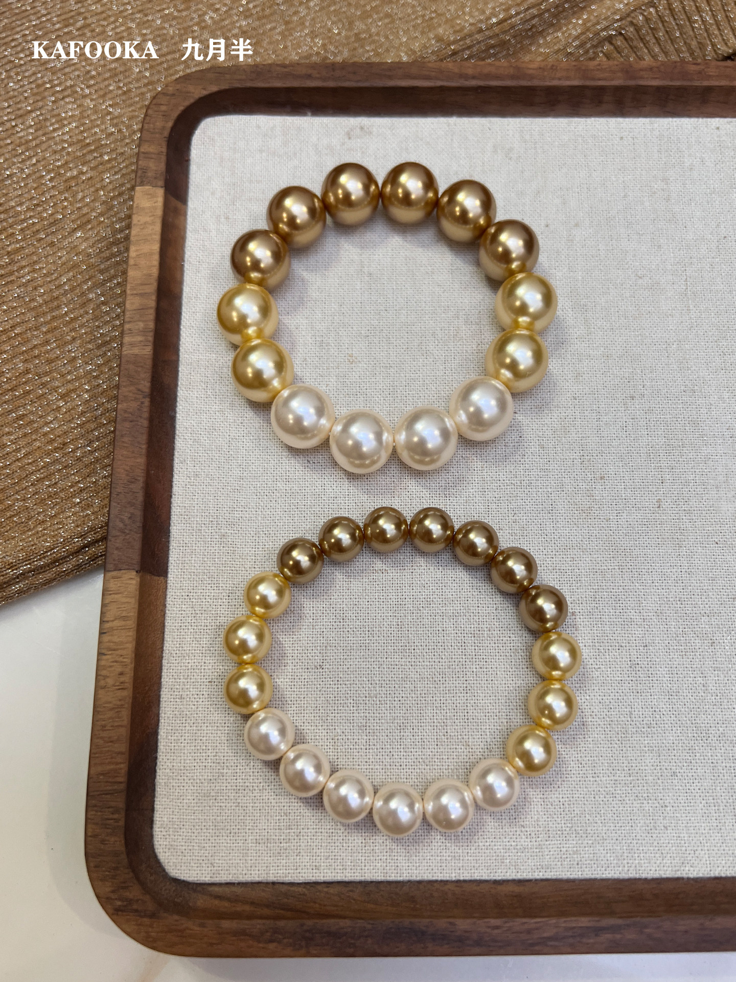 原创 浓郁茶金色珍珠手链圆润饱满高档轻奢手工弹力绳珠子手串女