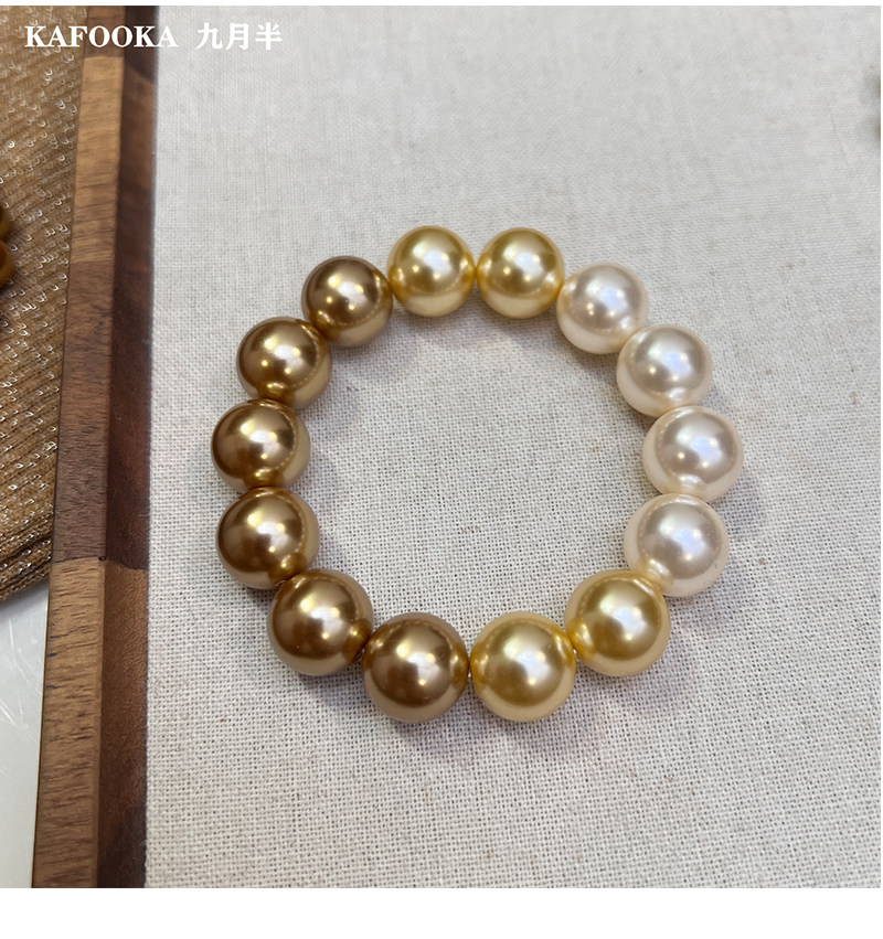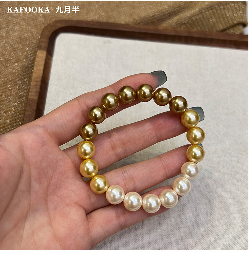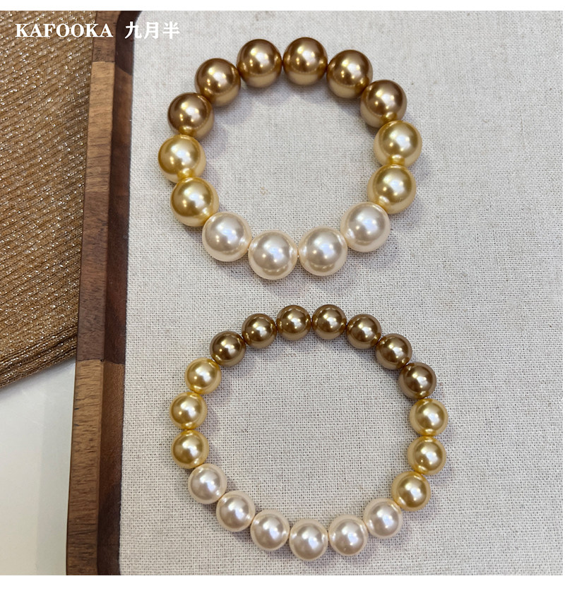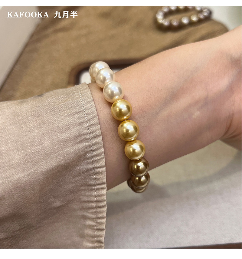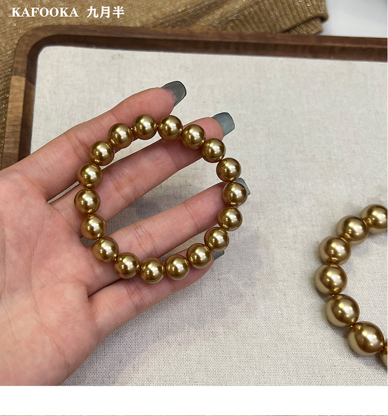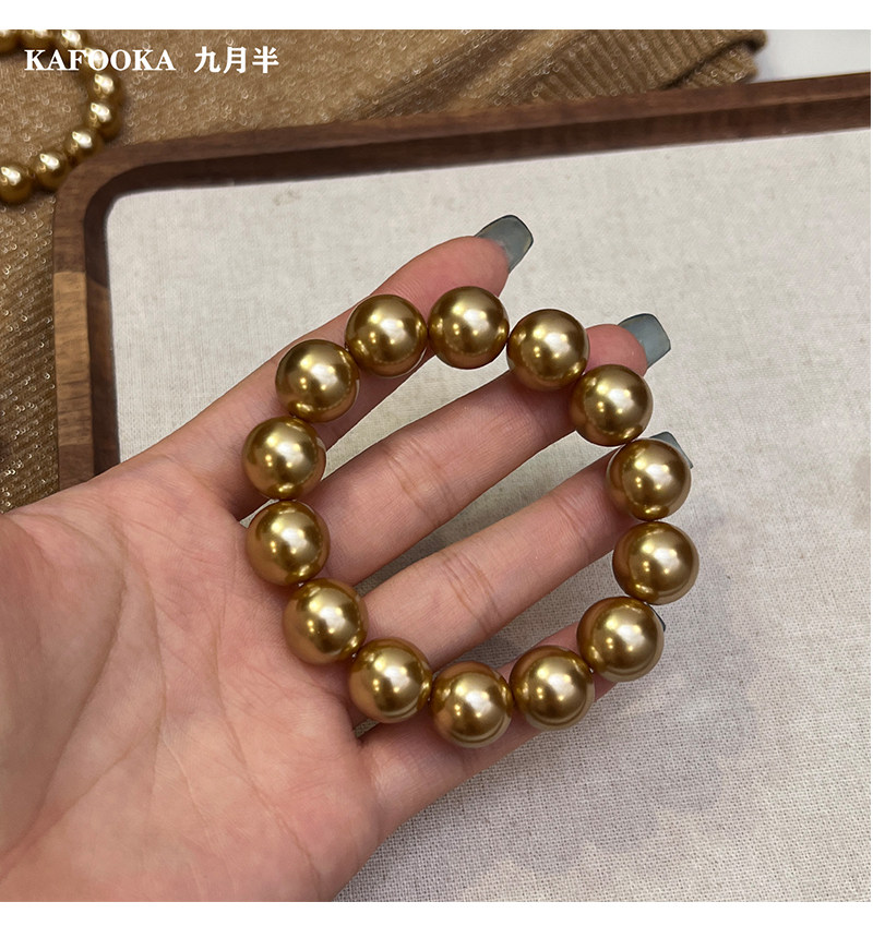原创 浓郁茶金色珍珠手链圆润饱满高档轻奢手工弹力绳珠子手串女
