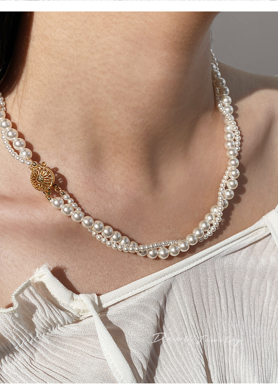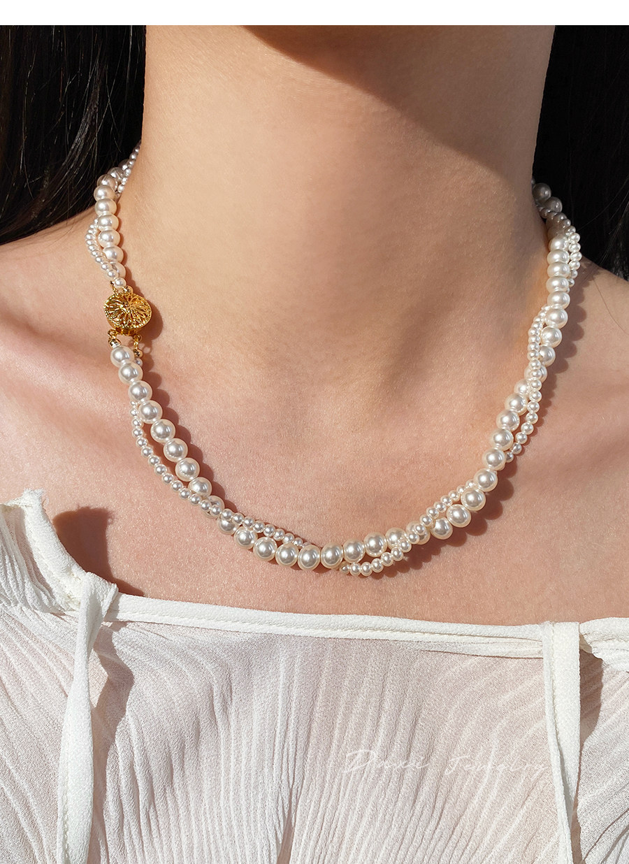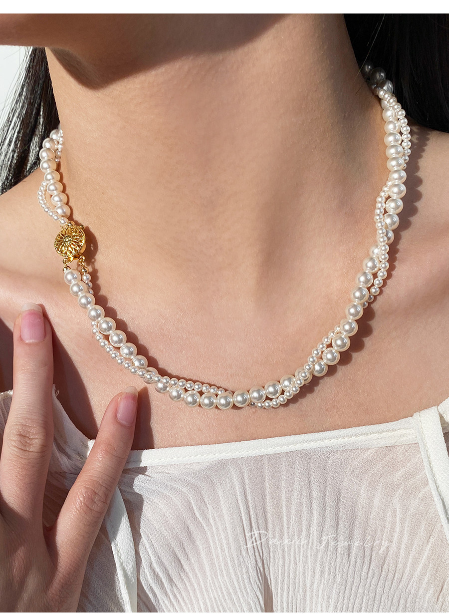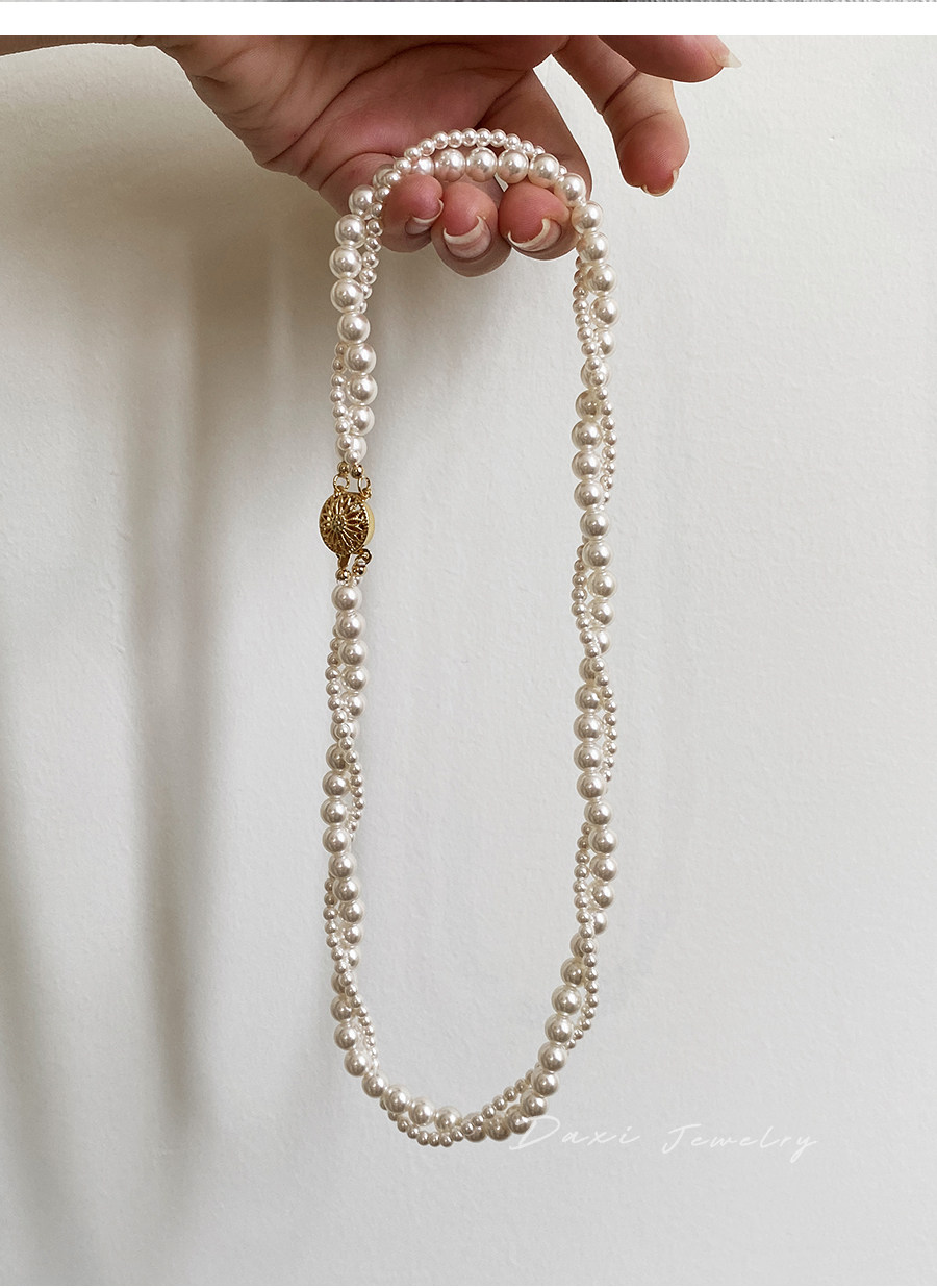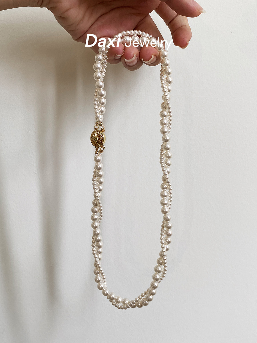 法式双层缠绕麻花珍珠项链女轻奢高级感小众复古奶白色叠戴锁骨链