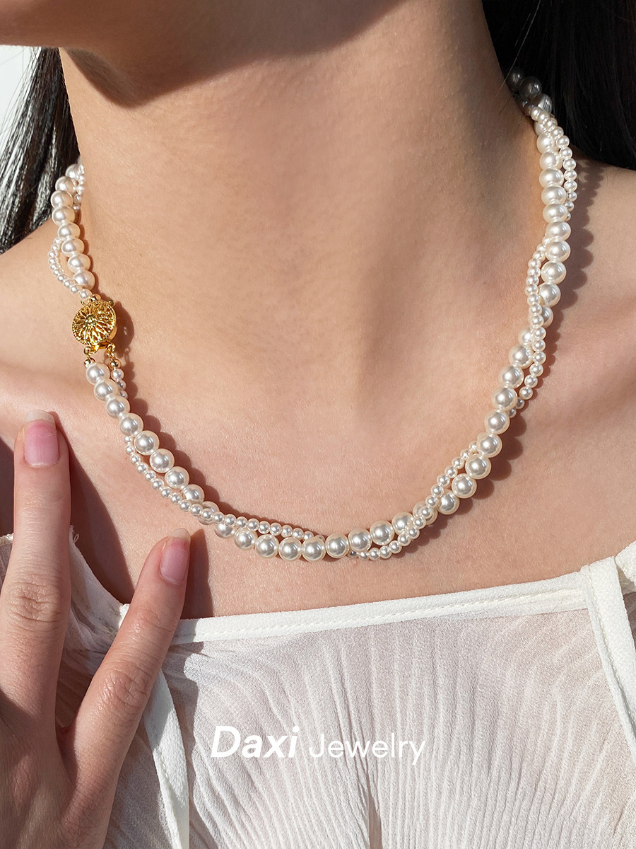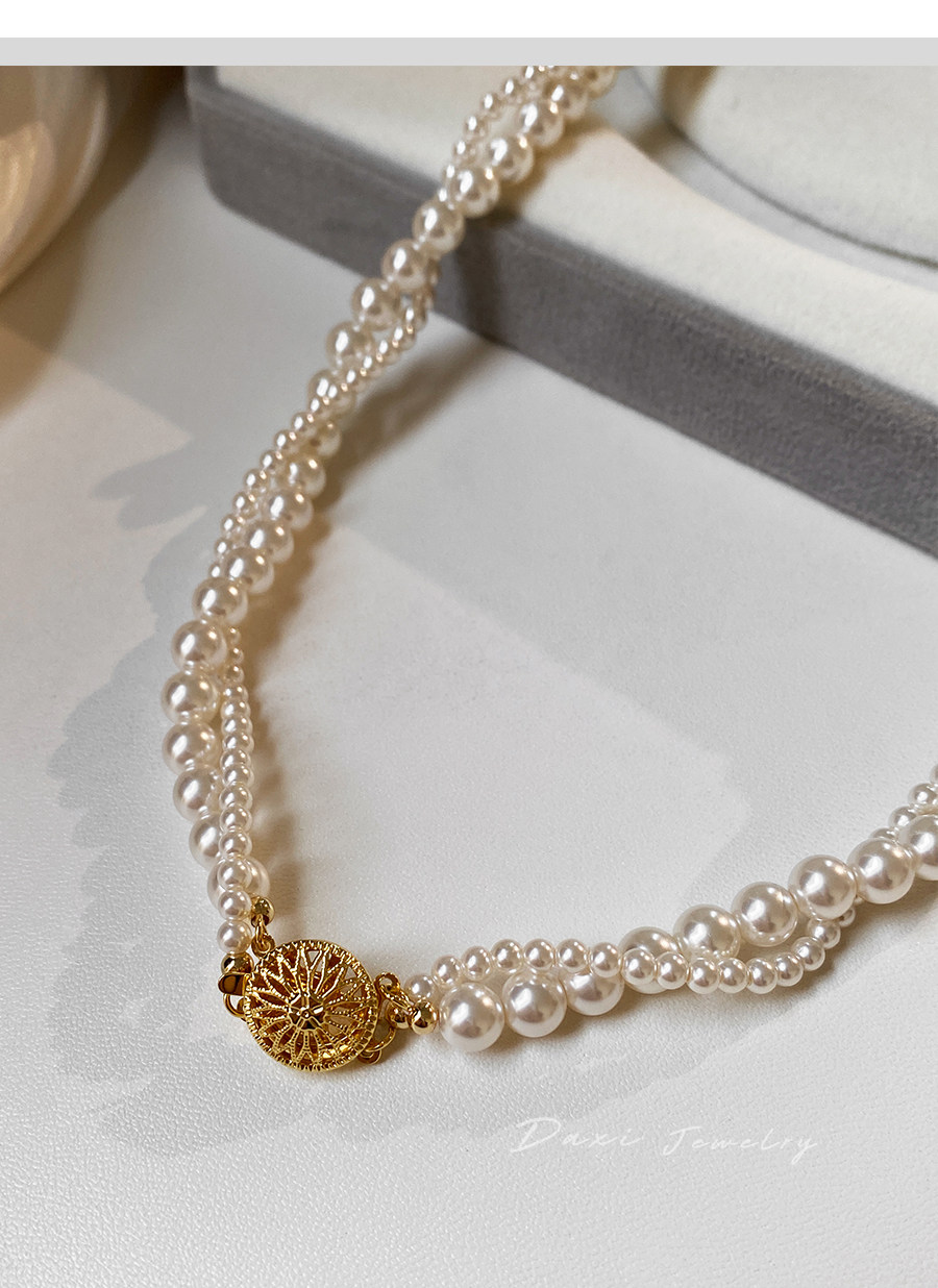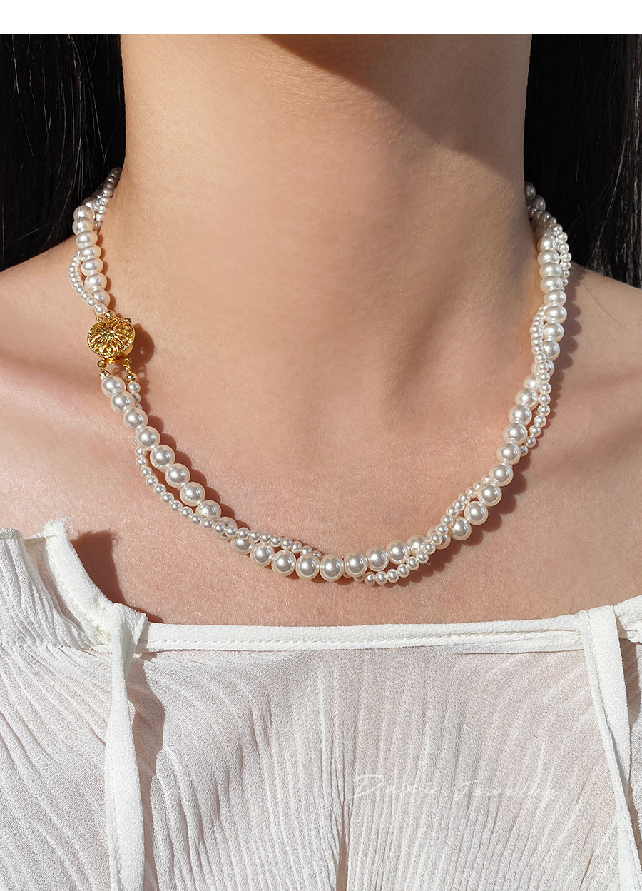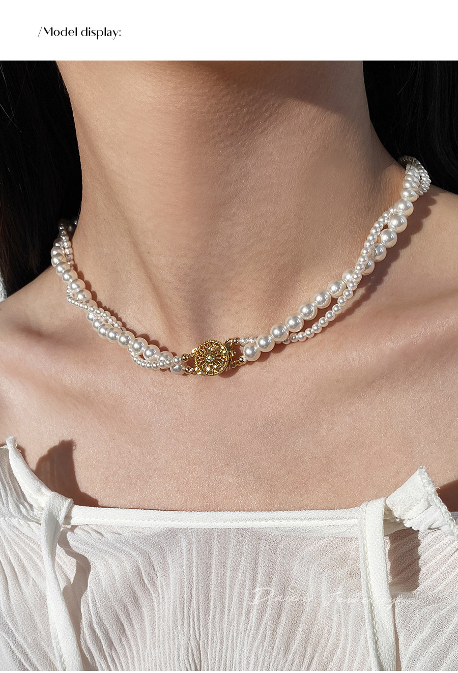 法式双层缠绕麻花珍珠项链女轻奢高级感小众复古奶白色叠戴锁骨链