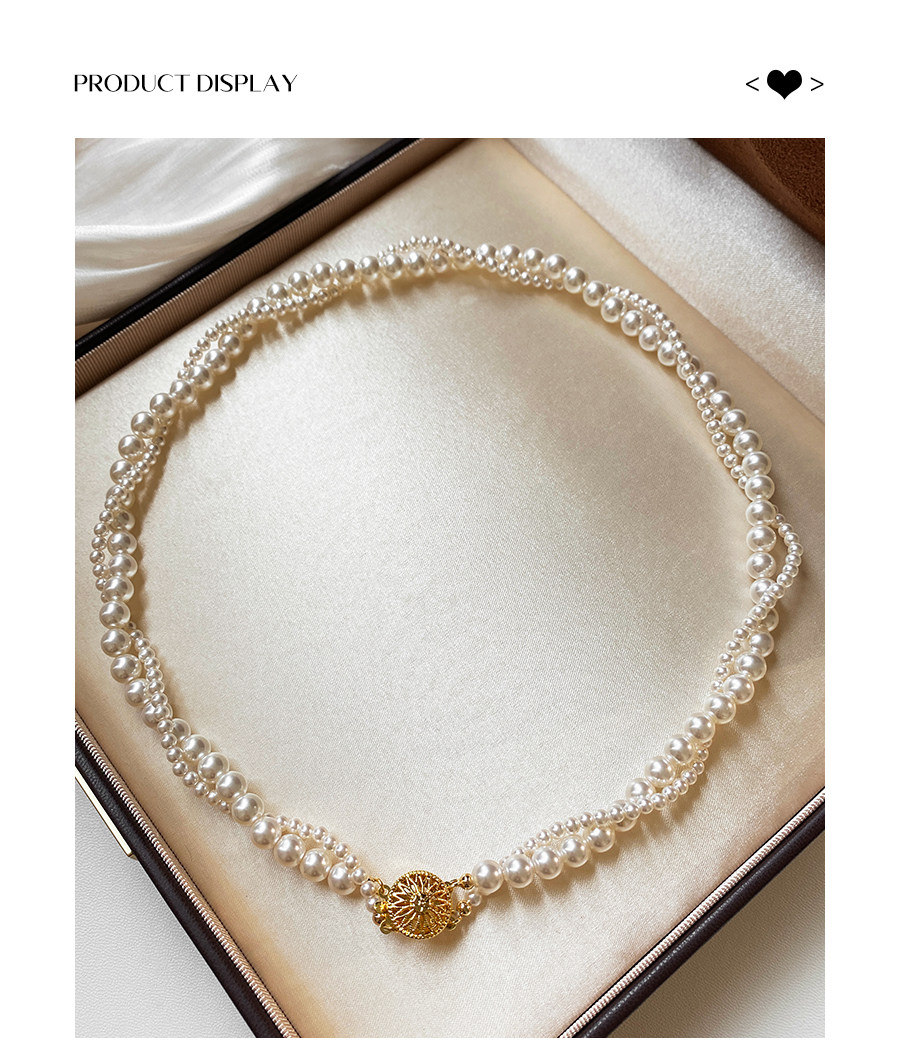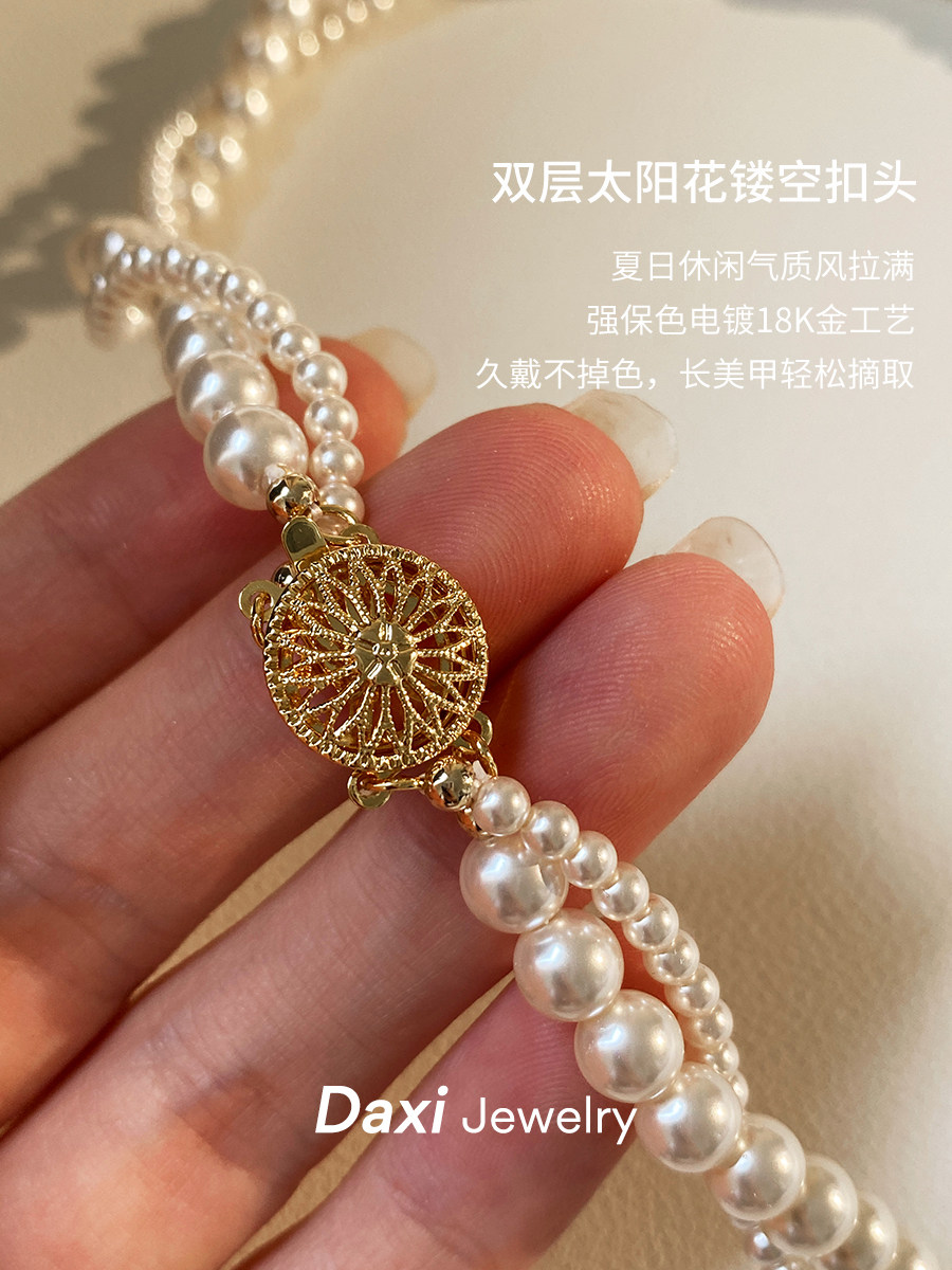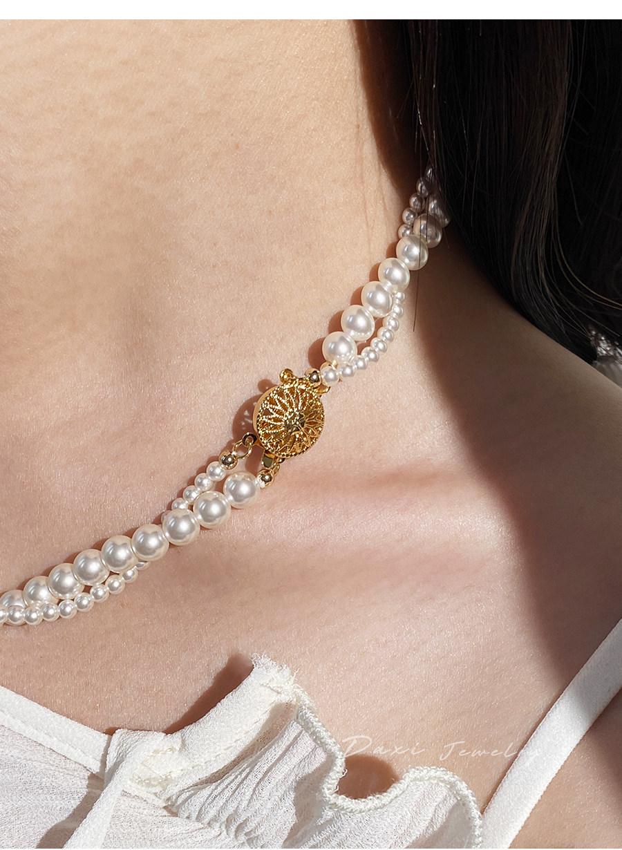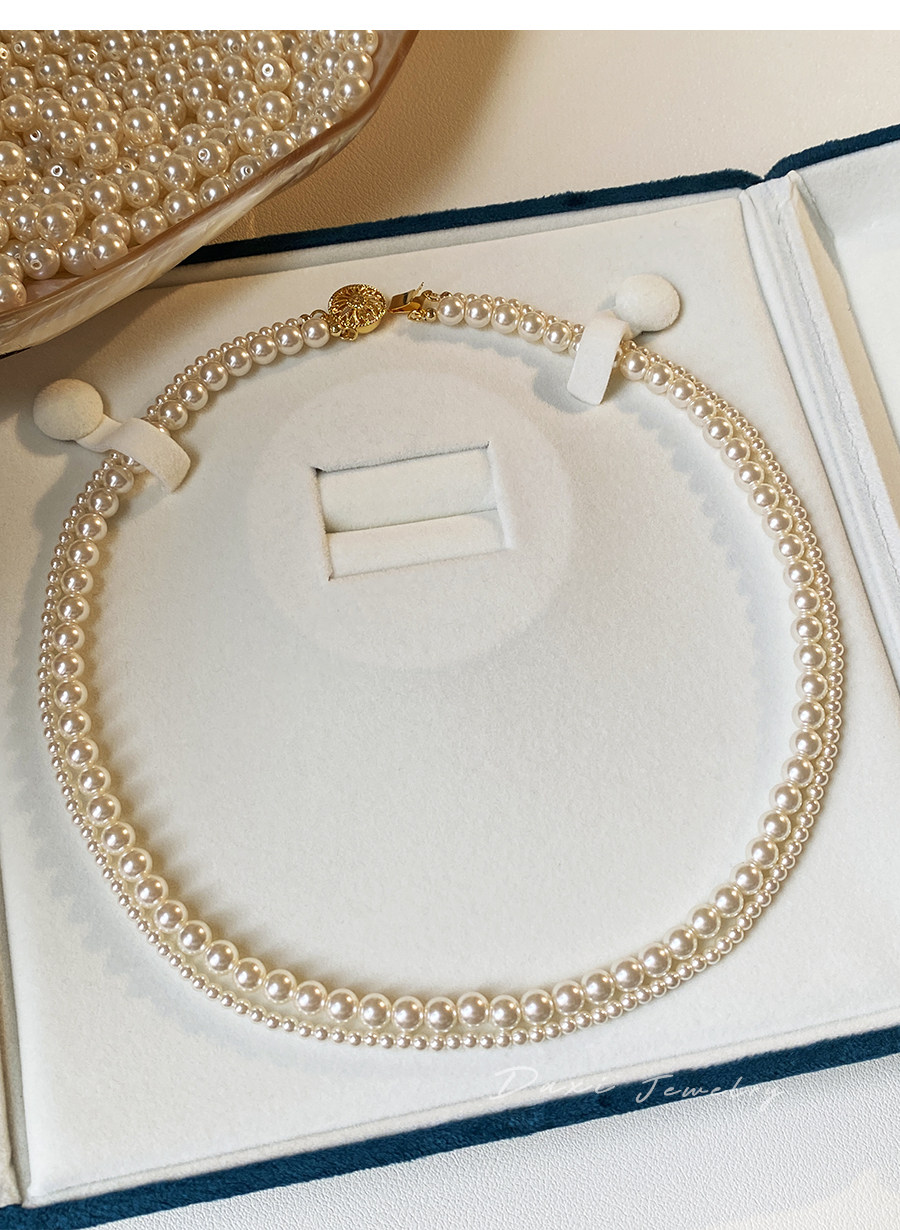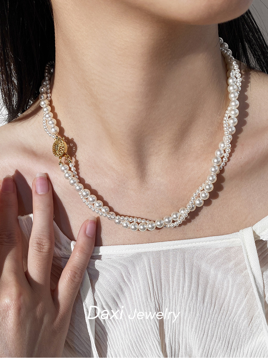 法式双层缠绕麻花珍珠项链女轻奢高级感小众复古奶白色叠戴锁骨链