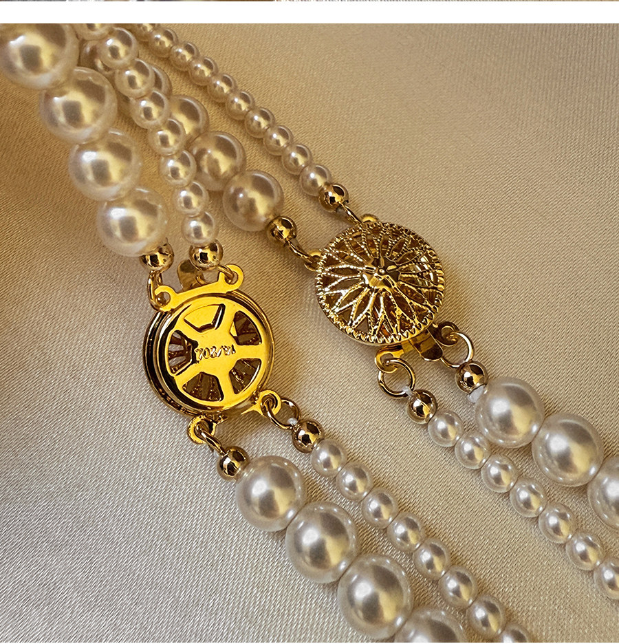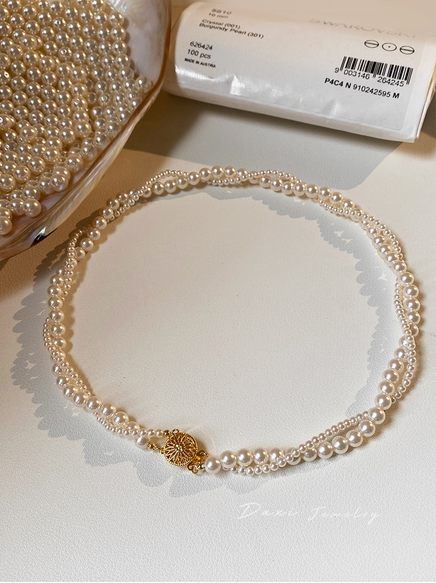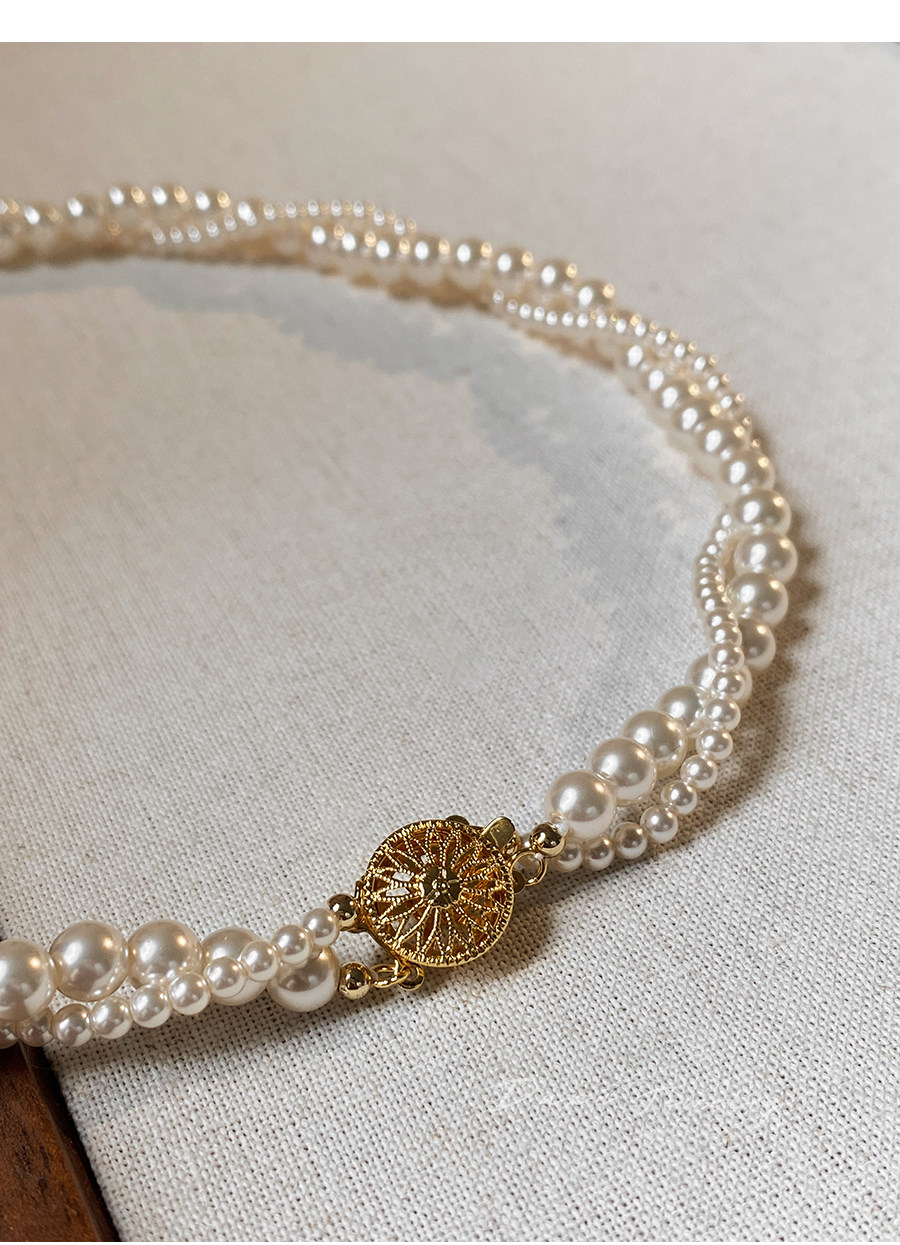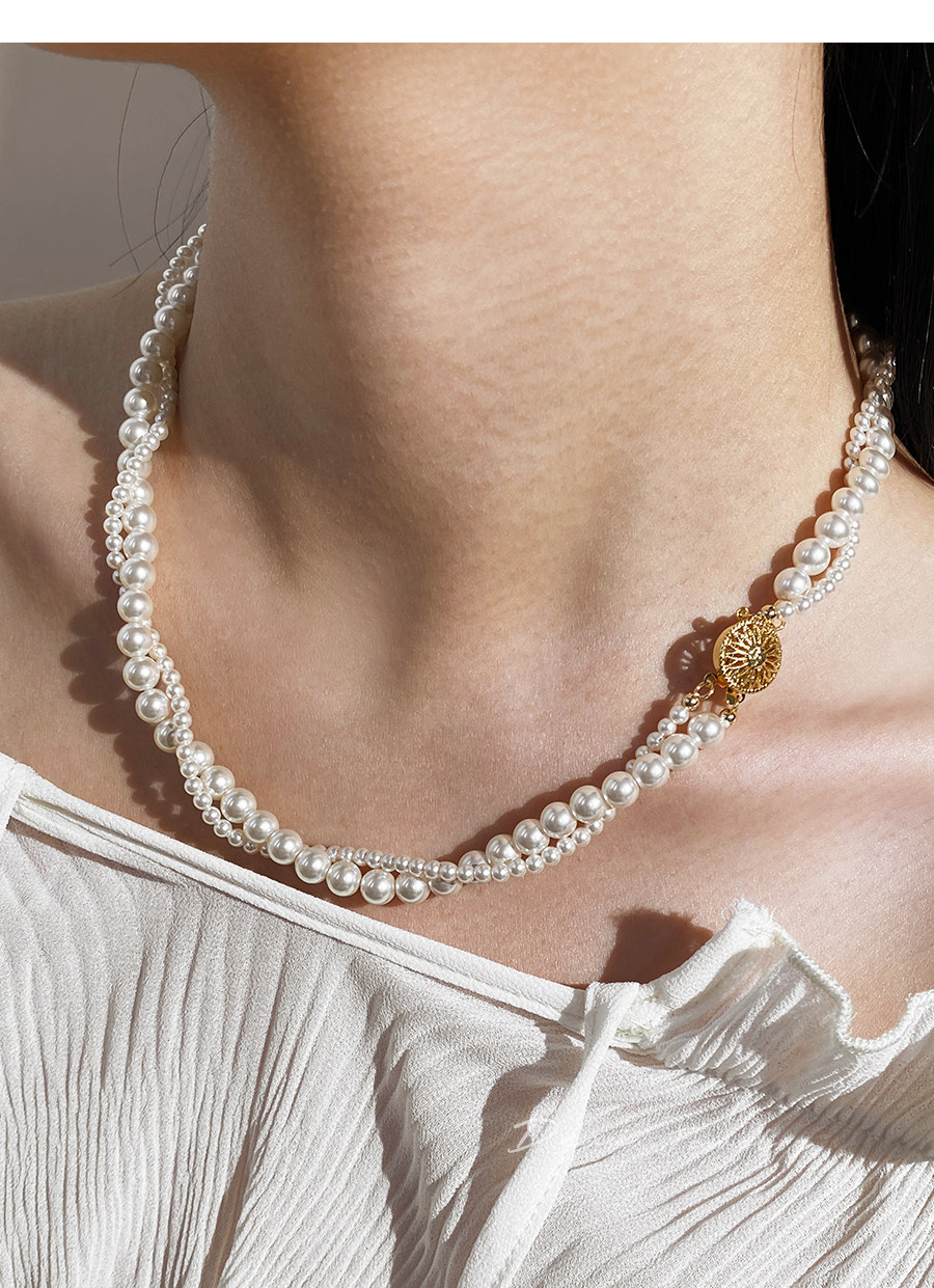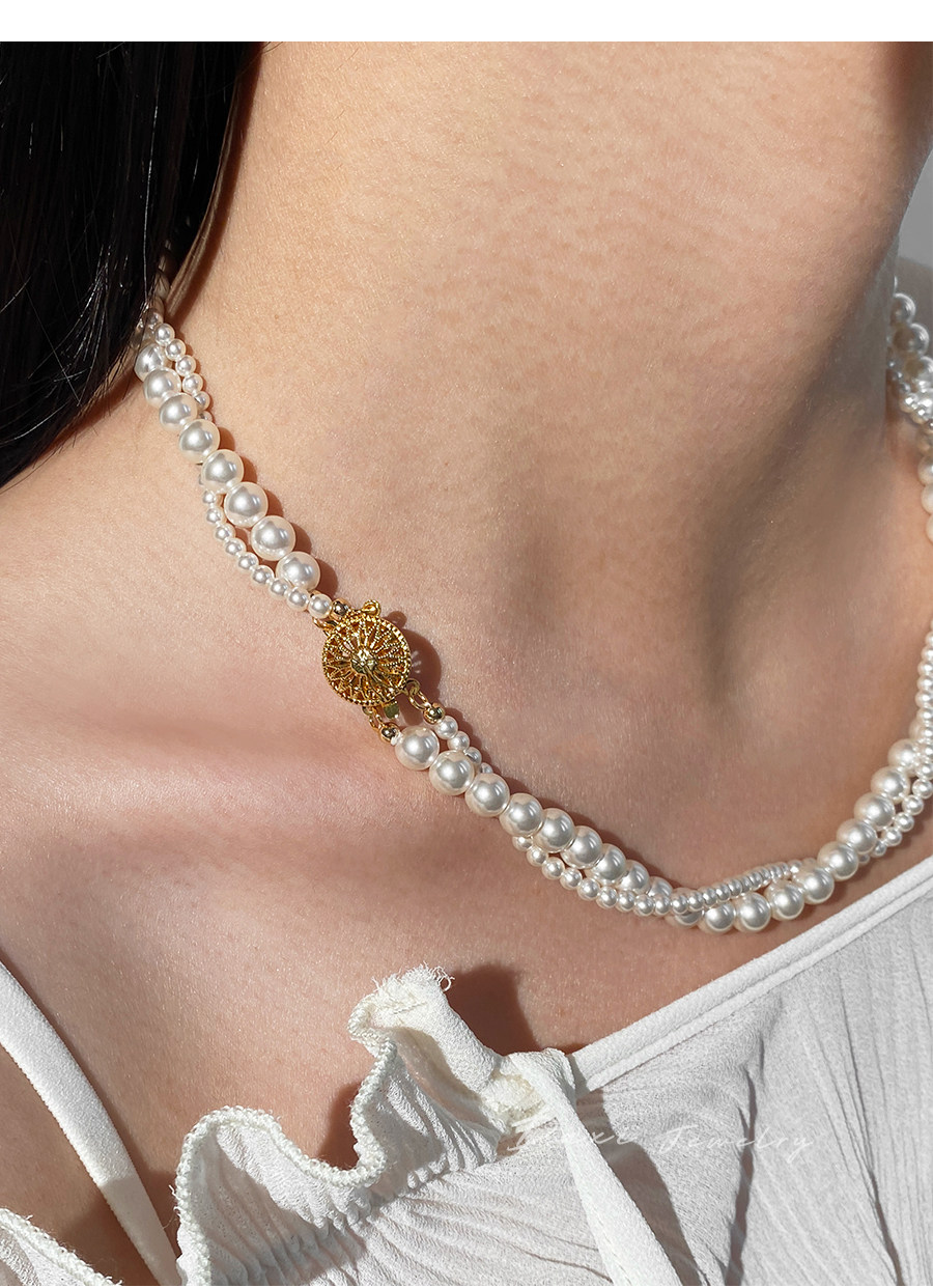 法式双层缠绕麻花珍珠项链女轻奢高级感小众复古奶白色叠戴锁骨链