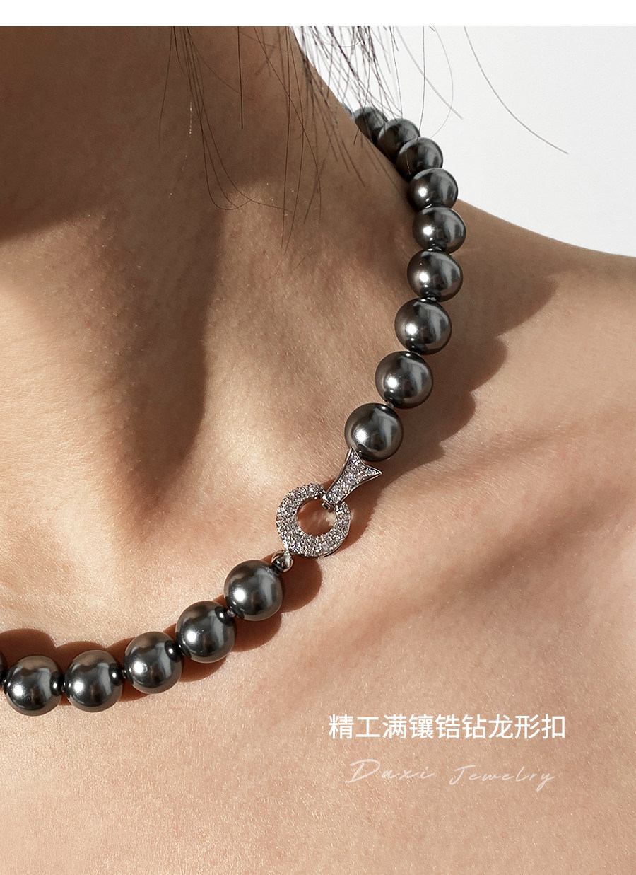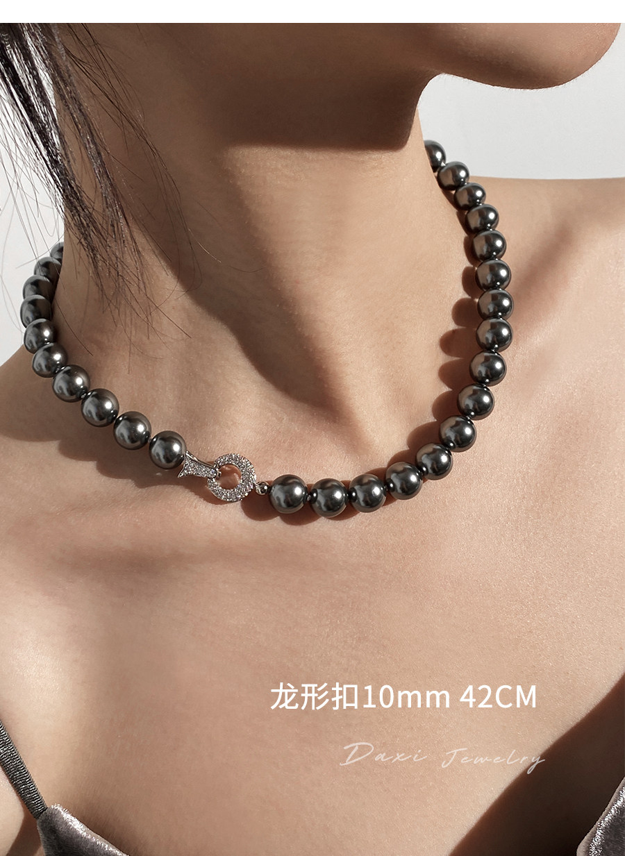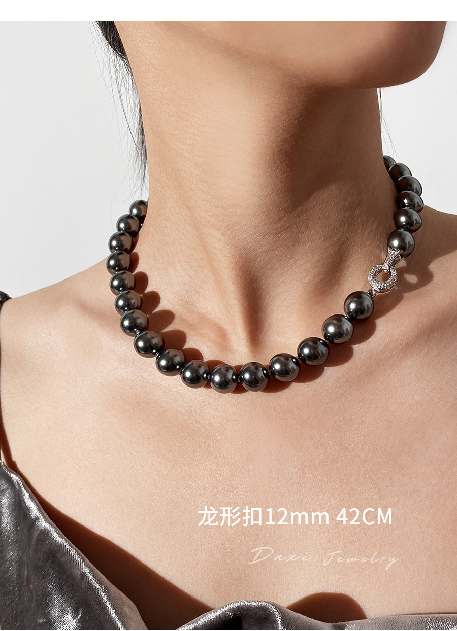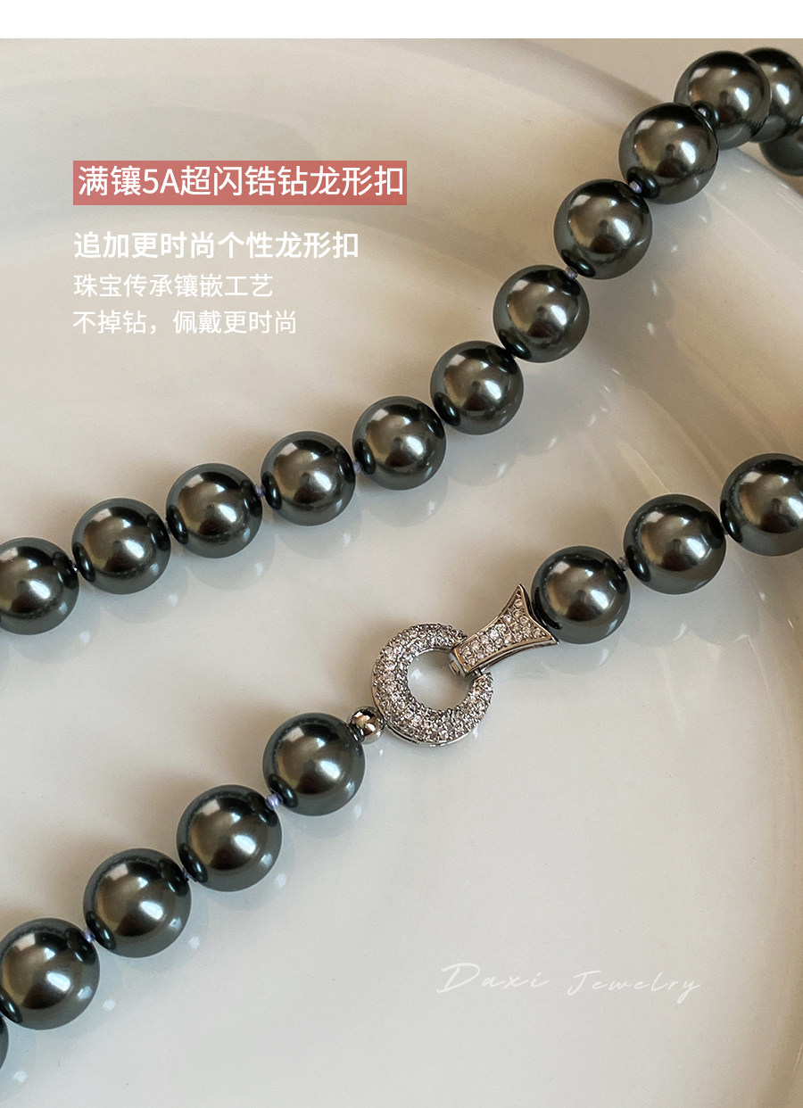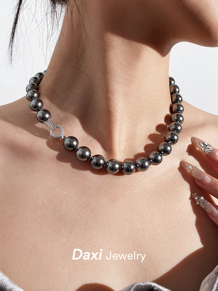 倪妮同款强光大溪地黑珍珠项链轻奢高级感锁骨baby颈链拉贡毛衣链