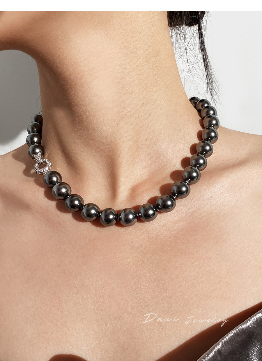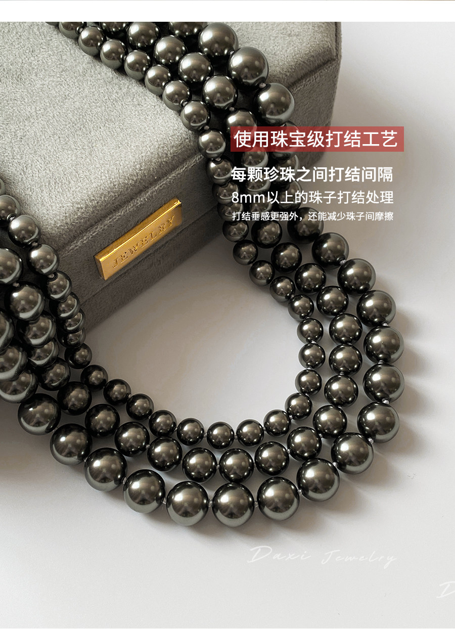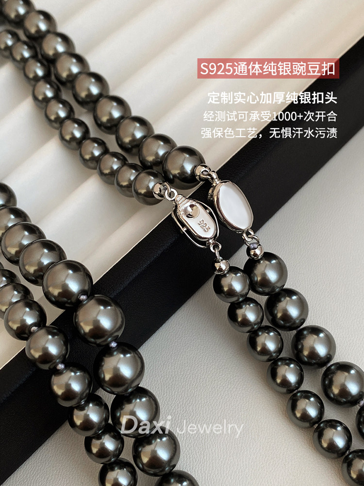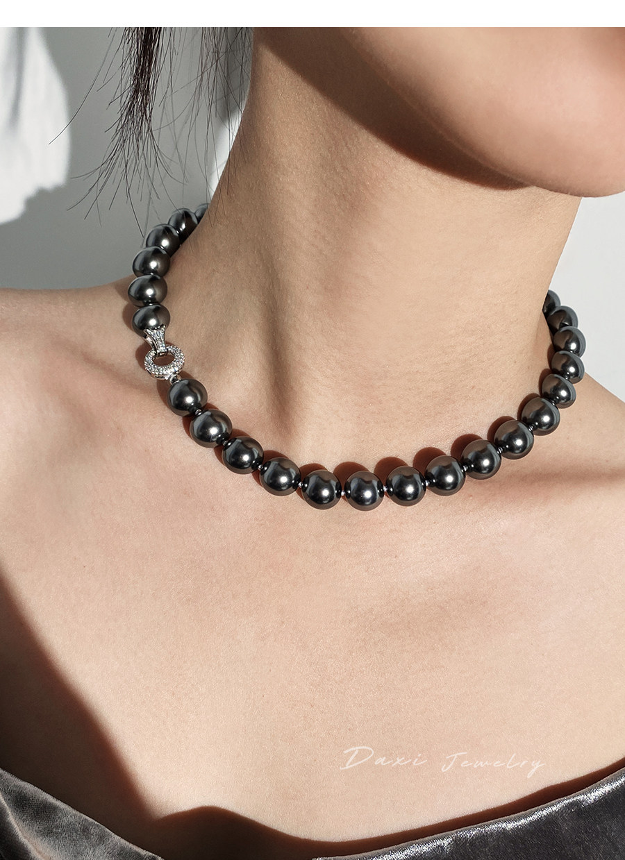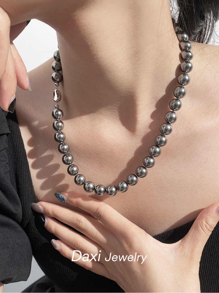 倪妮同款强光大溪地黑珍珠项链轻奢高级感锁骨baby颈链拉贡毛衣链