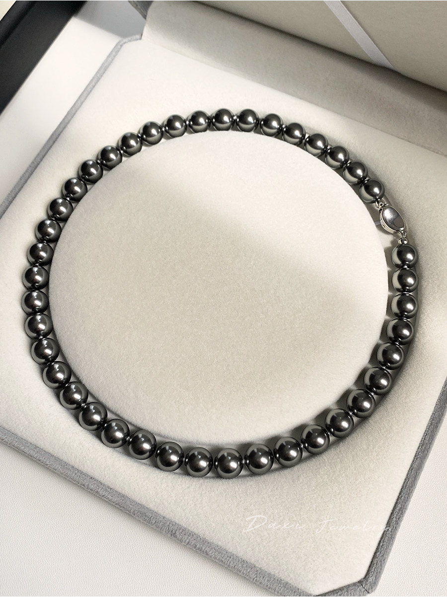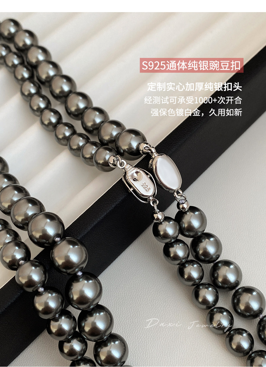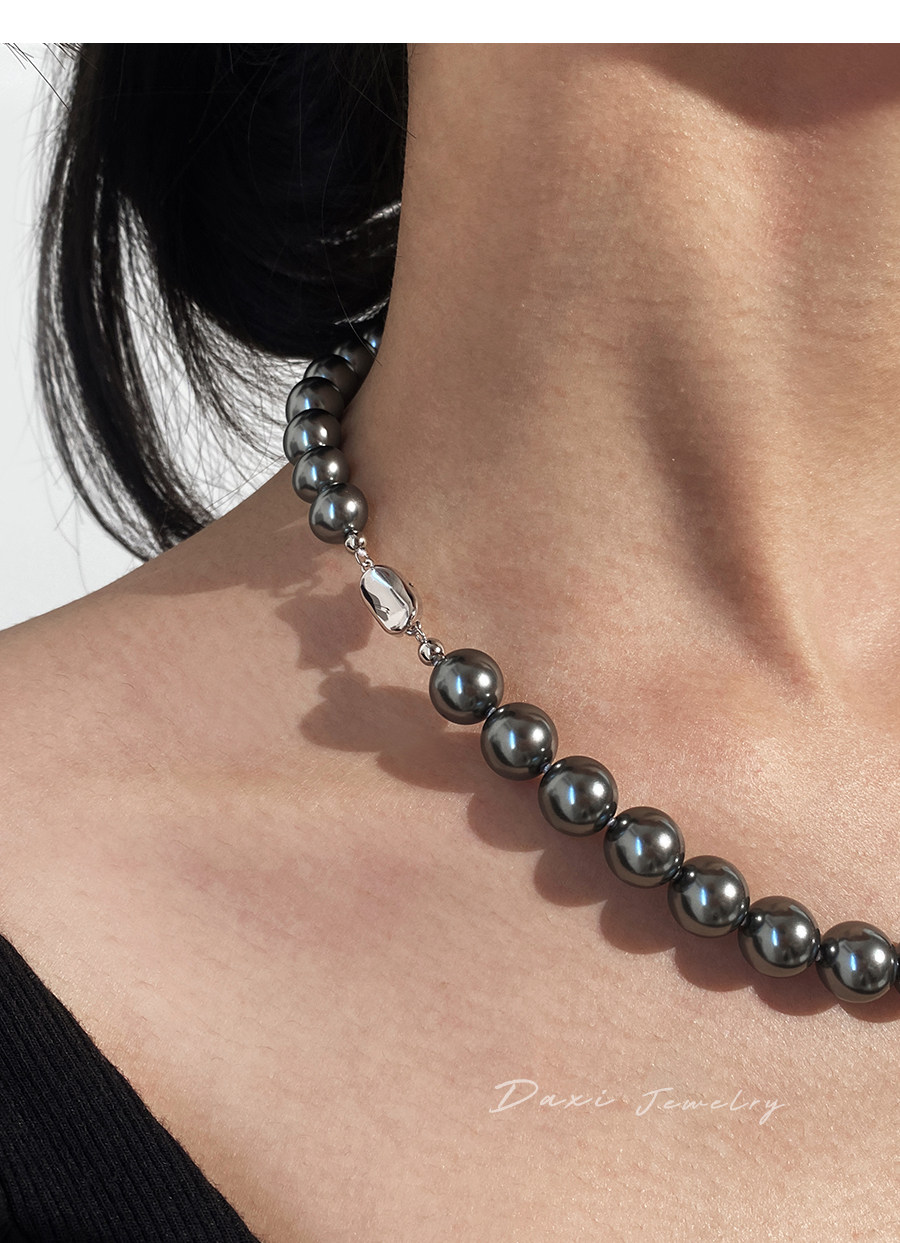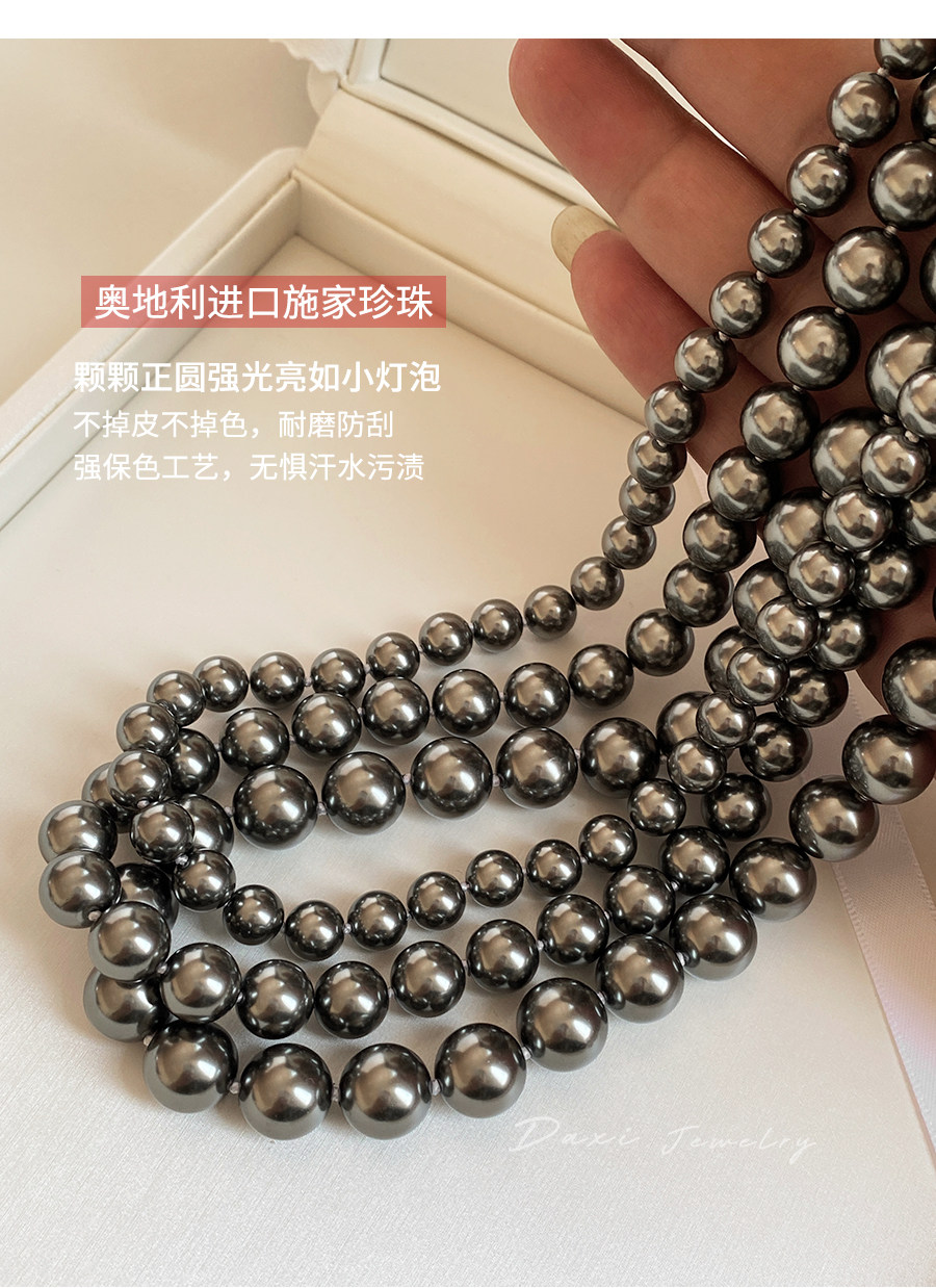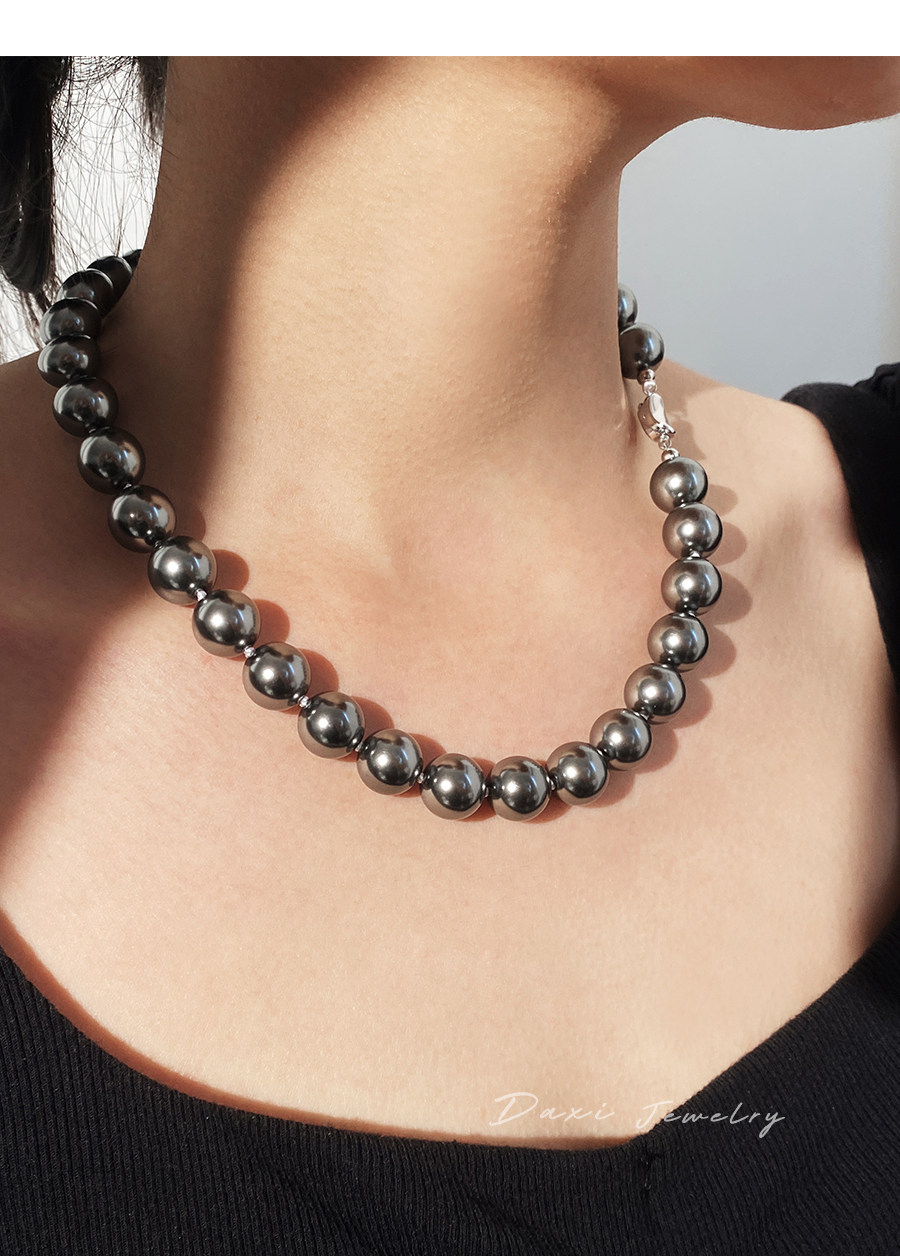 倪妮同款强光大溪地黑珍珠项链轻奢高级感锁骨baby颈链拉贡毛衣链