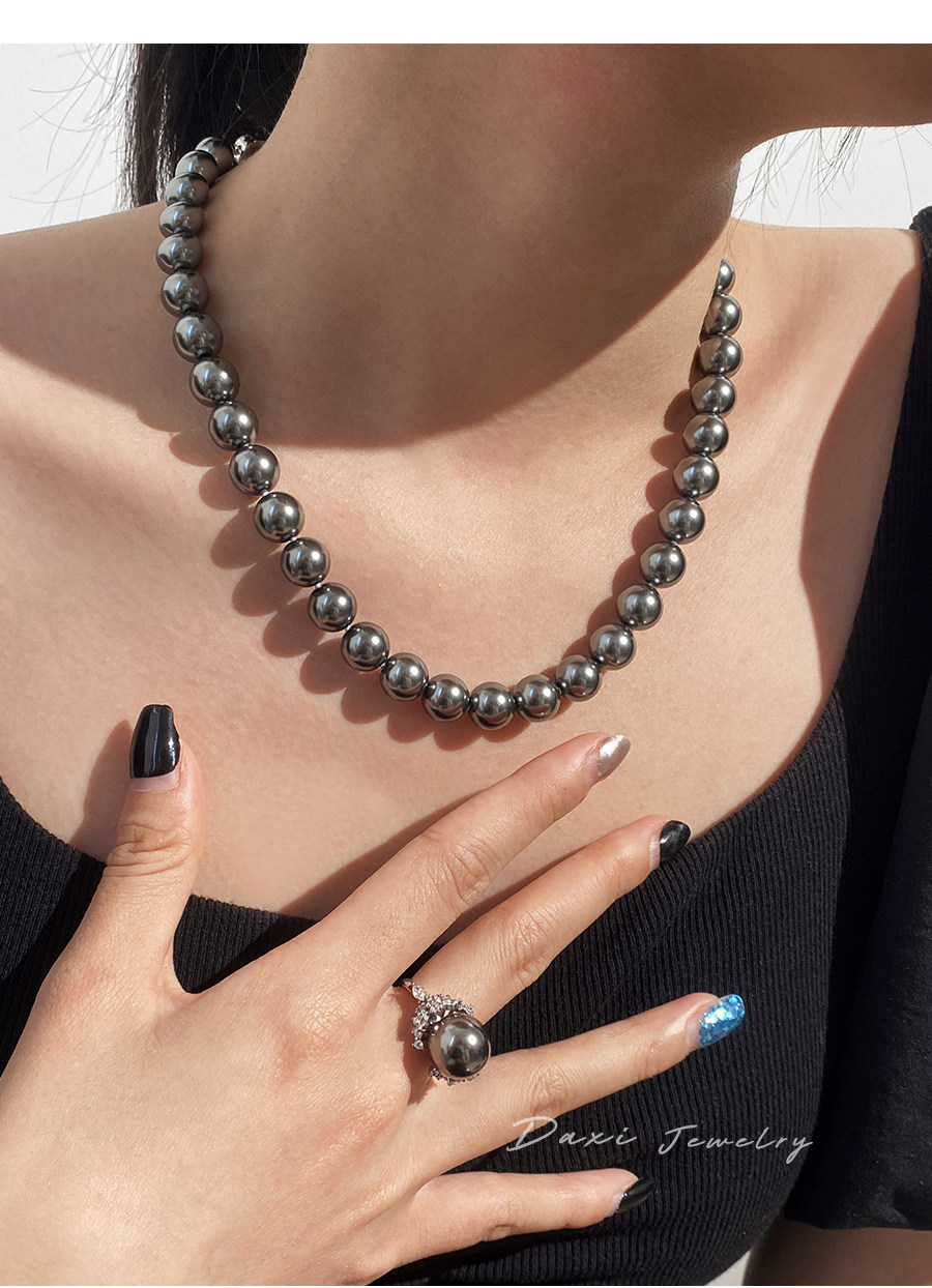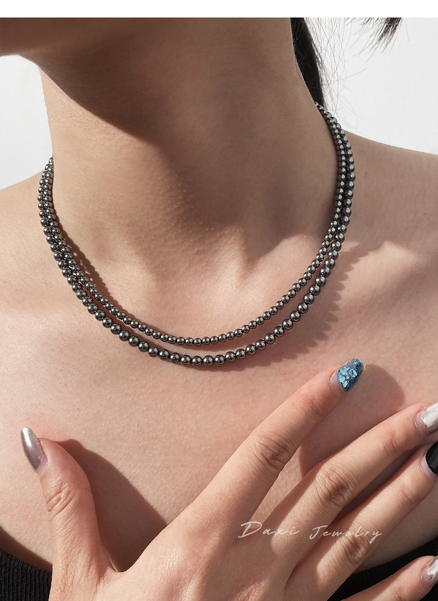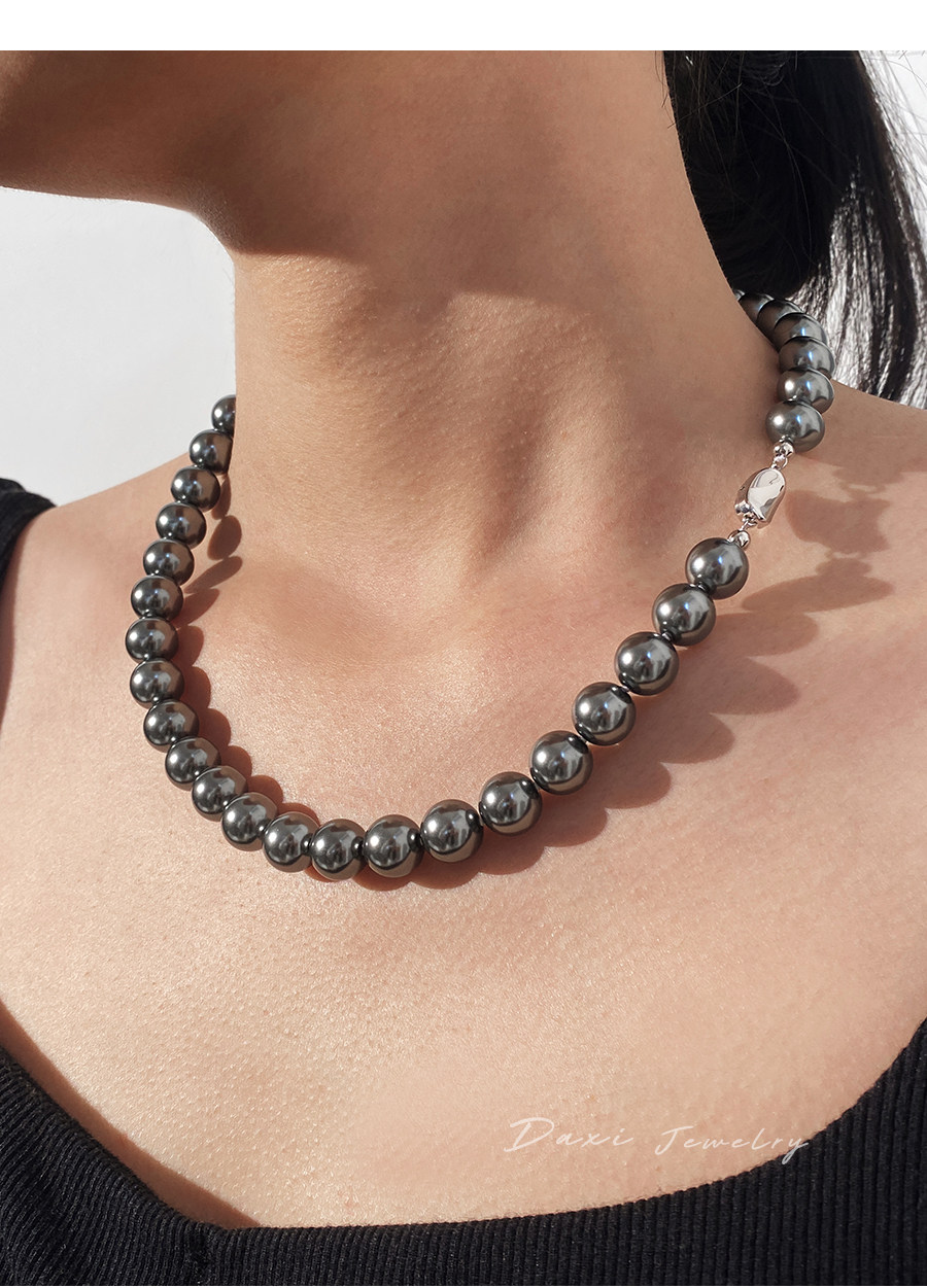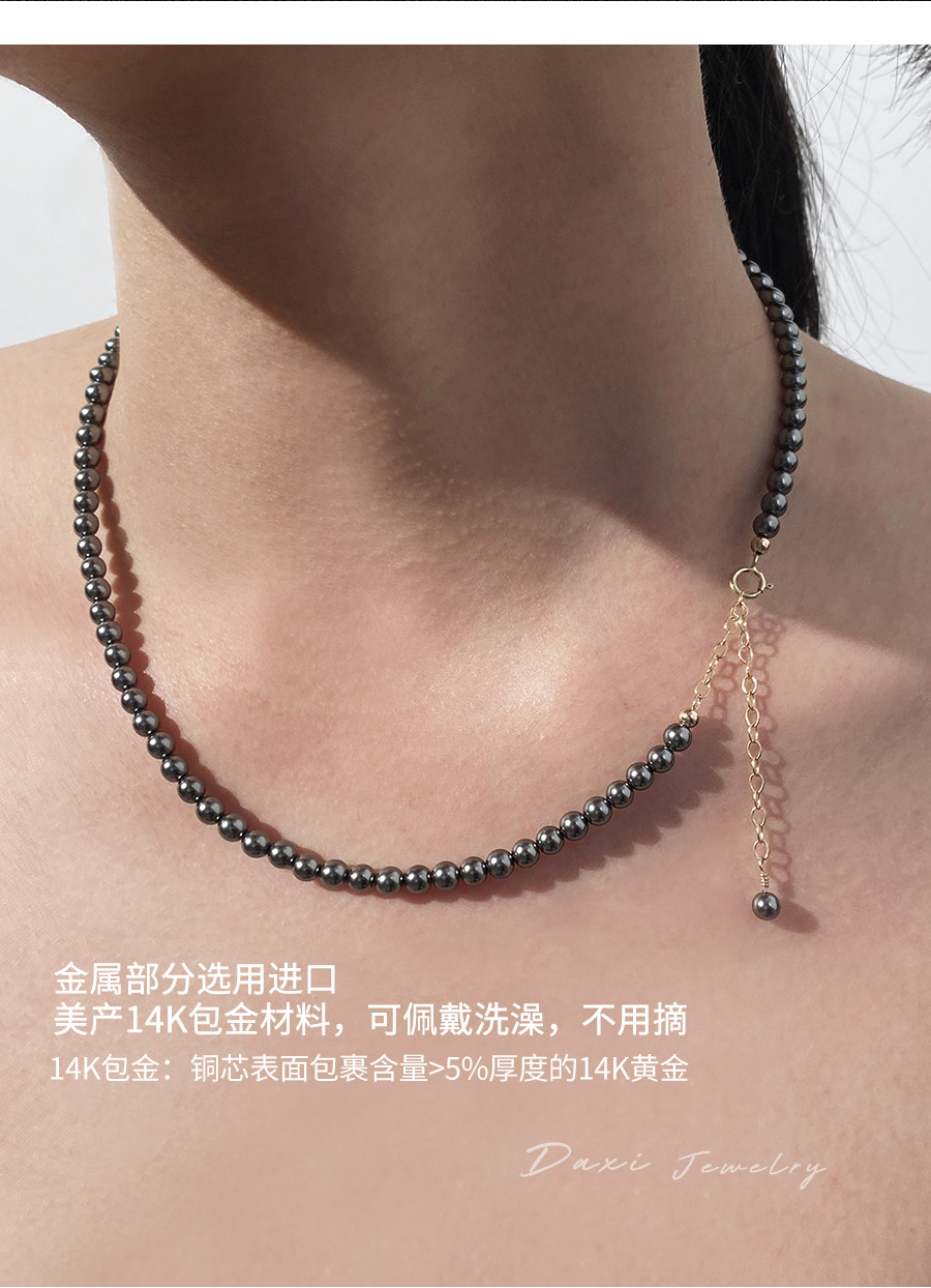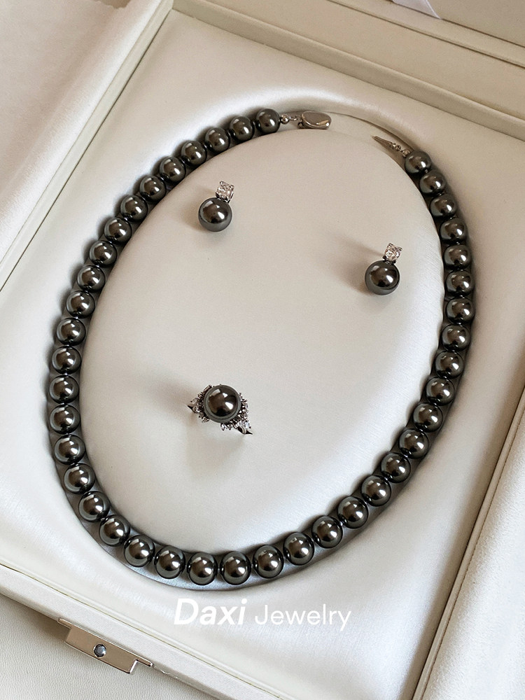 倪妮同款强光大溪地黑珍珠项链轻奢高级感锁骨baby颈链拉贡毛衣链