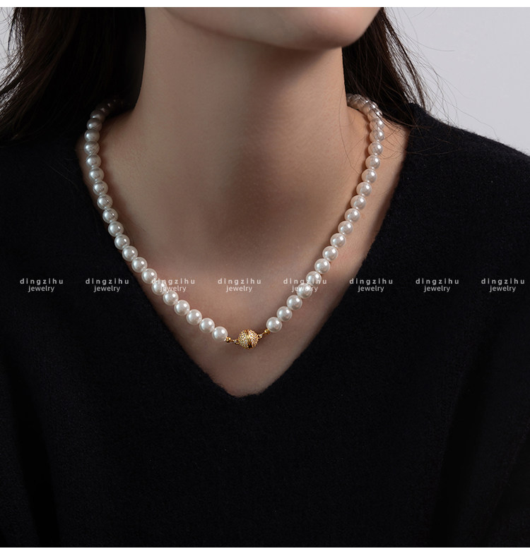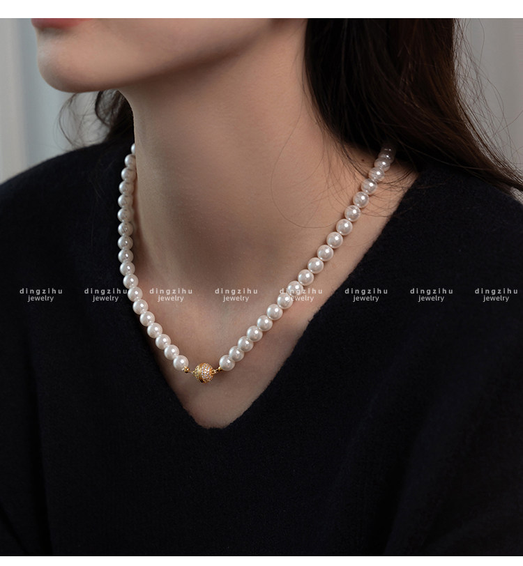 8mmS家珍珠项链女士轻奢气质高级感秋冬季毛衣链新款锁骨链颈链