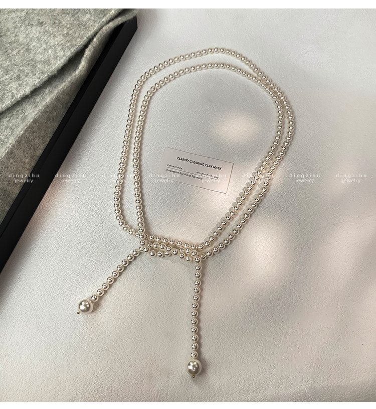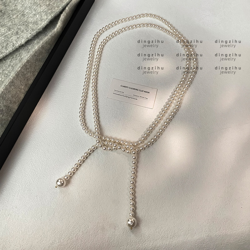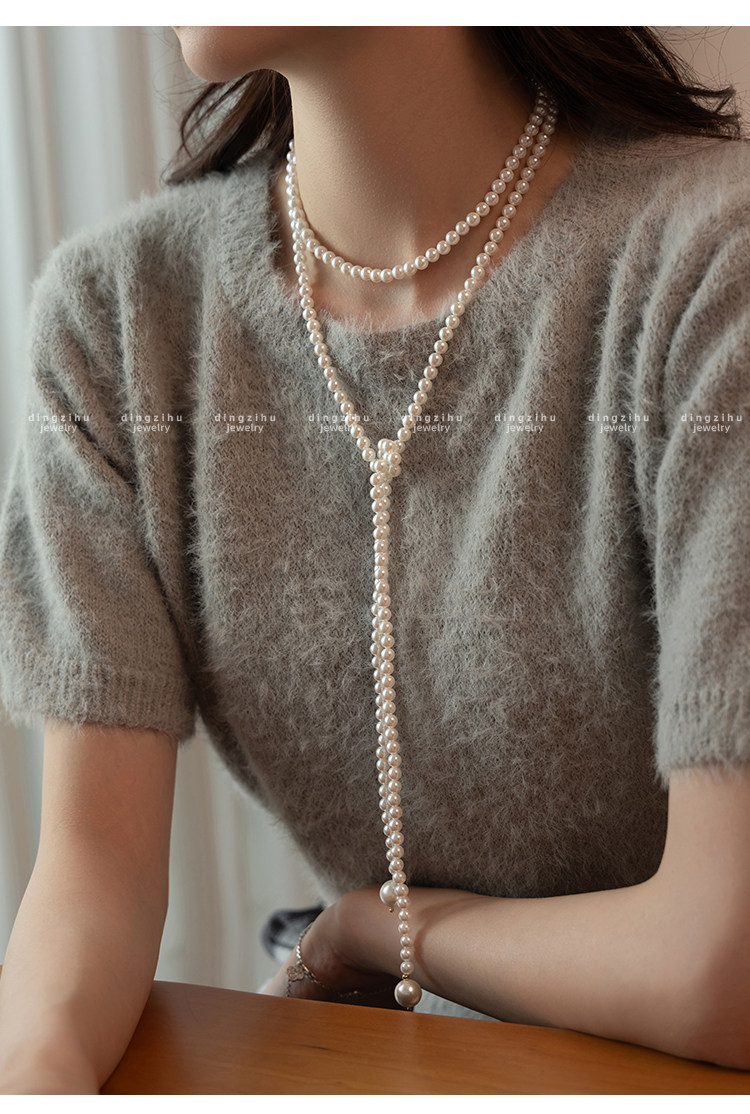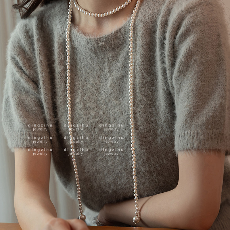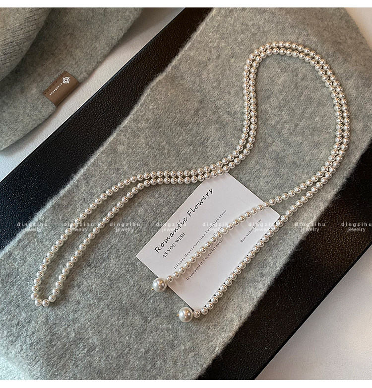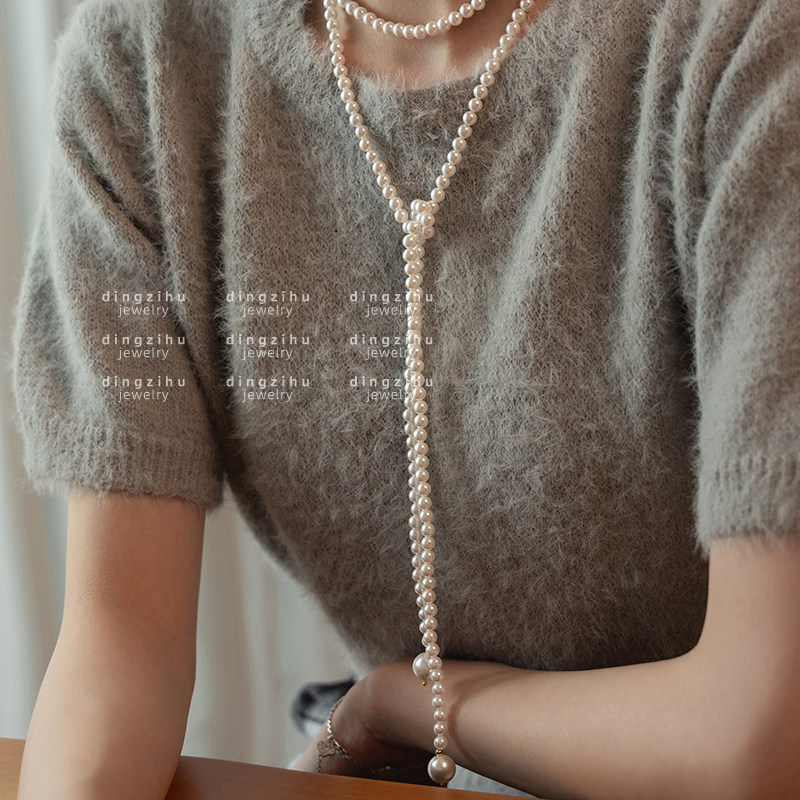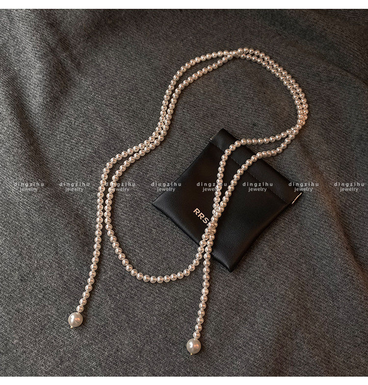 S家澳白长款珍珠项链女士2024秋冬轻奢高级感法式复古毛衣链配饰