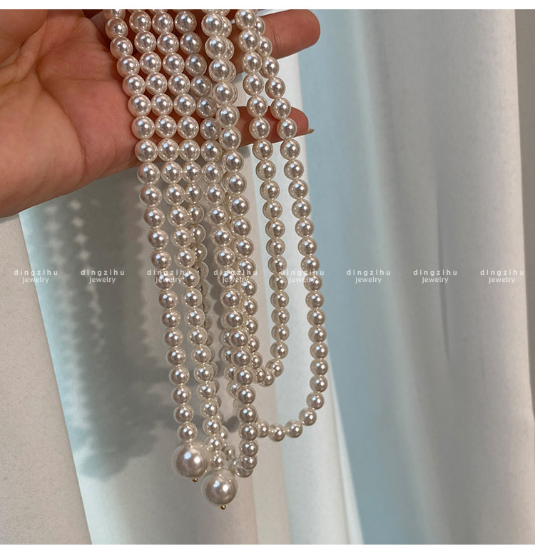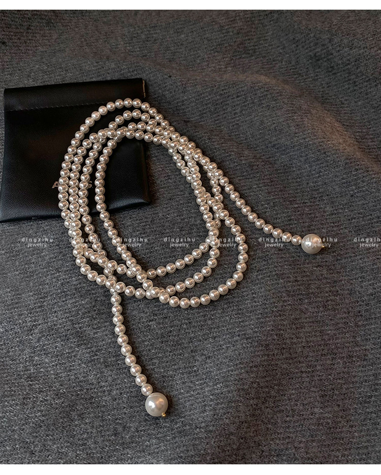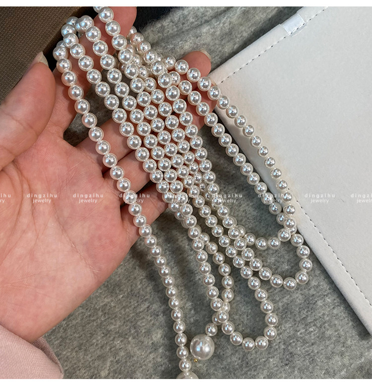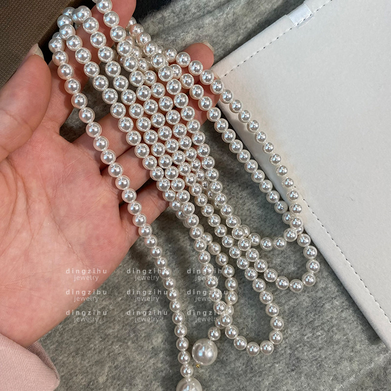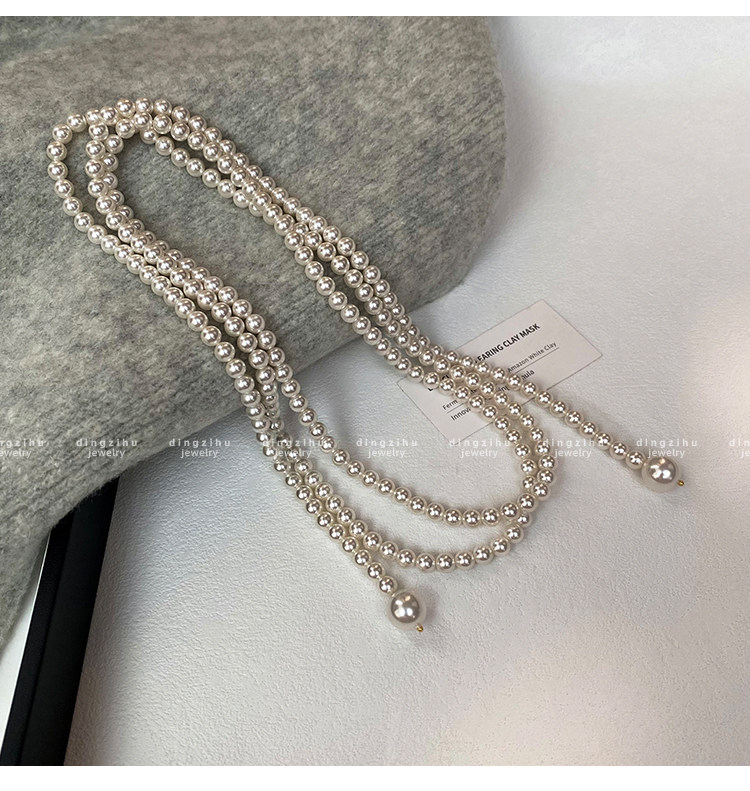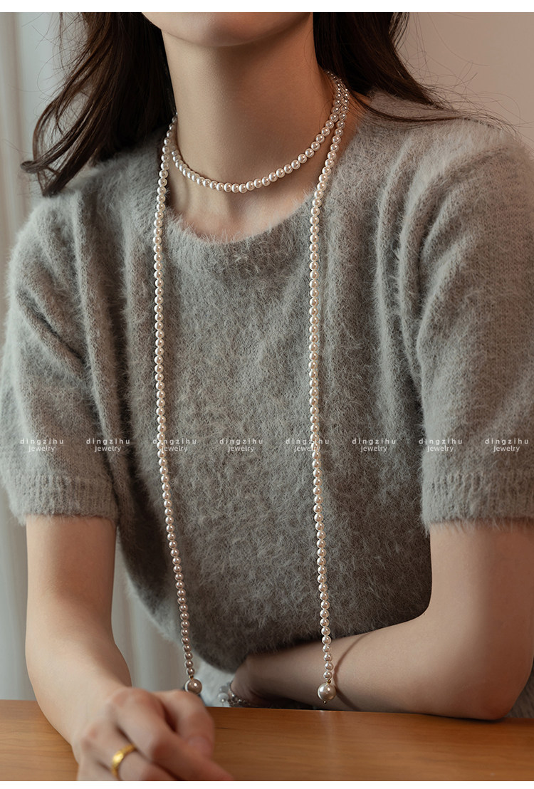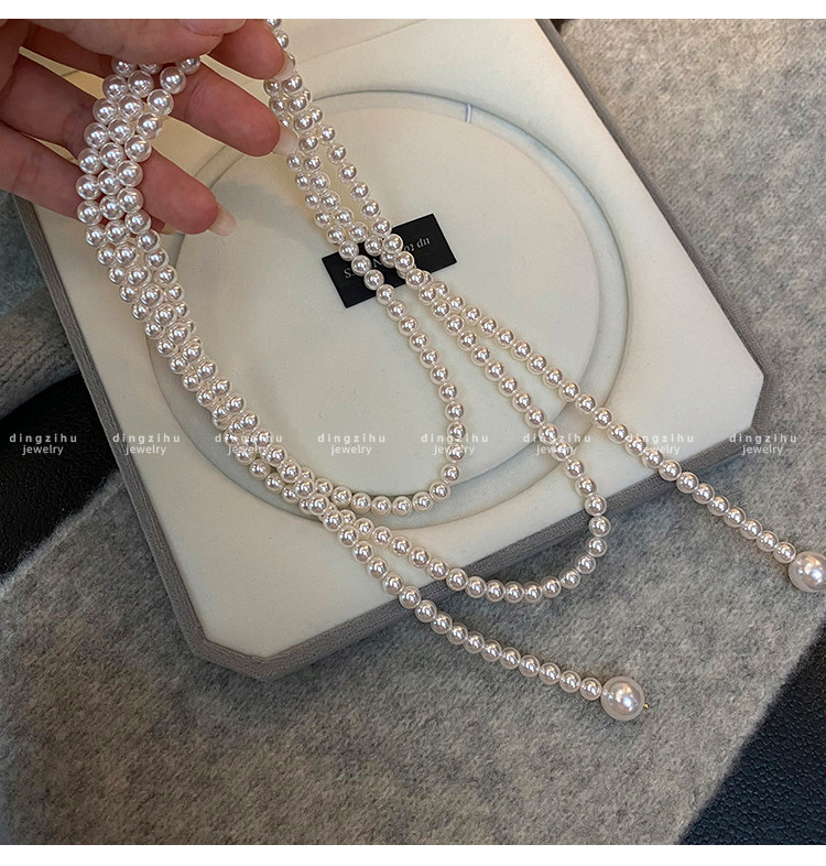 S家澳白长款珍珠项链女士2024秋冬轻奢高级感法式复古毛衣链配饰