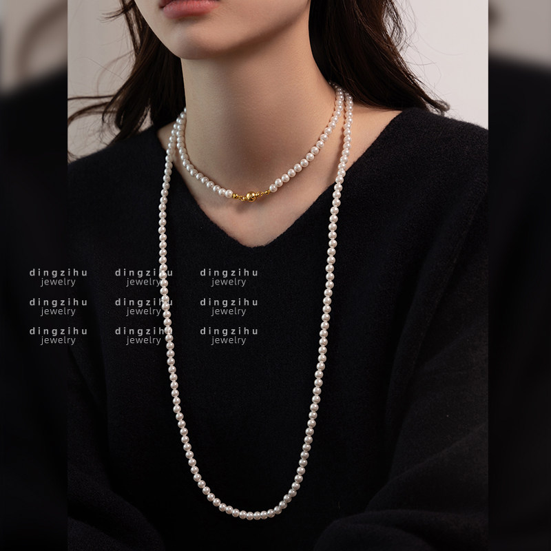 长款珍珠项链女款毛衣链轻奢高级感2024年秋冬新款颈链叠戴锁骨链