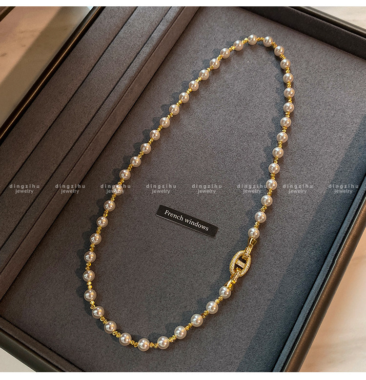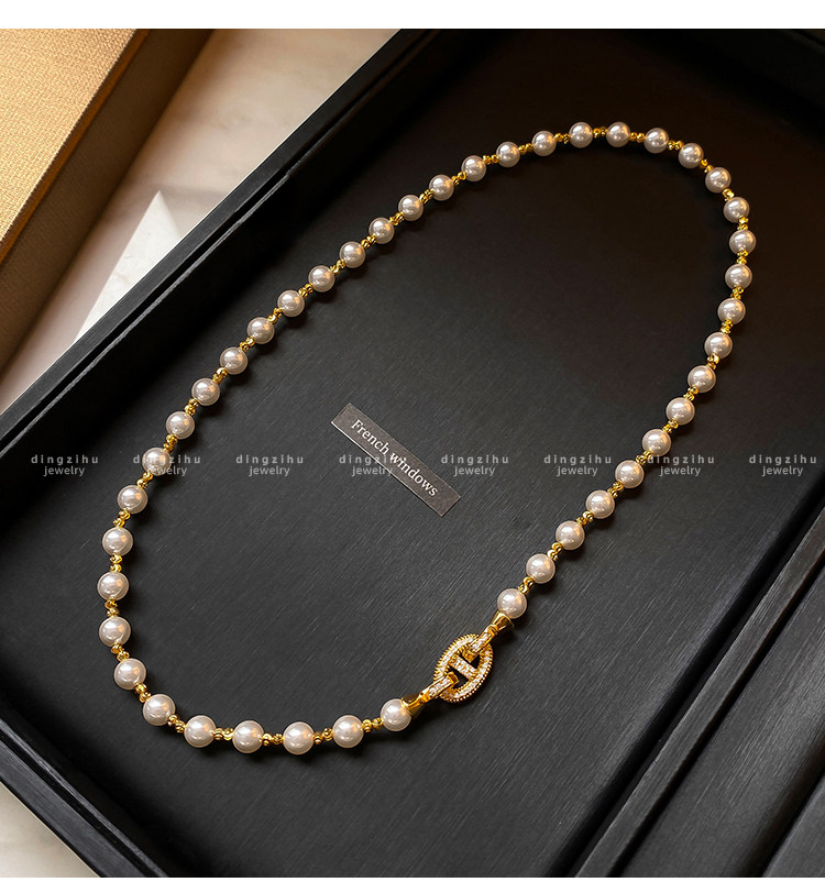 珍珠项链女士轻奢高级感颈链大气高档小众赫本风复古气质锁骨链
