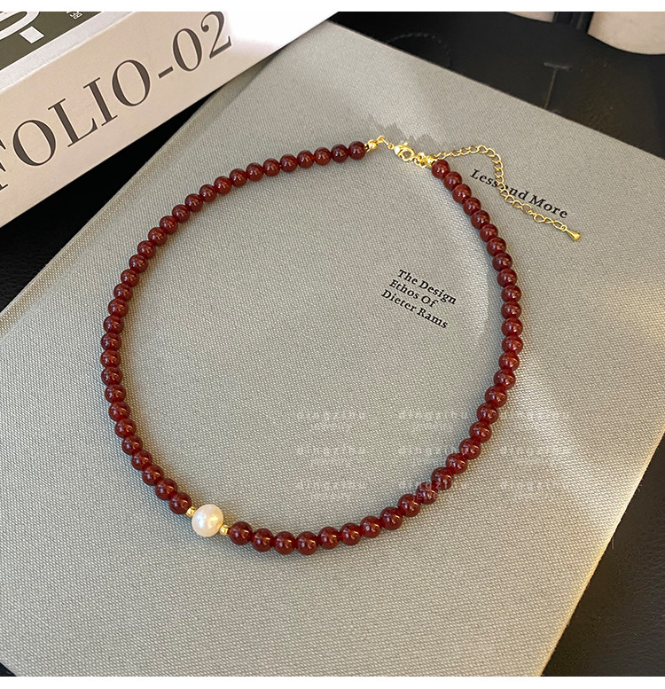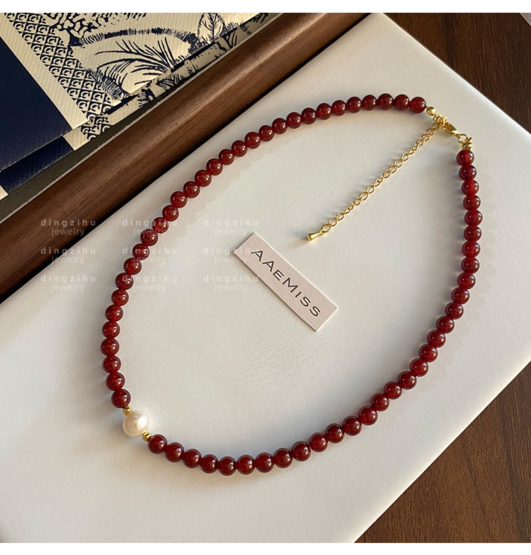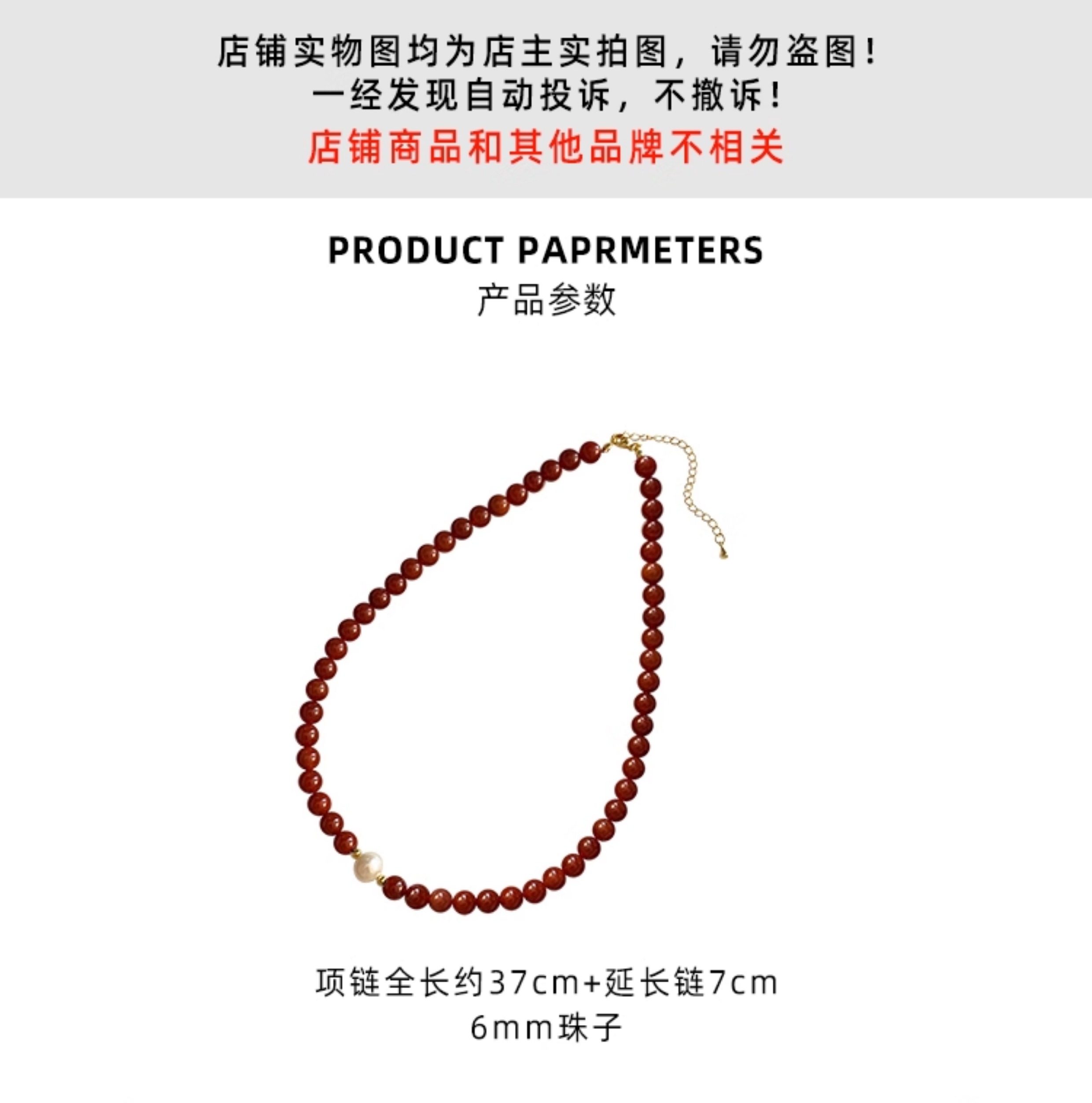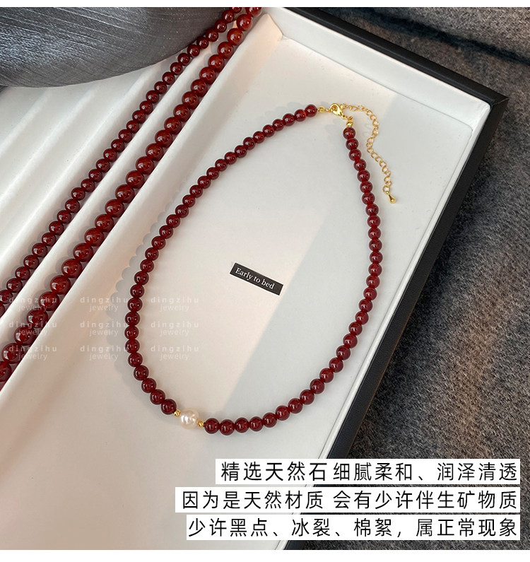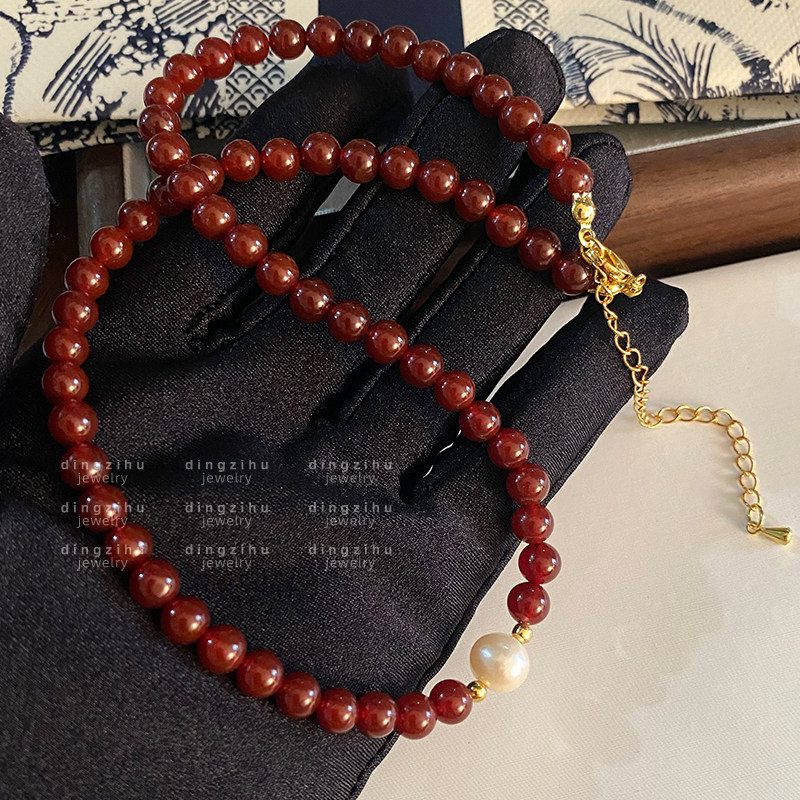 红色串珠珍珠项链女士秋季新中式复古设计高级感锁骨链颈链毛衣链