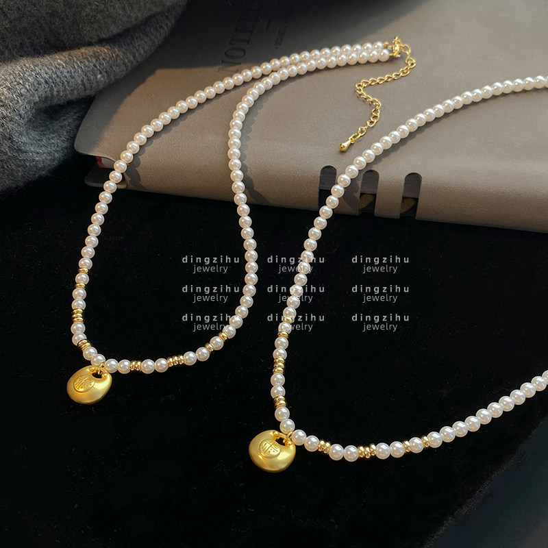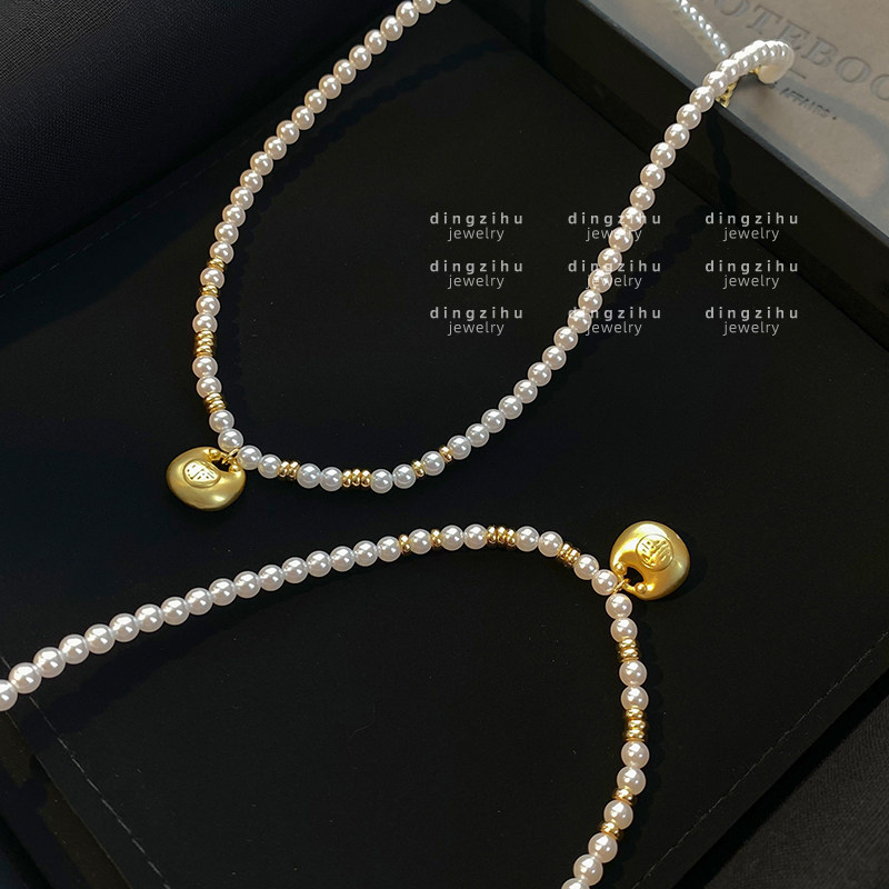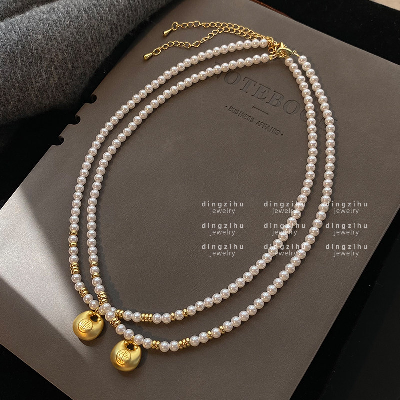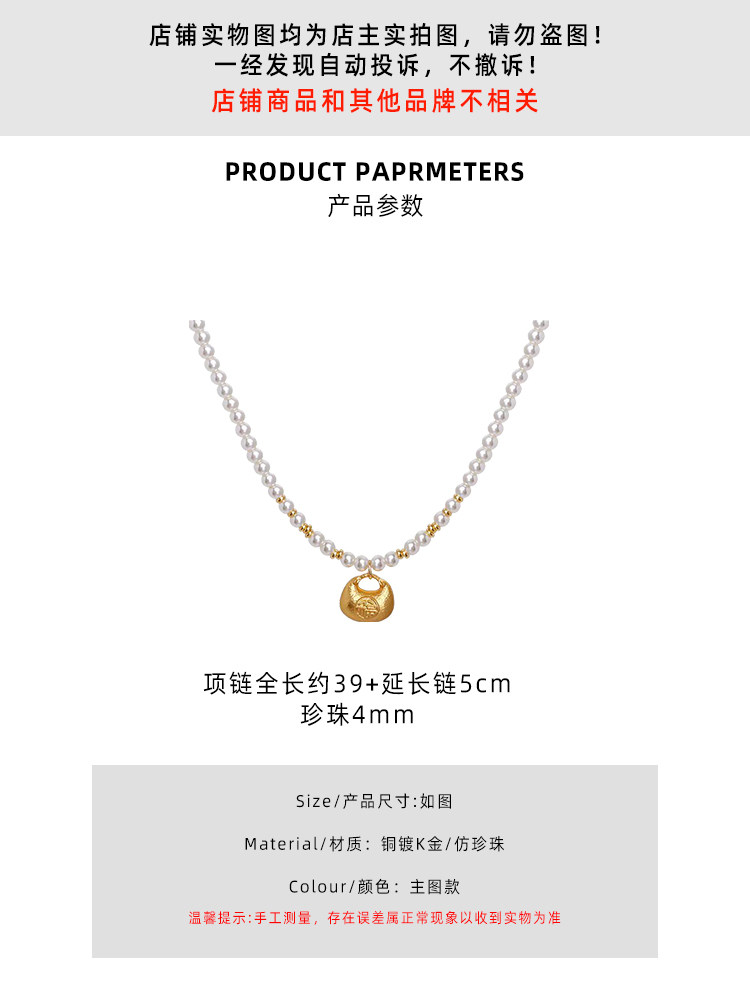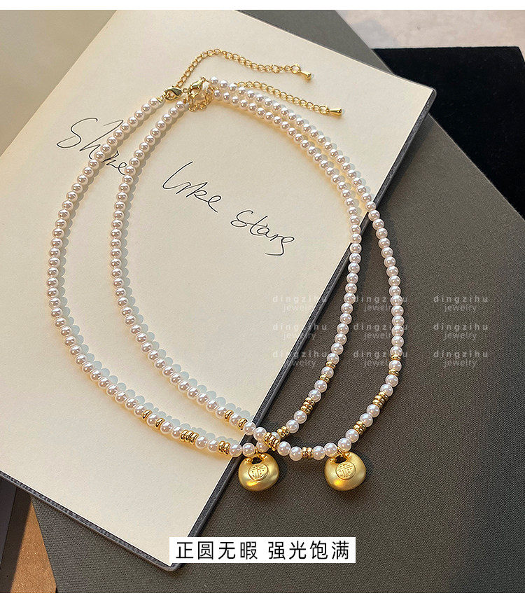 S家小米粒珍珠项链金色福袋吊坠锁骨链女小众高级感轻奢气质颈链