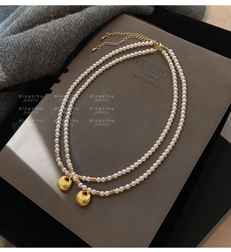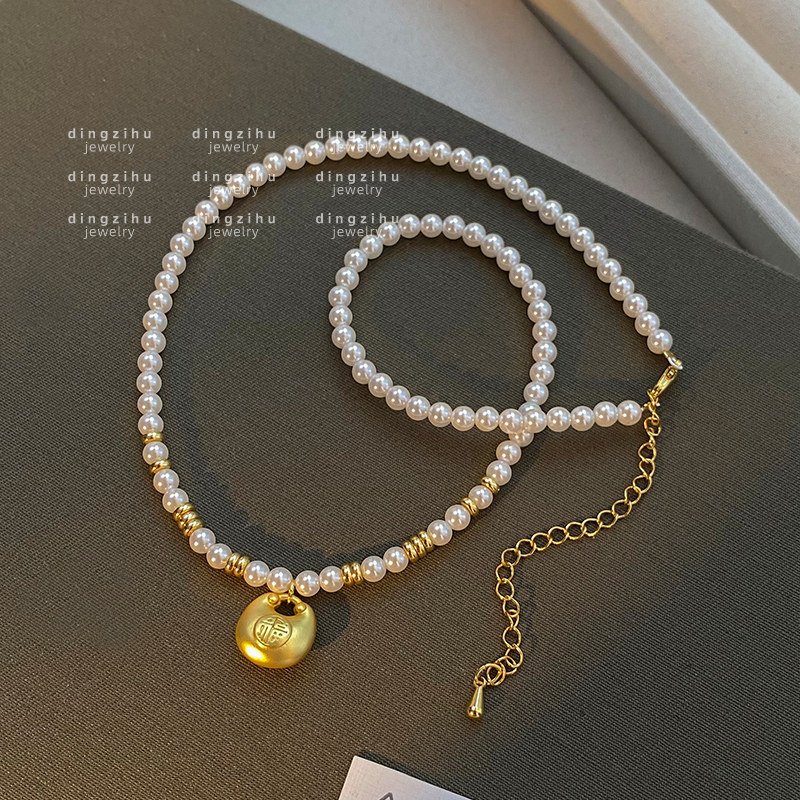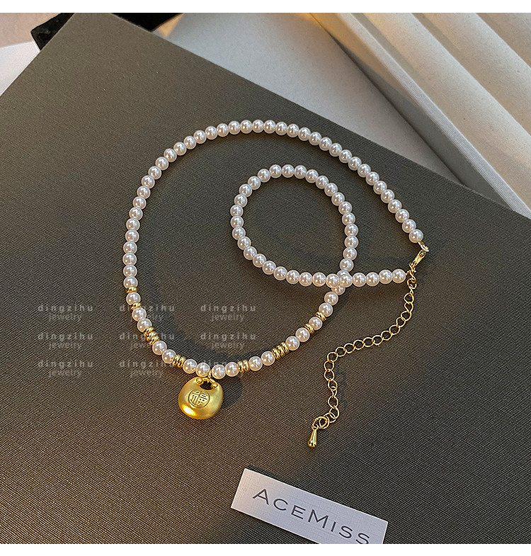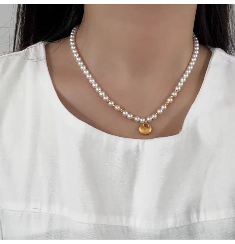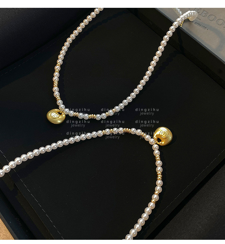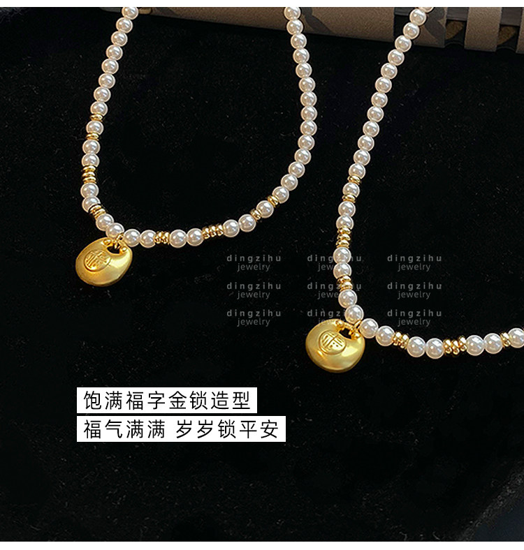 S家小米粒珍珠项链金色福袋吊坠锁骨链女小众高级感轻奢气质颈链