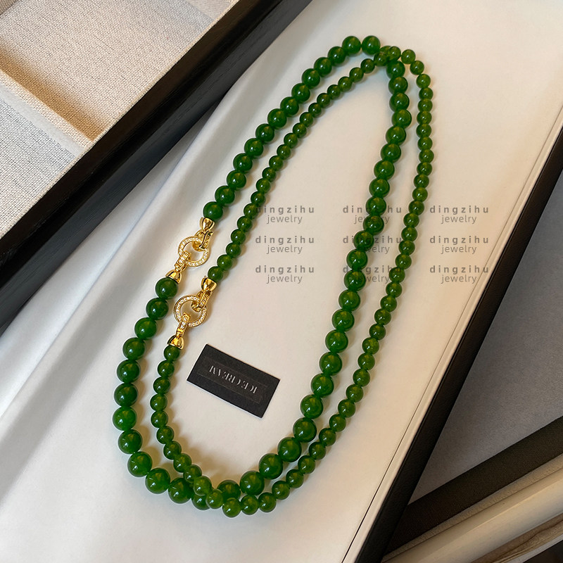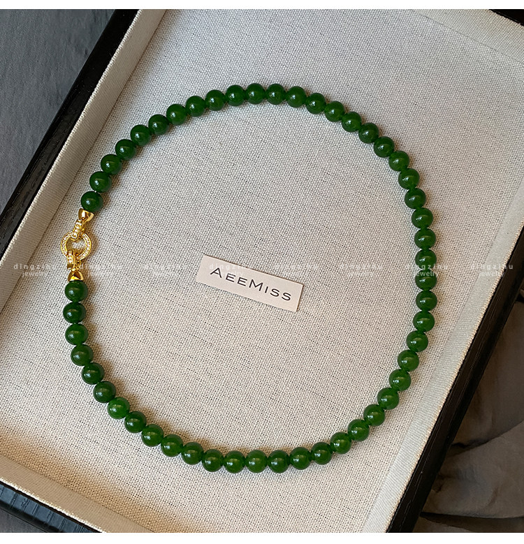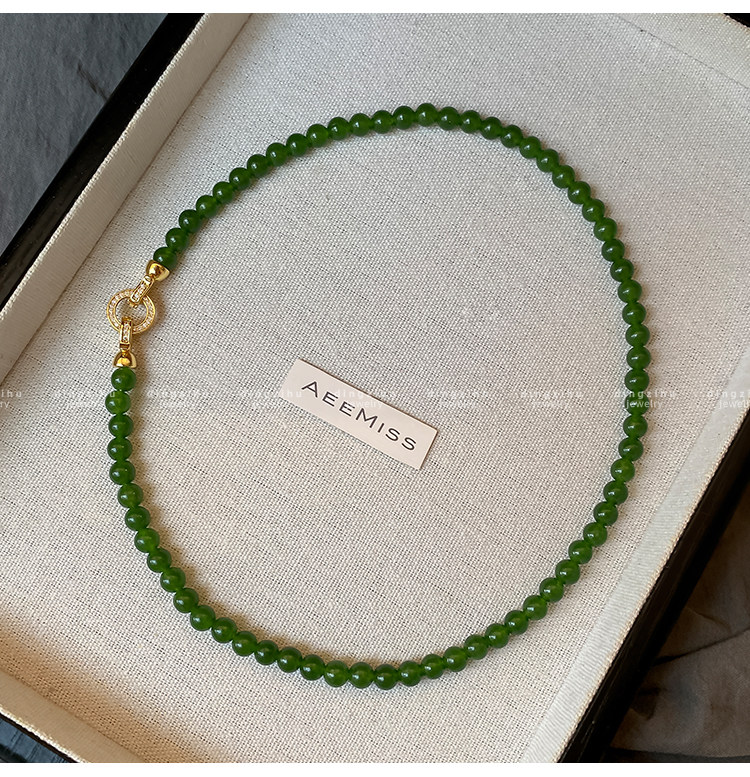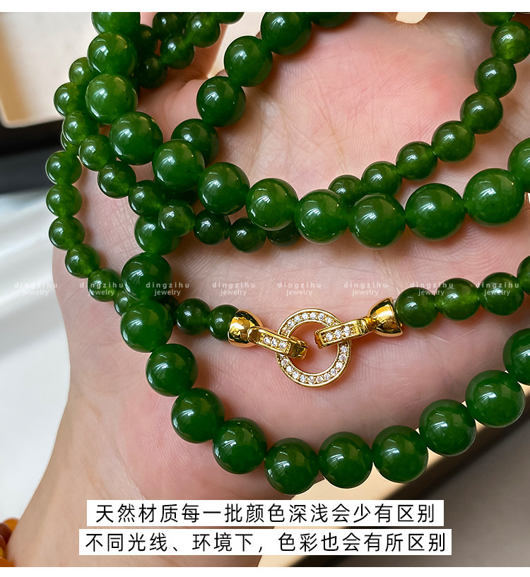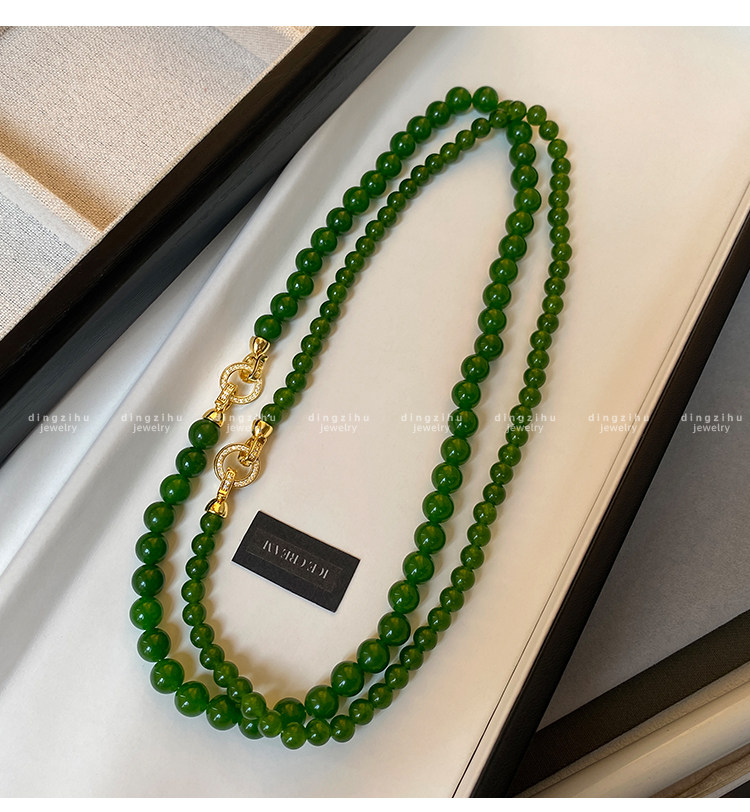 天然石绿色串珠项链女士款轻奢气质高级感锁骨链2025新款春夏颈链