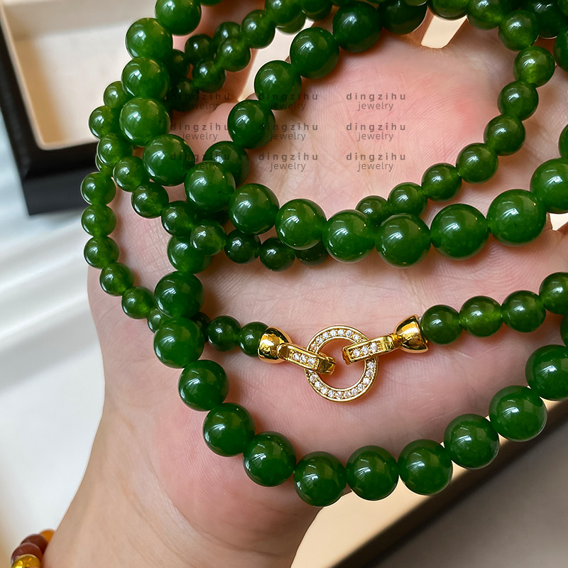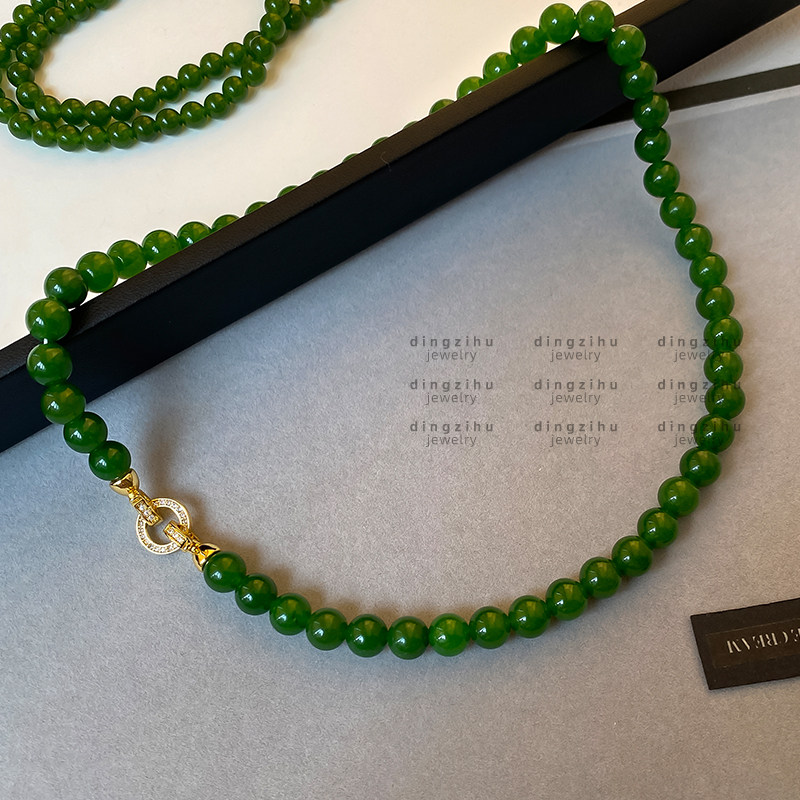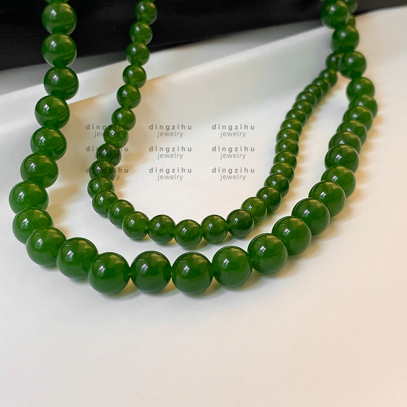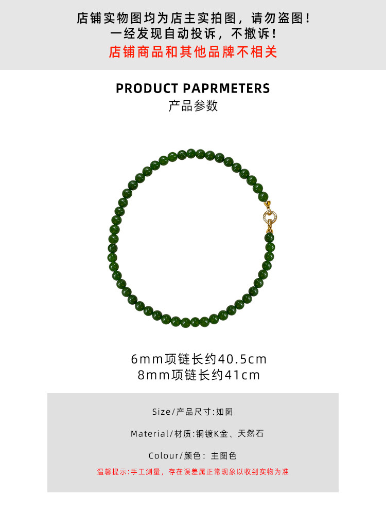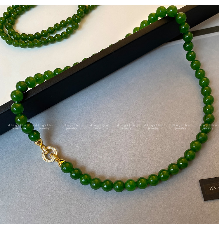 天然石绿色串珠项链女士款轻奢气质高级感锁骨链2025新款春夏颈链