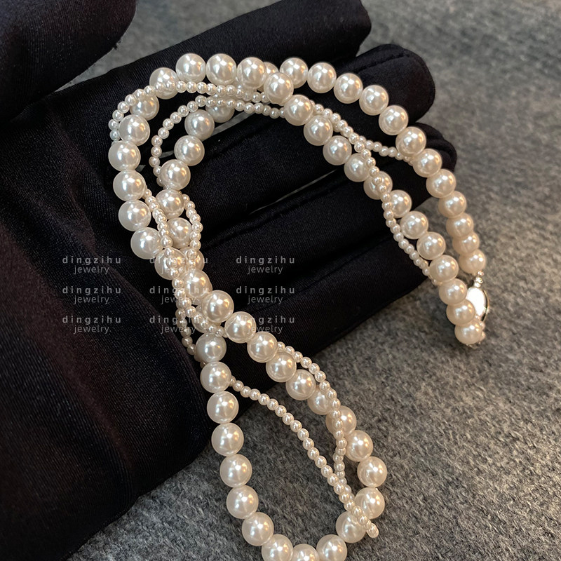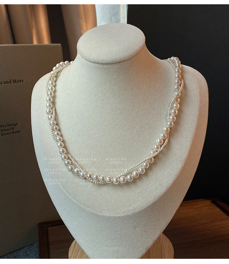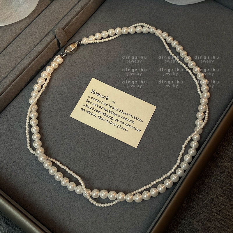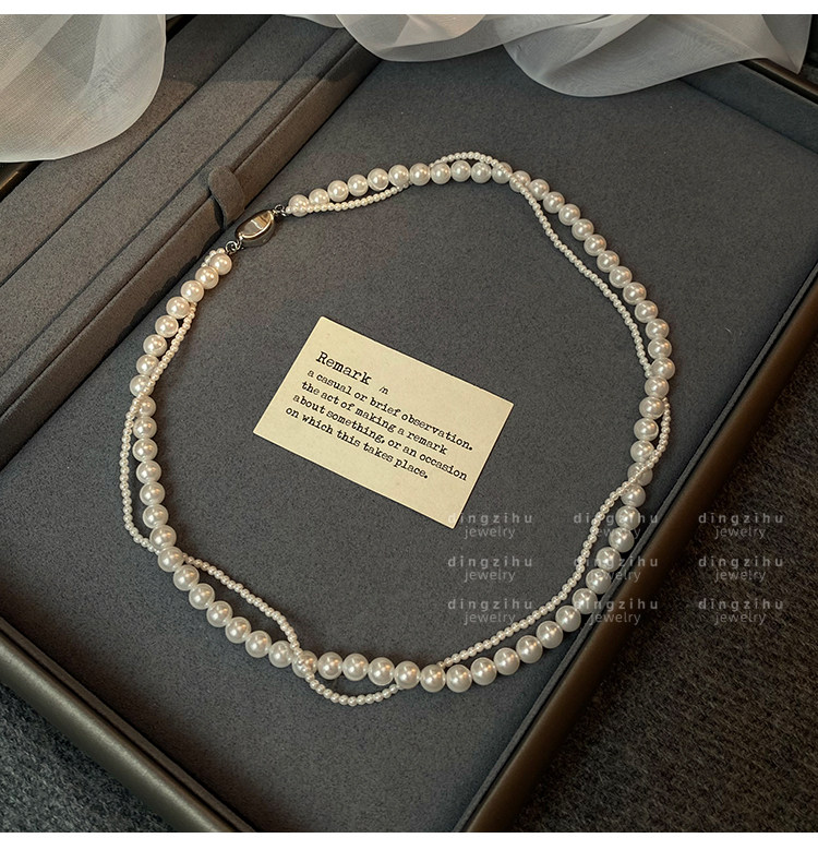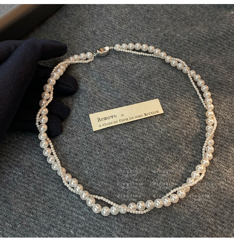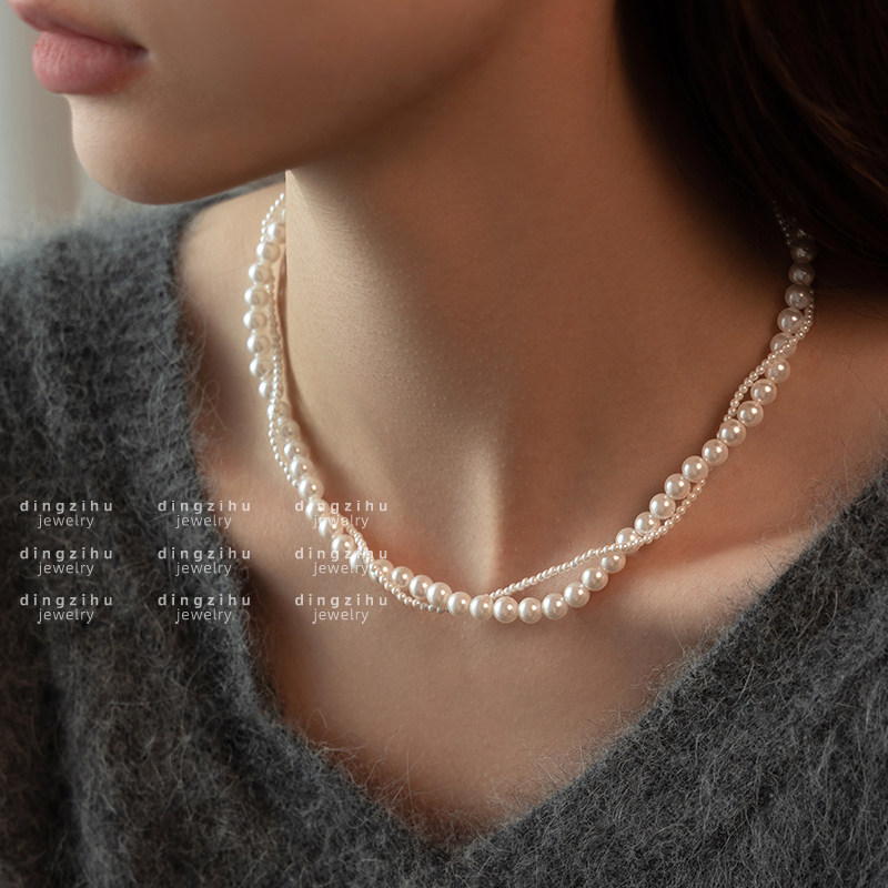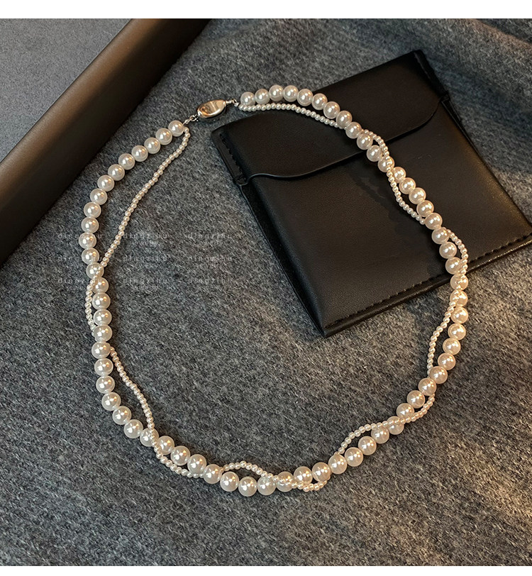 S家双层叠戴珍珠项链女轻奢麻花小众高级感气质毛衣链锁骨链颈链