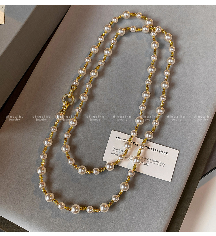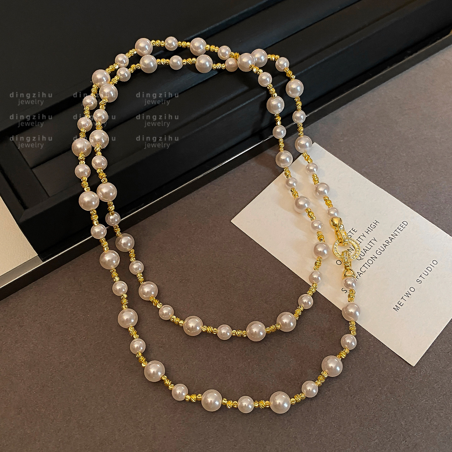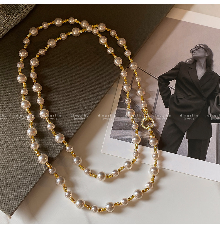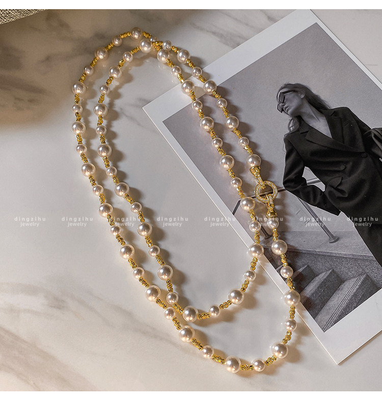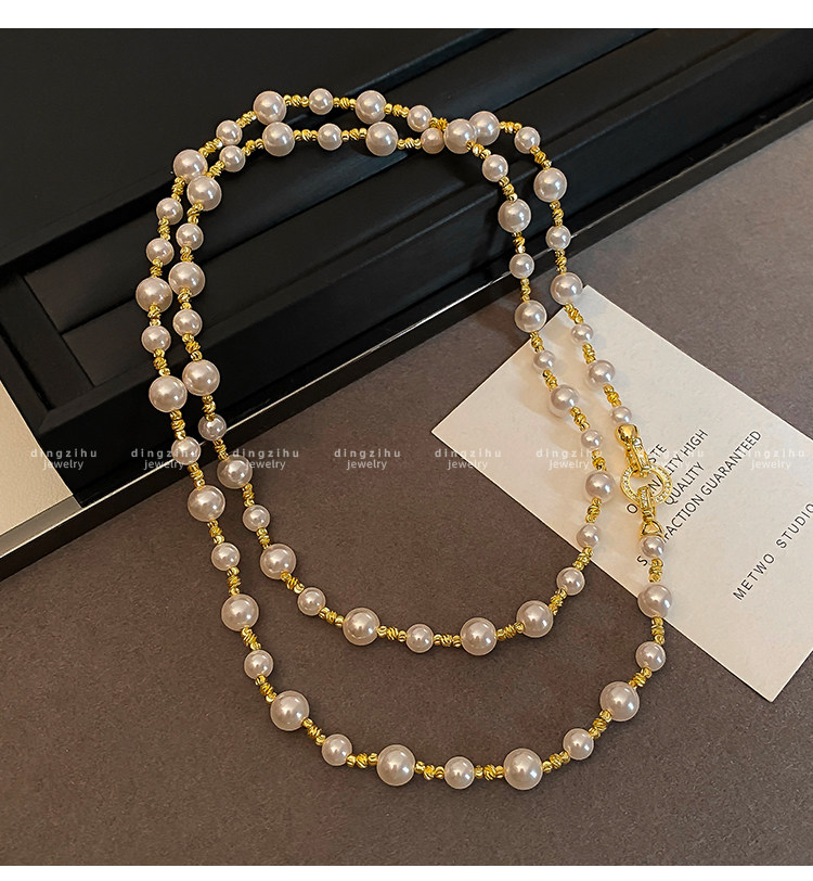 秋冬复古珍珠项链女大气高档气质脖子配饰长款叠戴颈链轻奢锁骨链