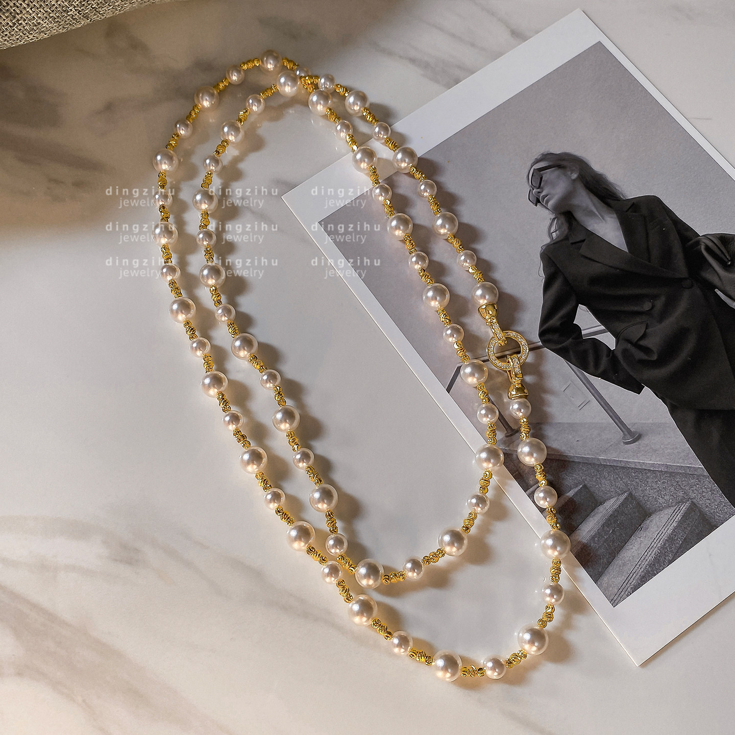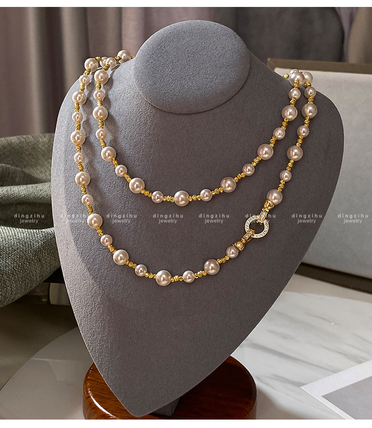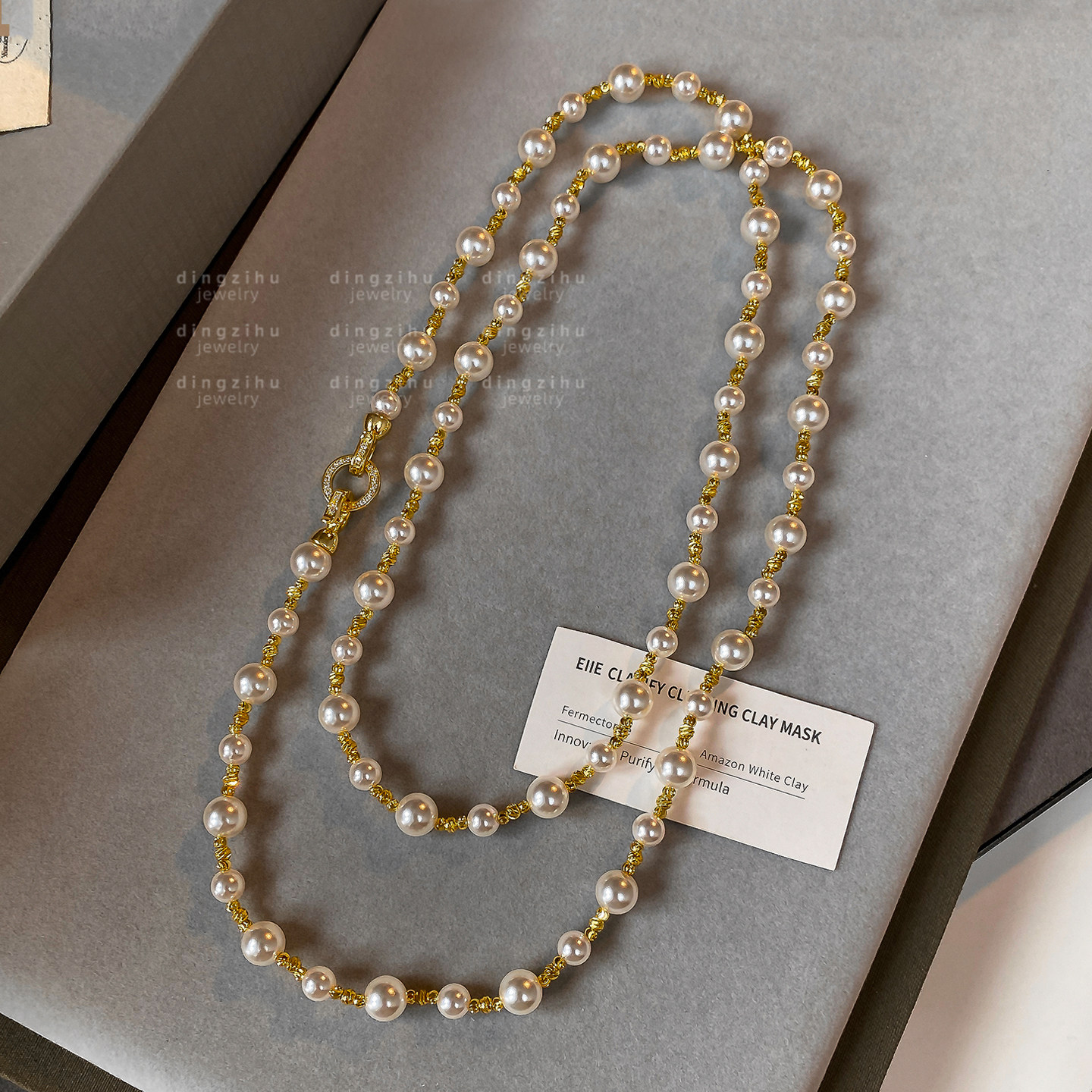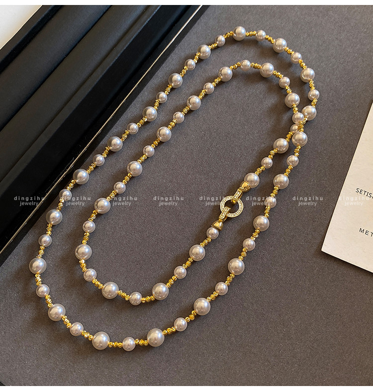 秋冬复古珍珠项链女大气高档气质脖子配饰长款叠戴颈链轻奢锁骨链