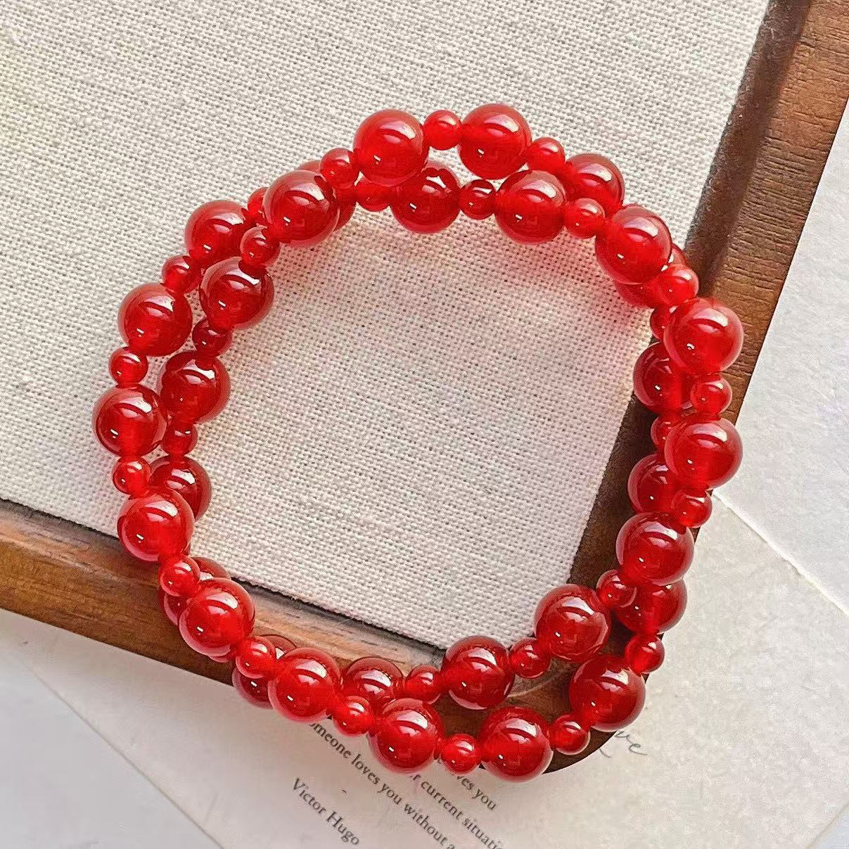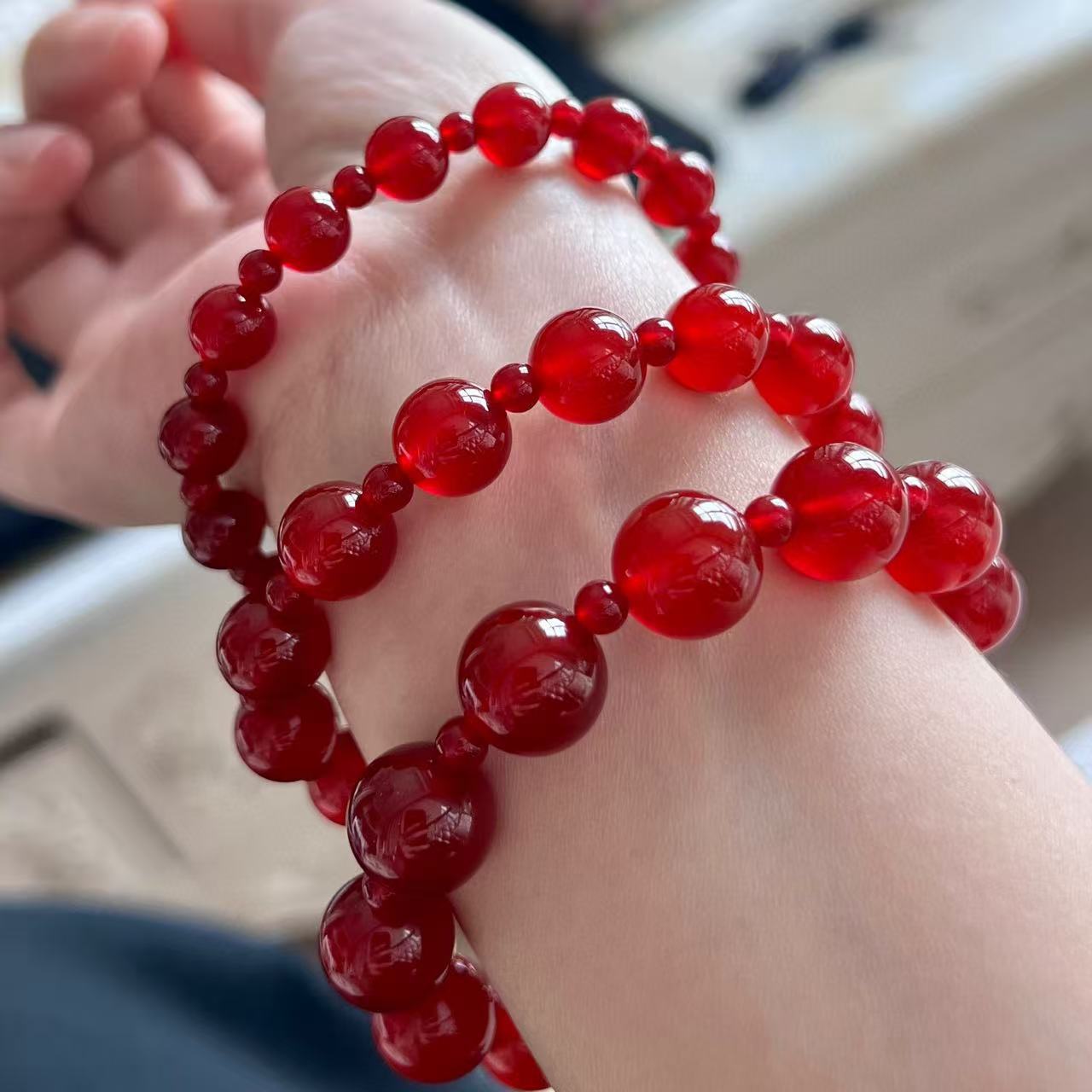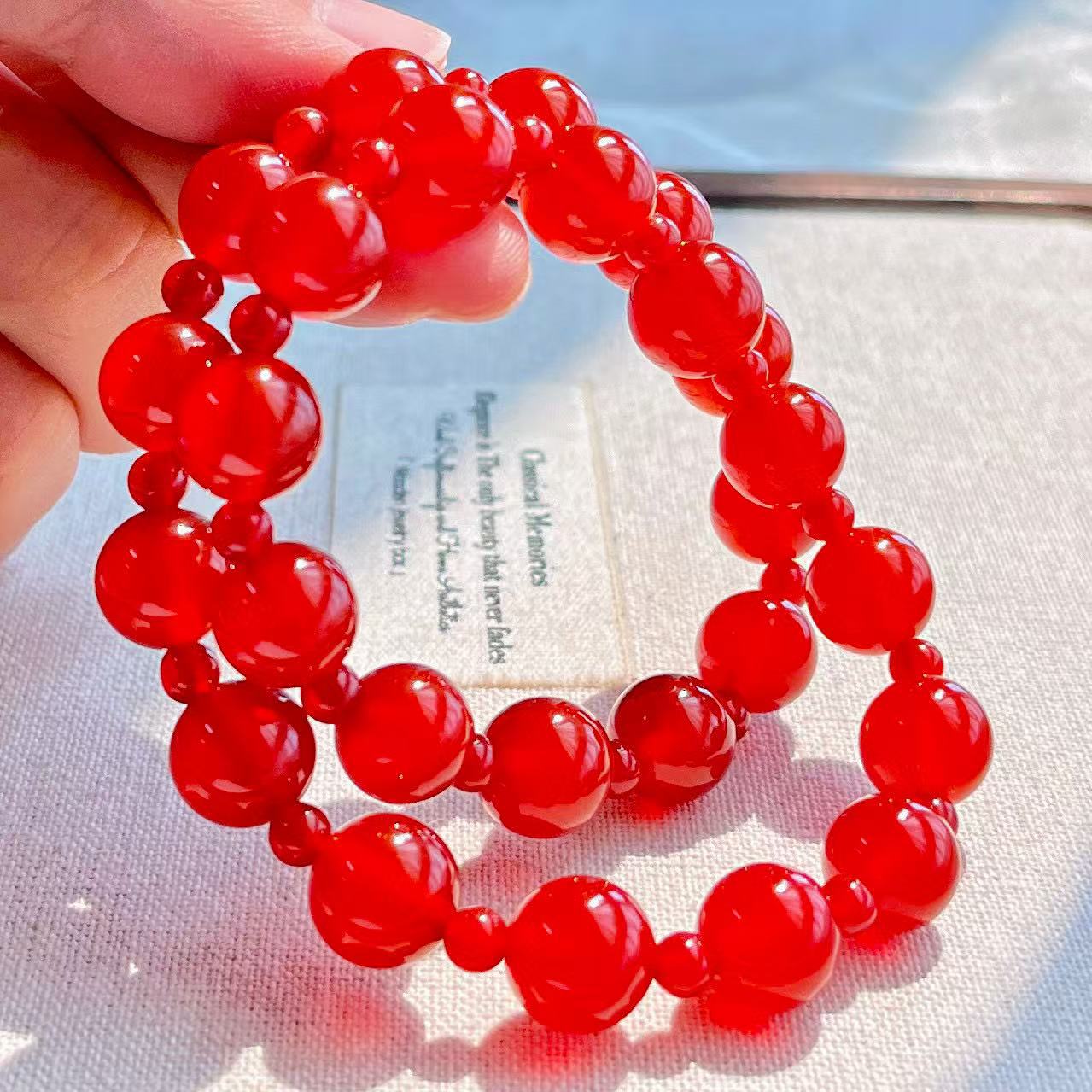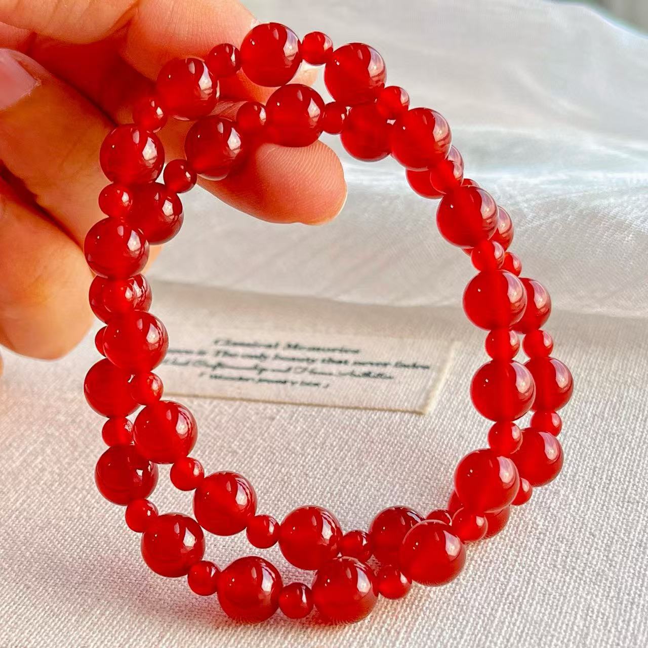 7A高品质冰透起光天然红玉髓玛瑙多圈手链手串 保真支持复检