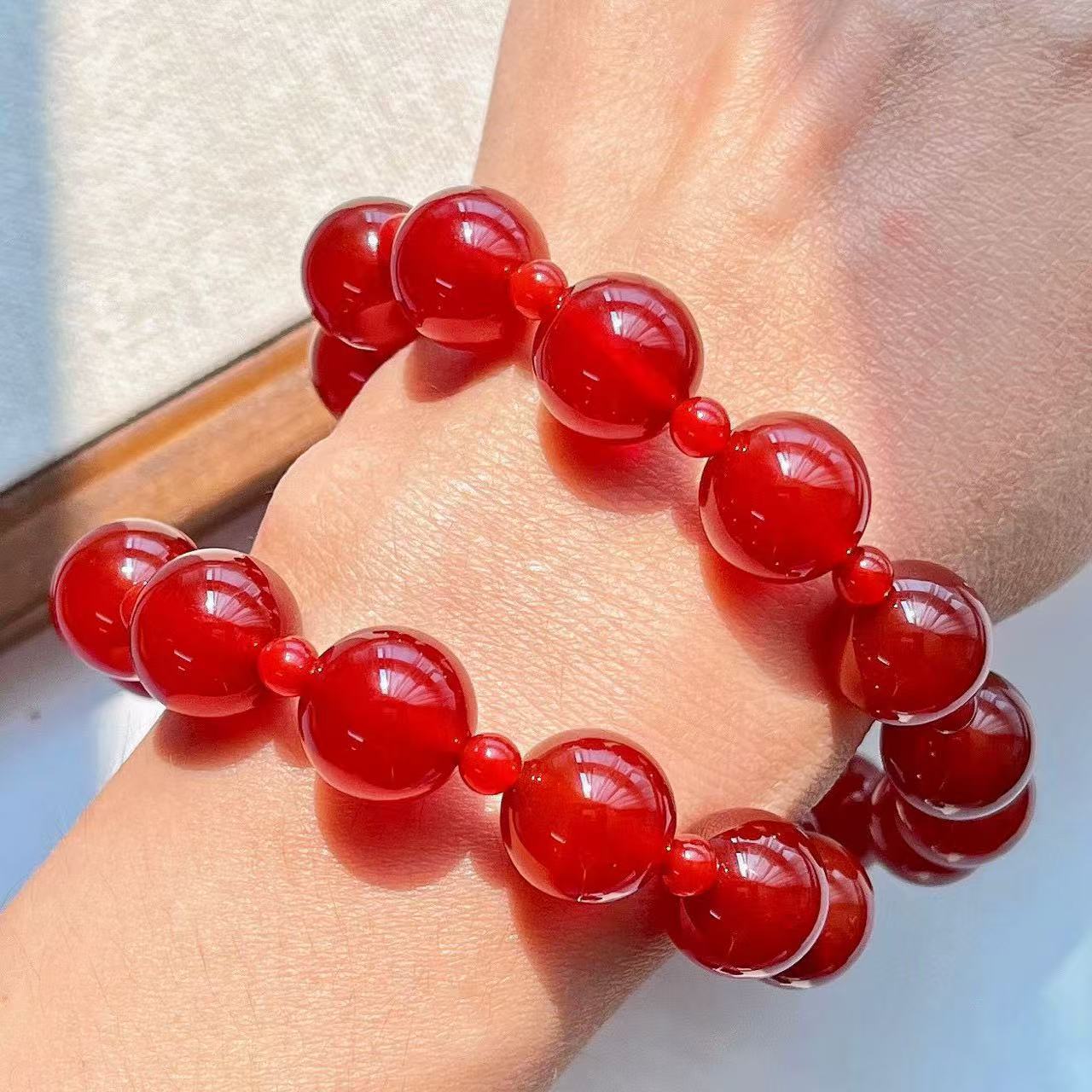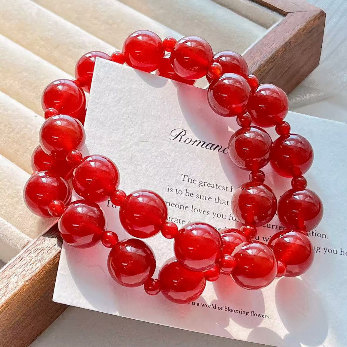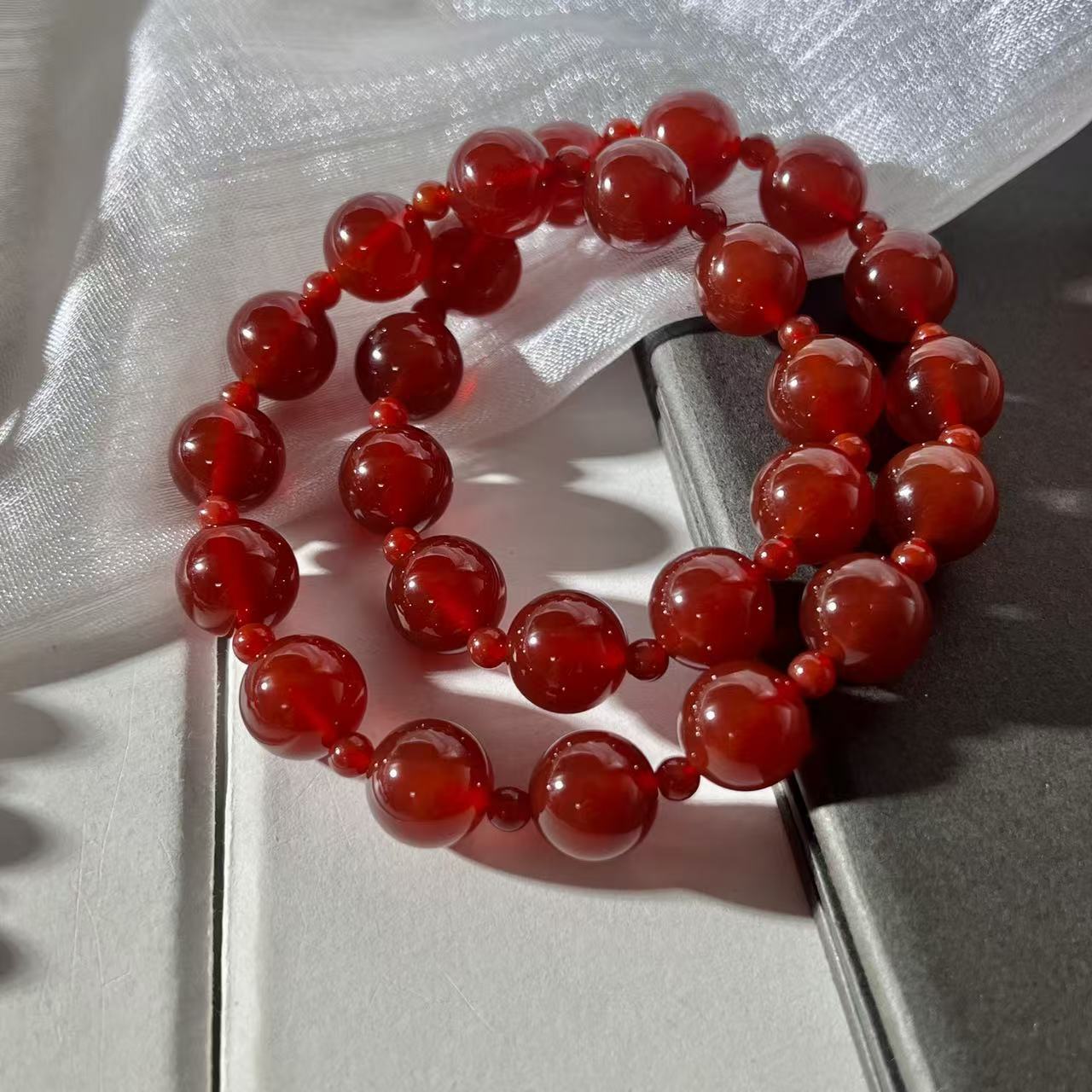 7A高品质冰透起光天然红玉髓玛瑙多圈手链手串 保真支持复检