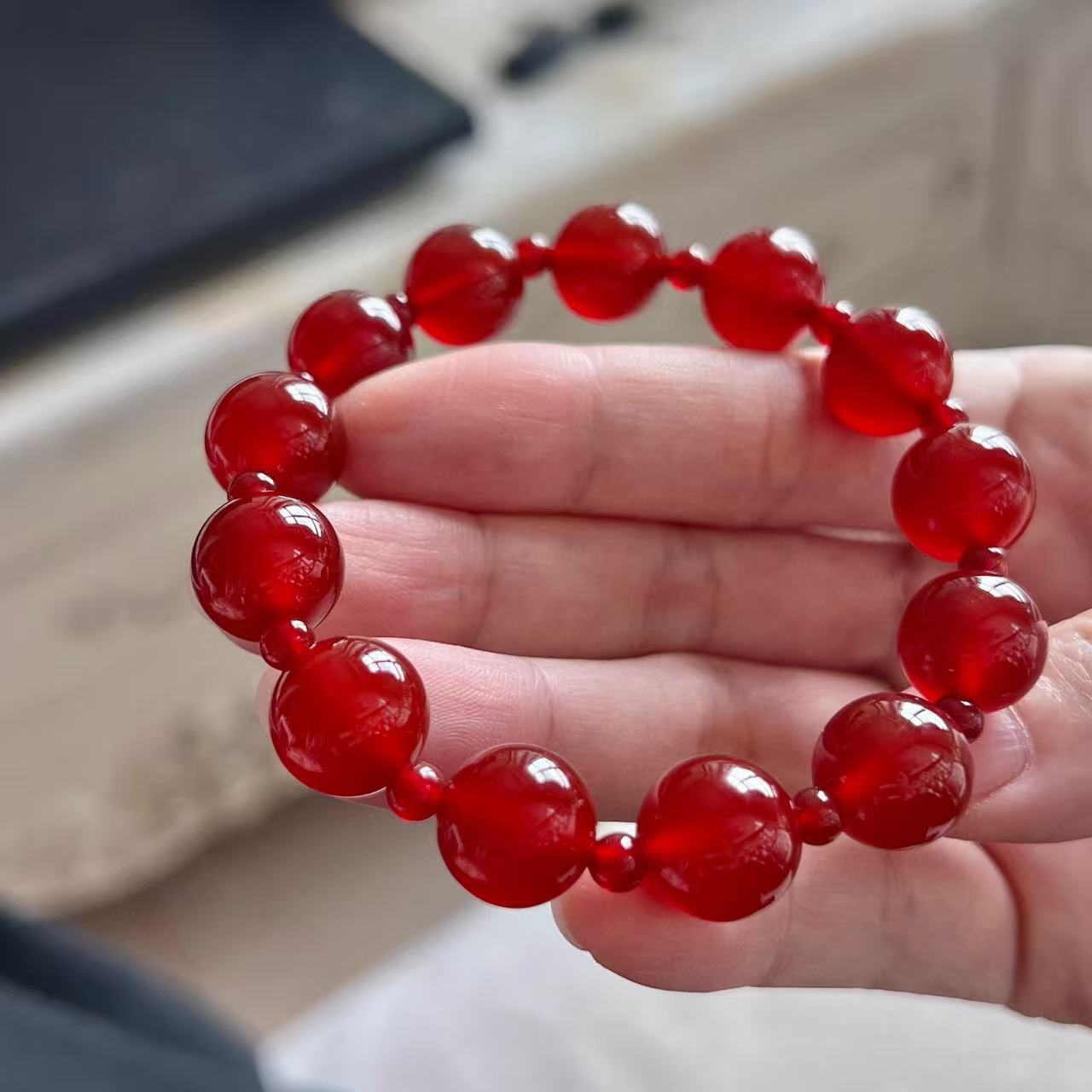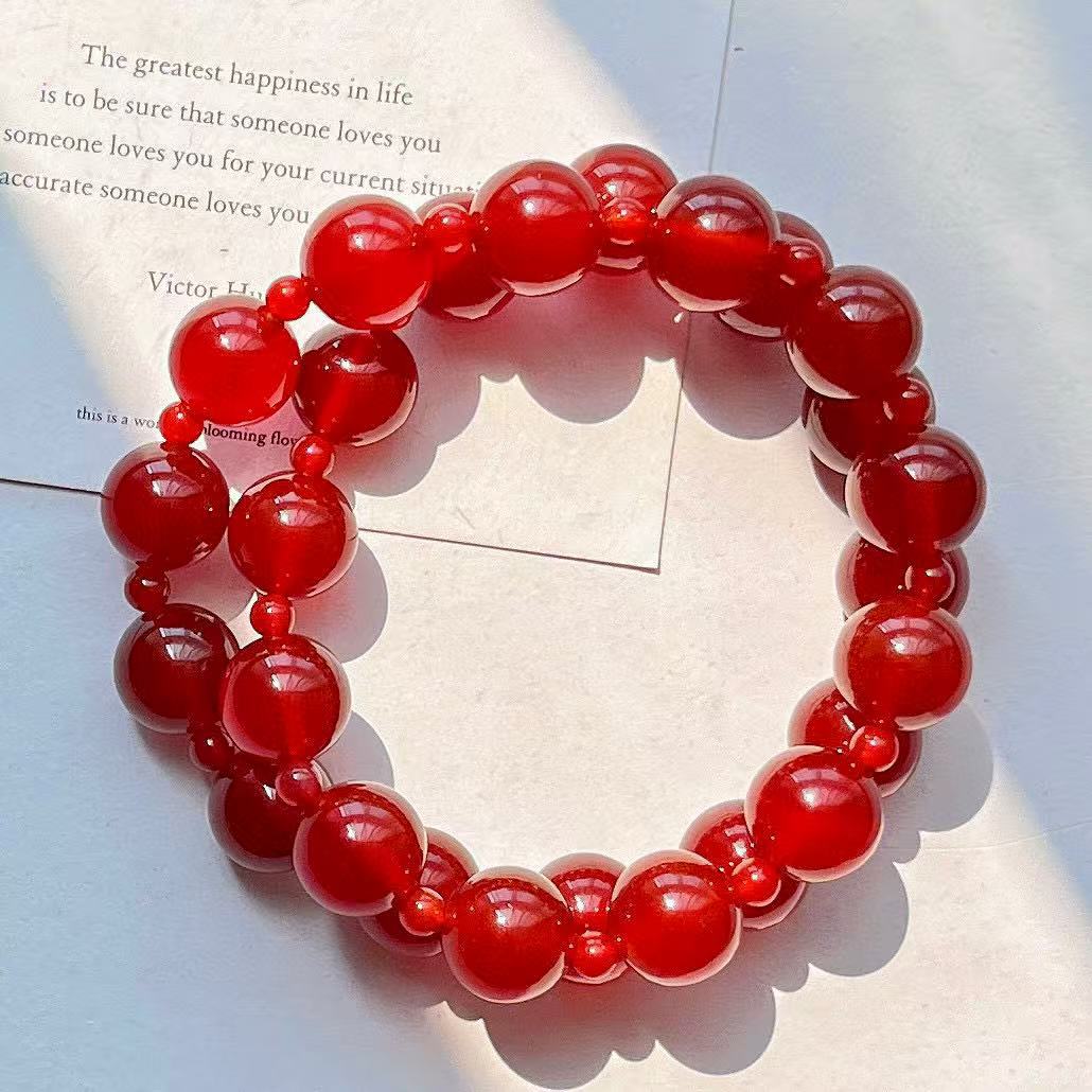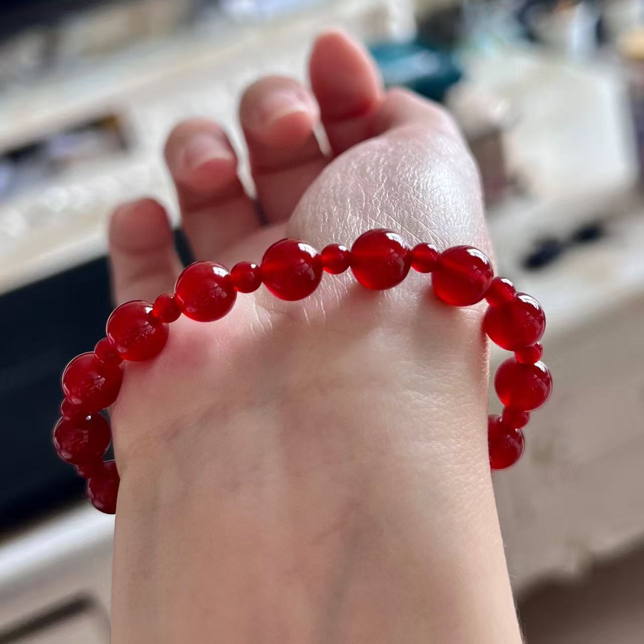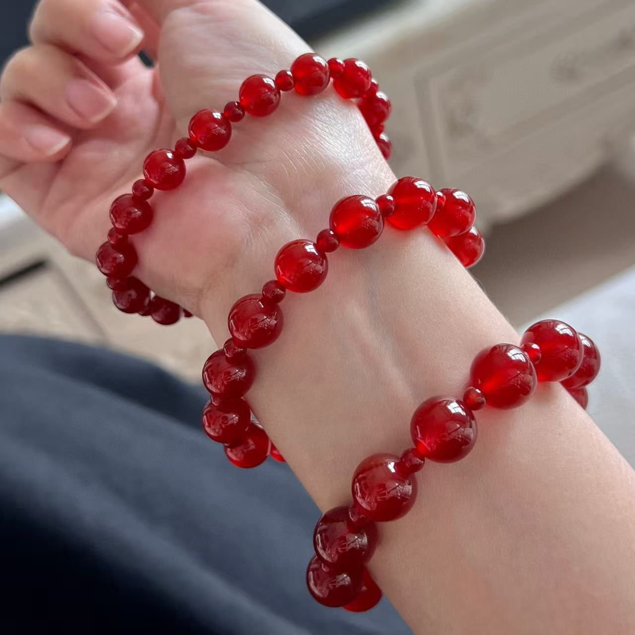 7A高品质冰透起光天然红玉髓玛瑙多圈手链手串 保真支持复检
