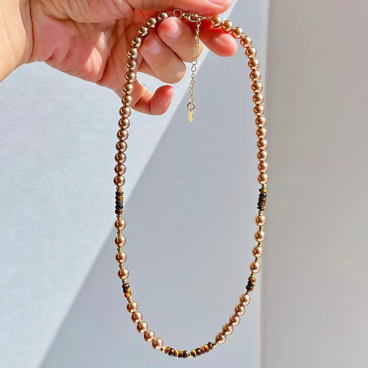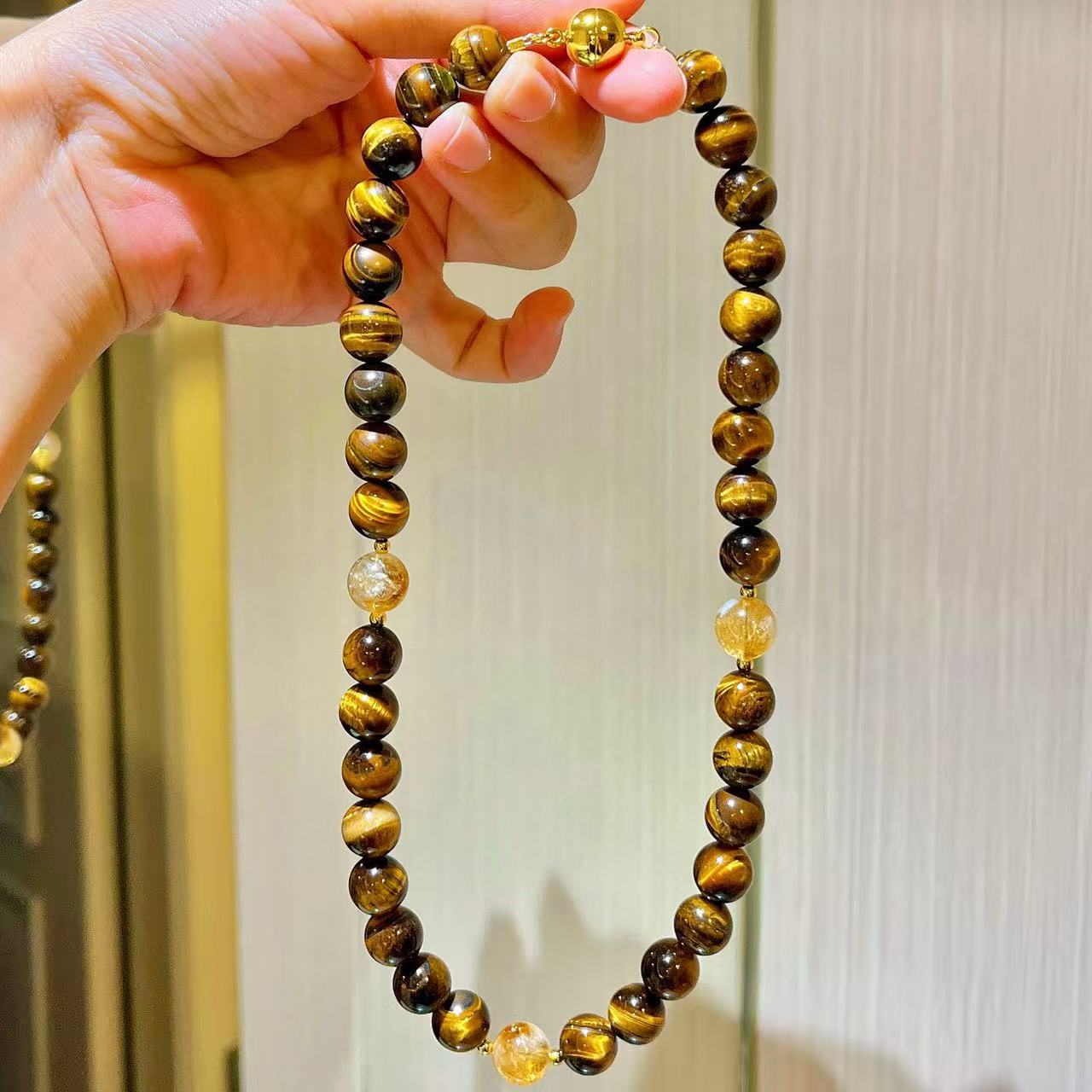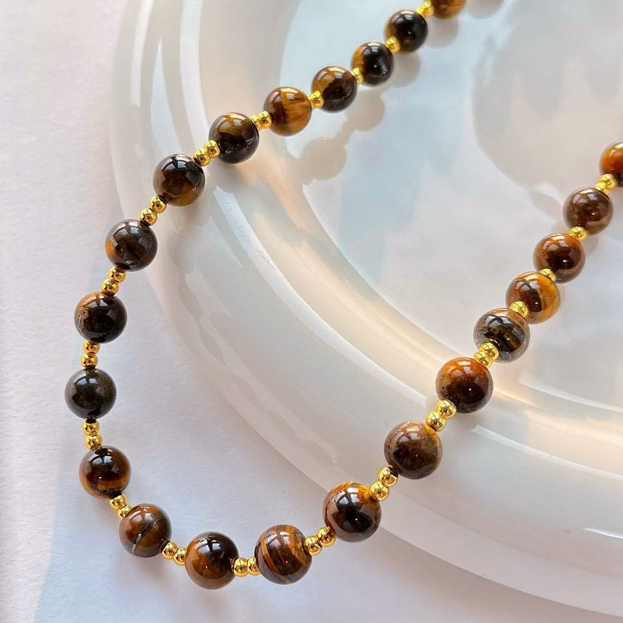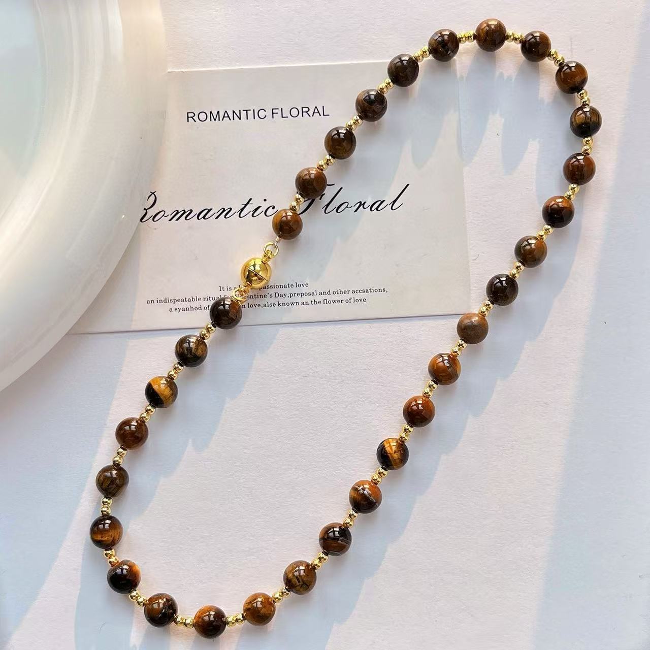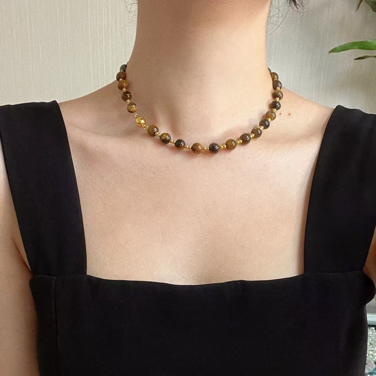 店主推荐秋冬新品精品美拉德风天然虎眼石项链 保真可复检过基地