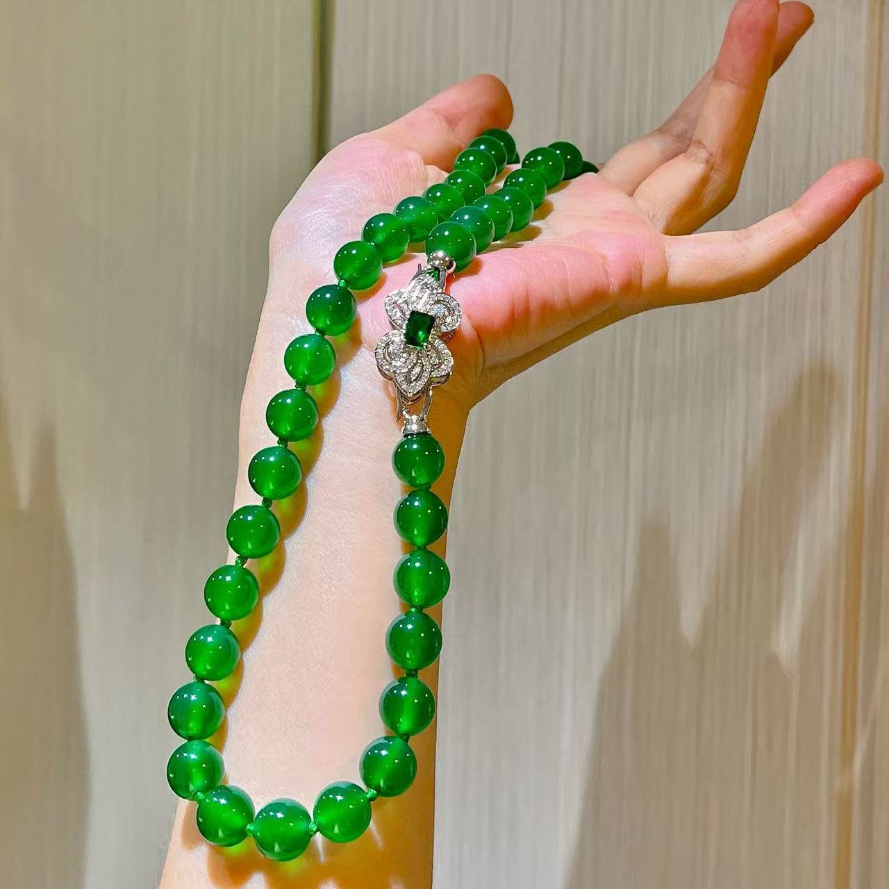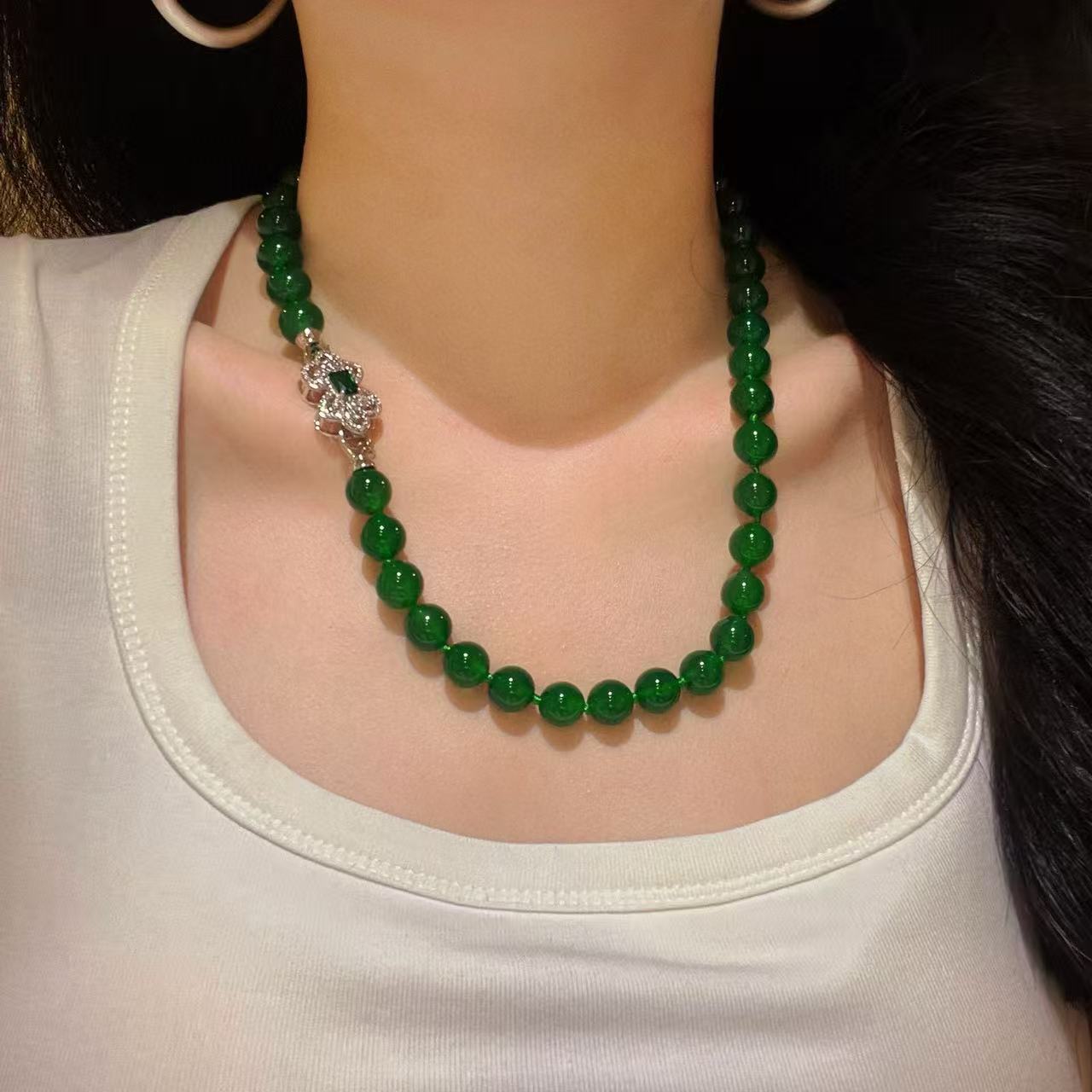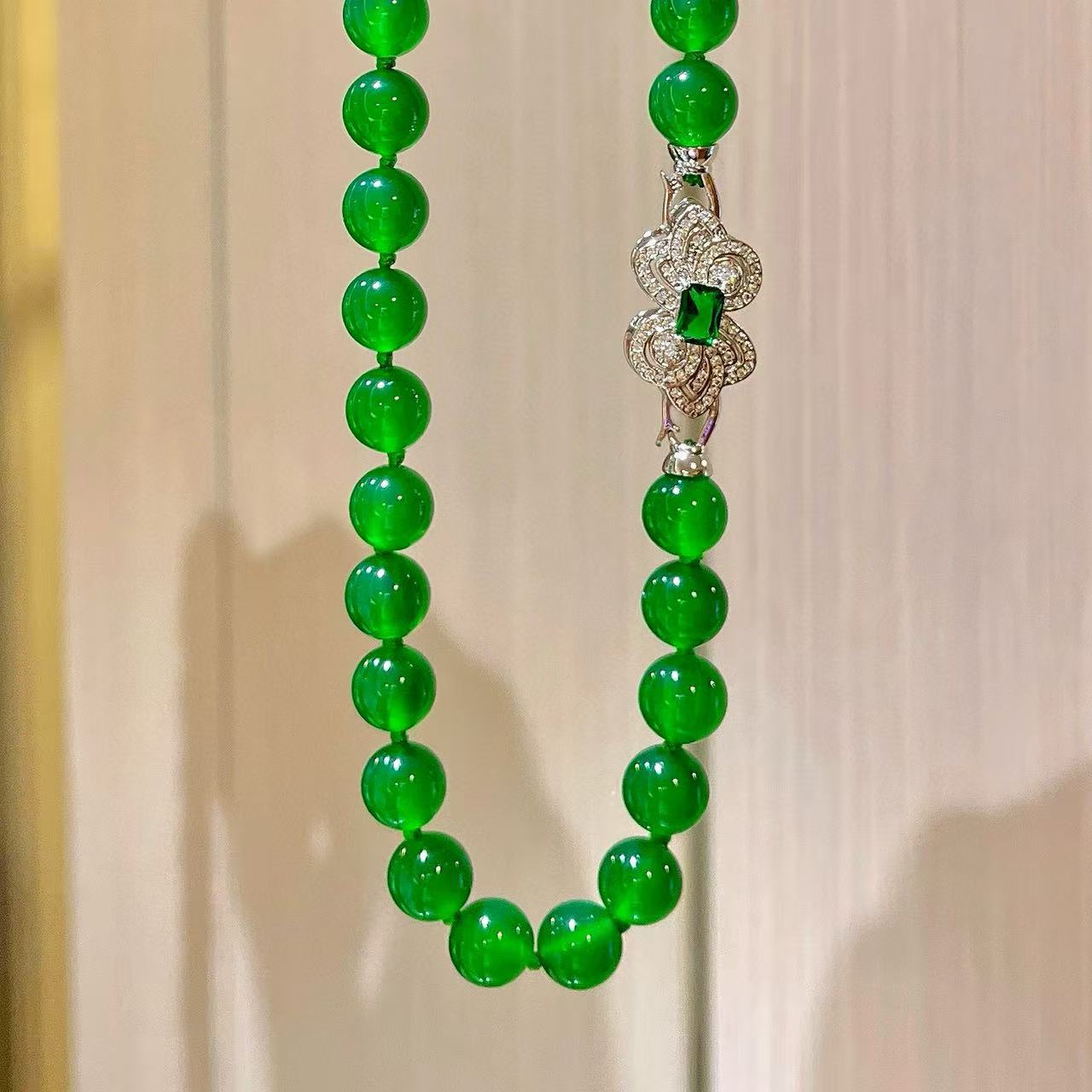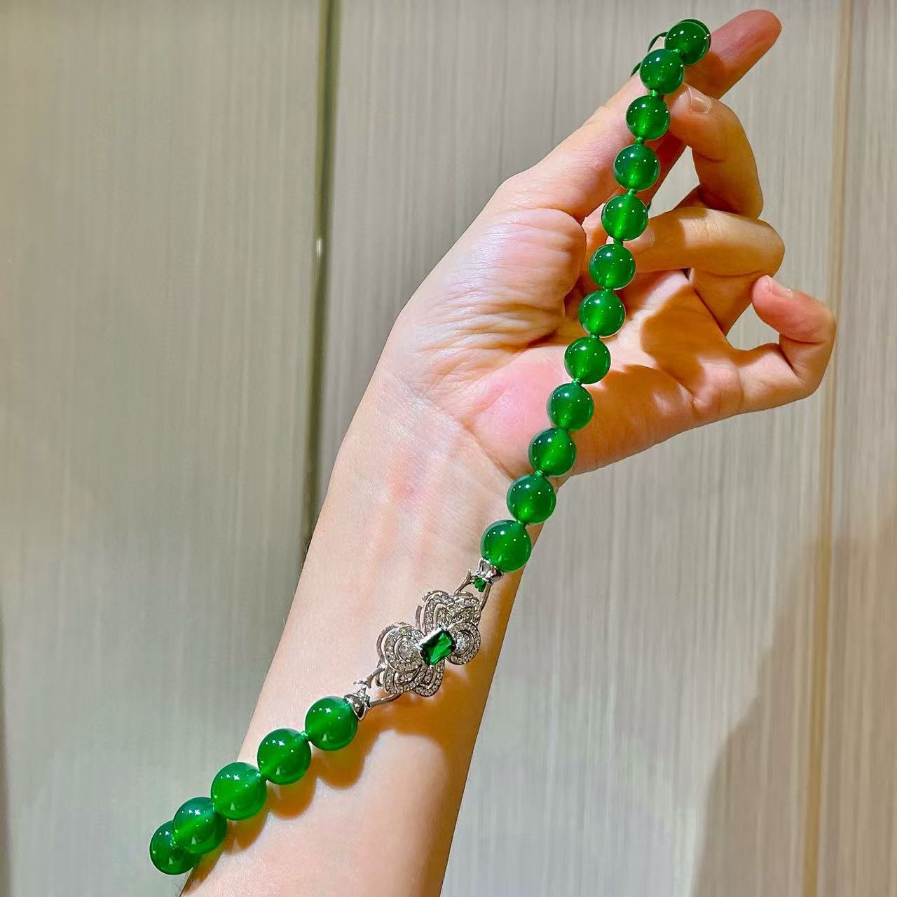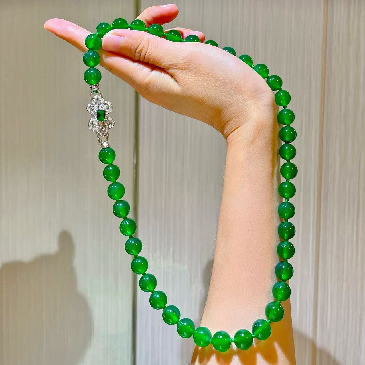 10mm高品质冰透帝王绿天然绿玉髓玛瑙项链锁骨链