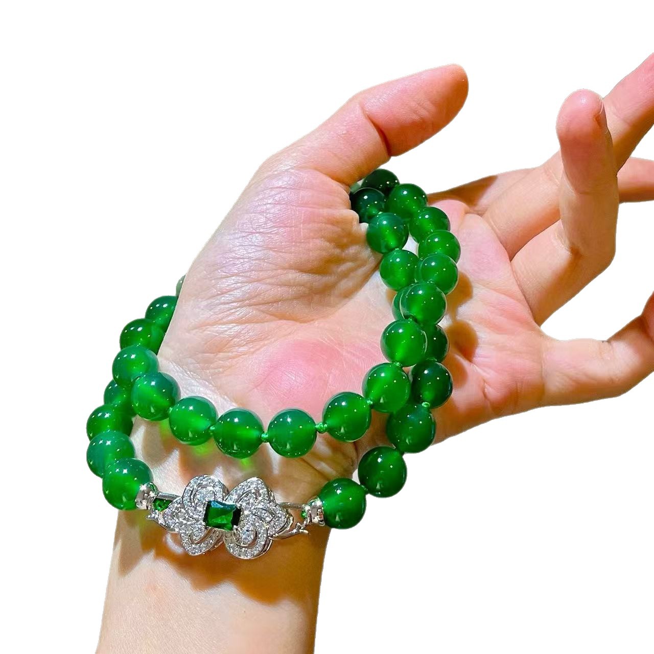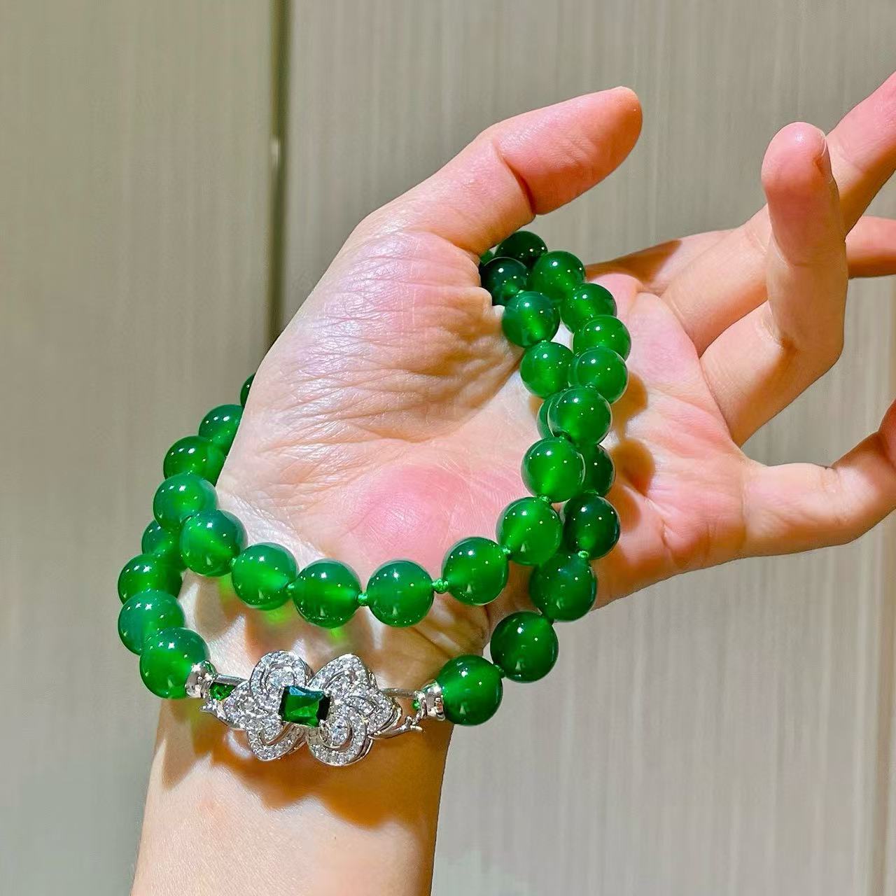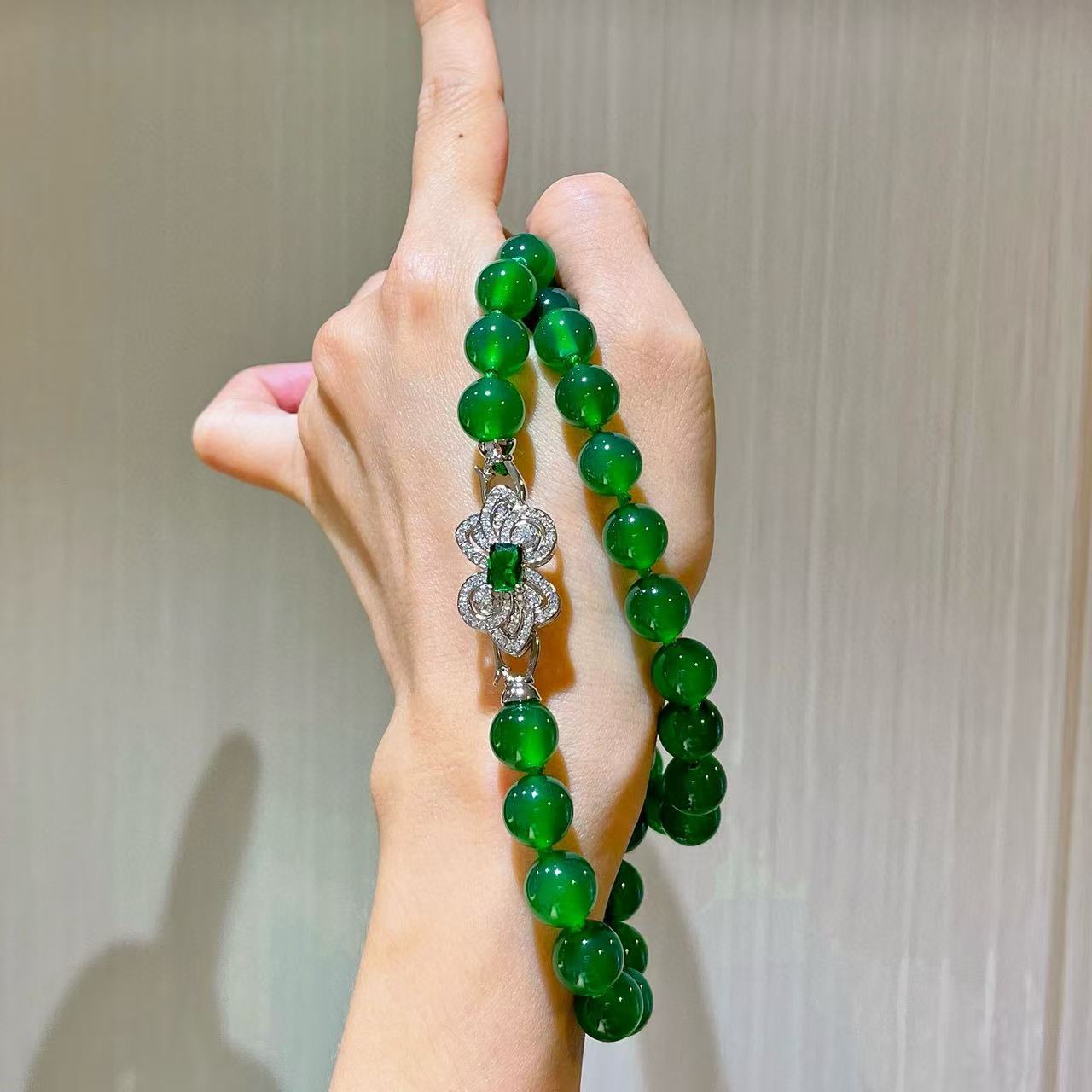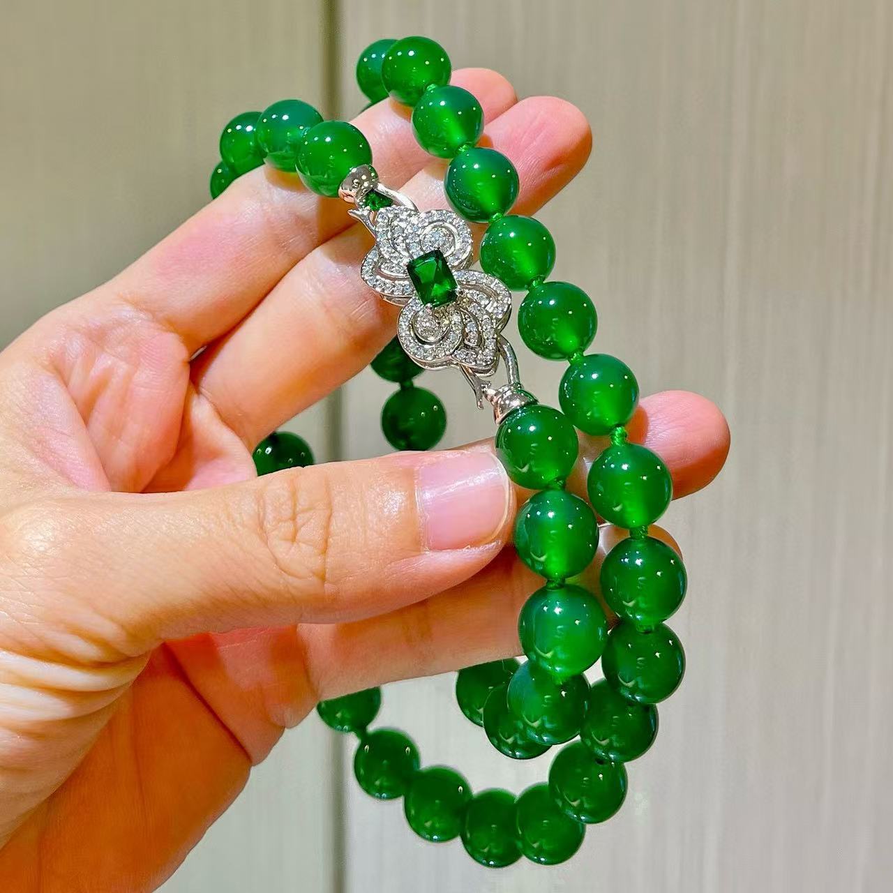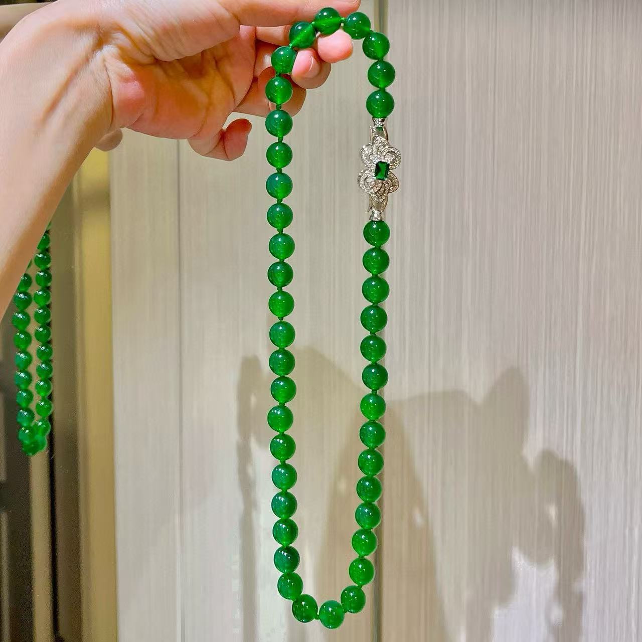 10mm高品质冰透帝王绿天然绿玉髓玛瑙项链锁骨链