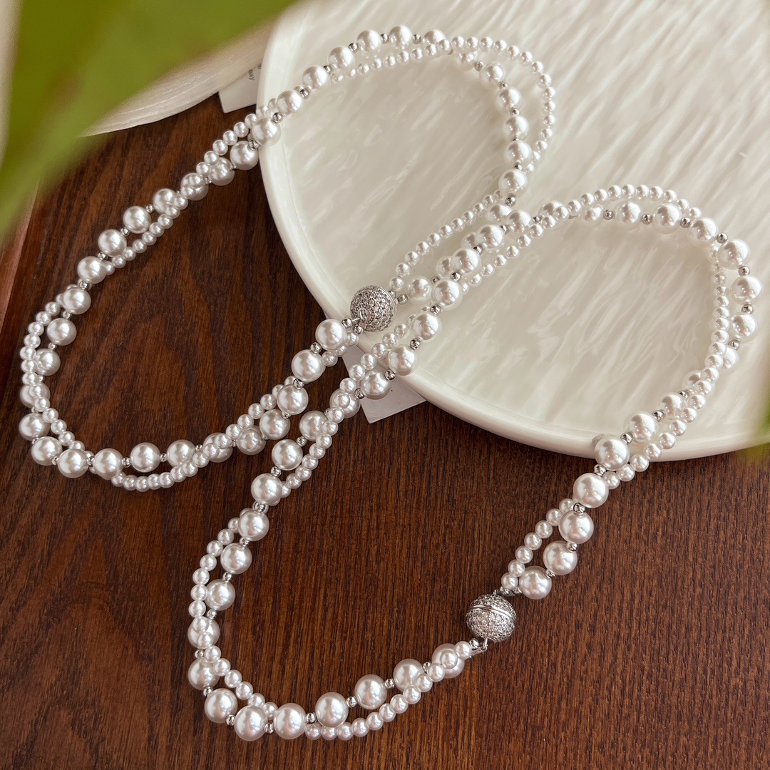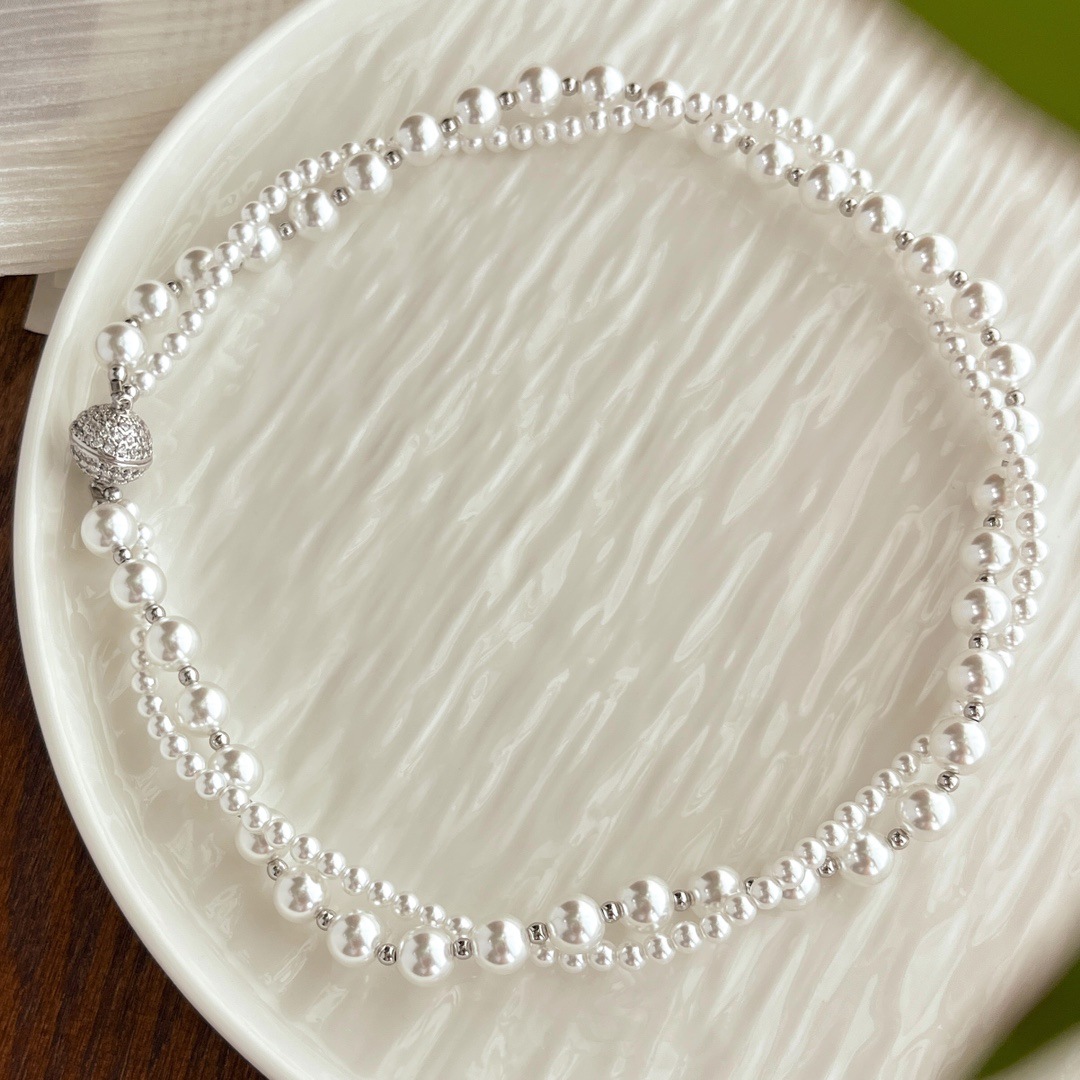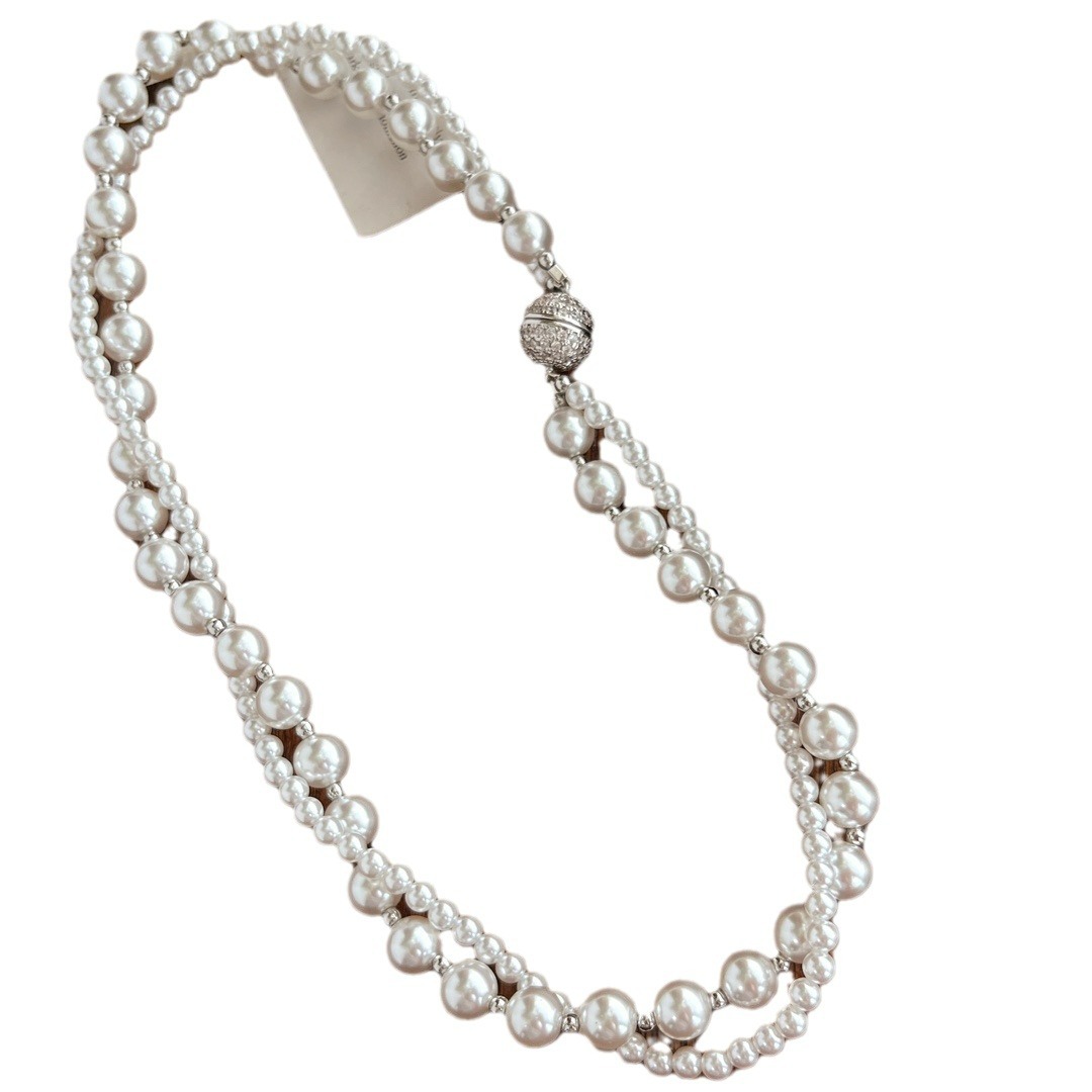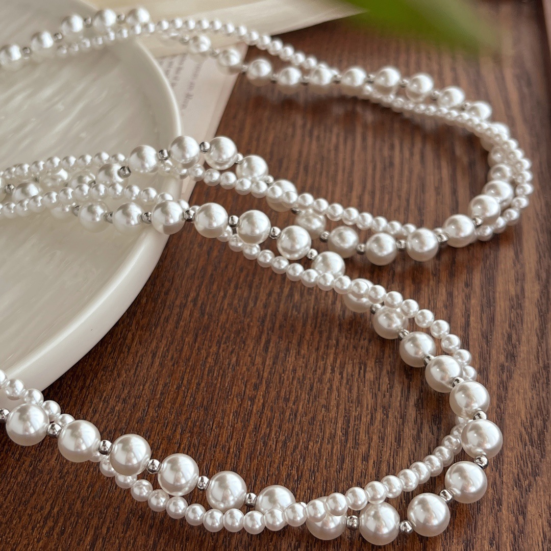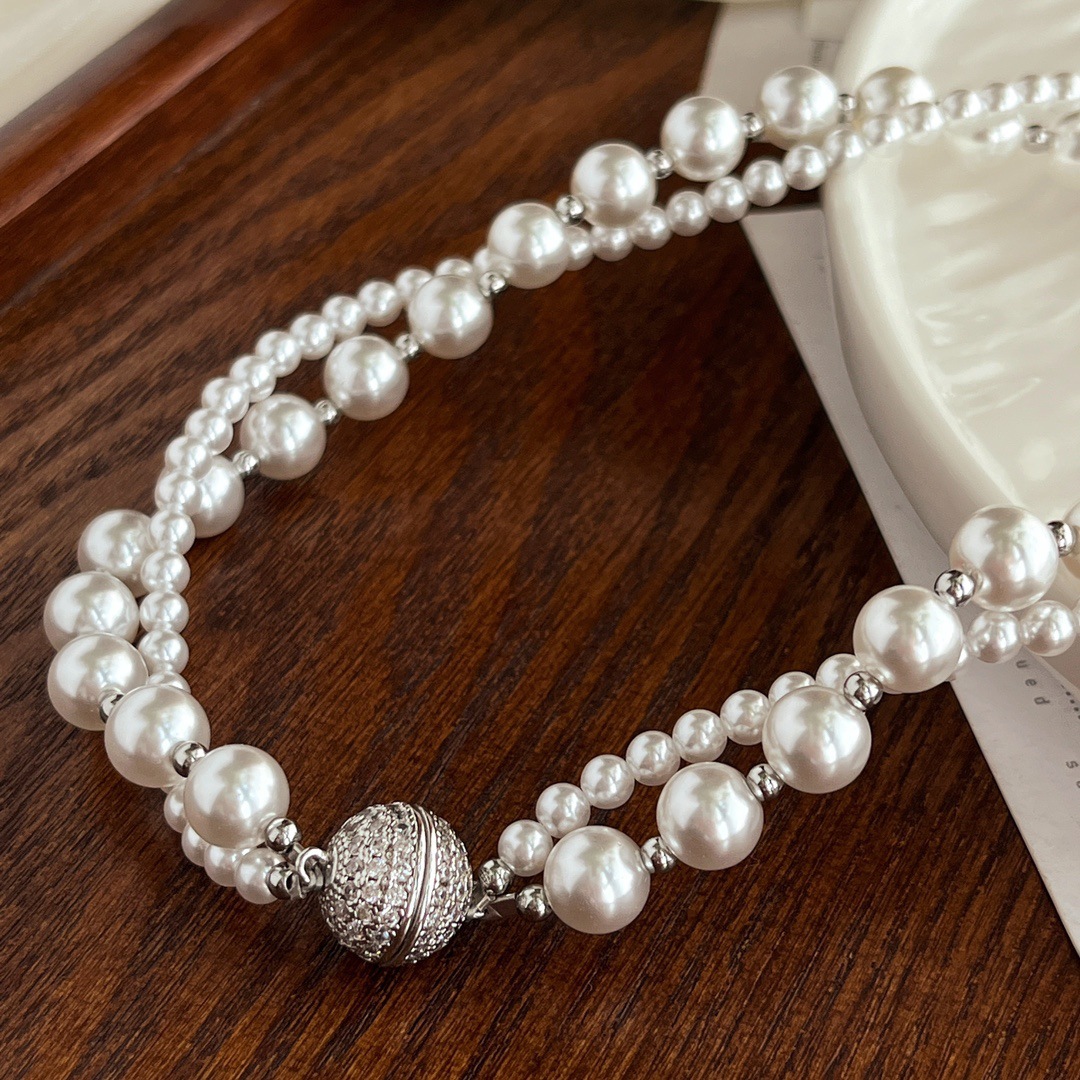 秋冬复古高品质施家正圆强光珍珠锁骨链双层缠绕颈链
