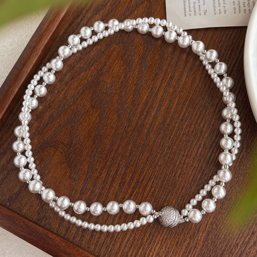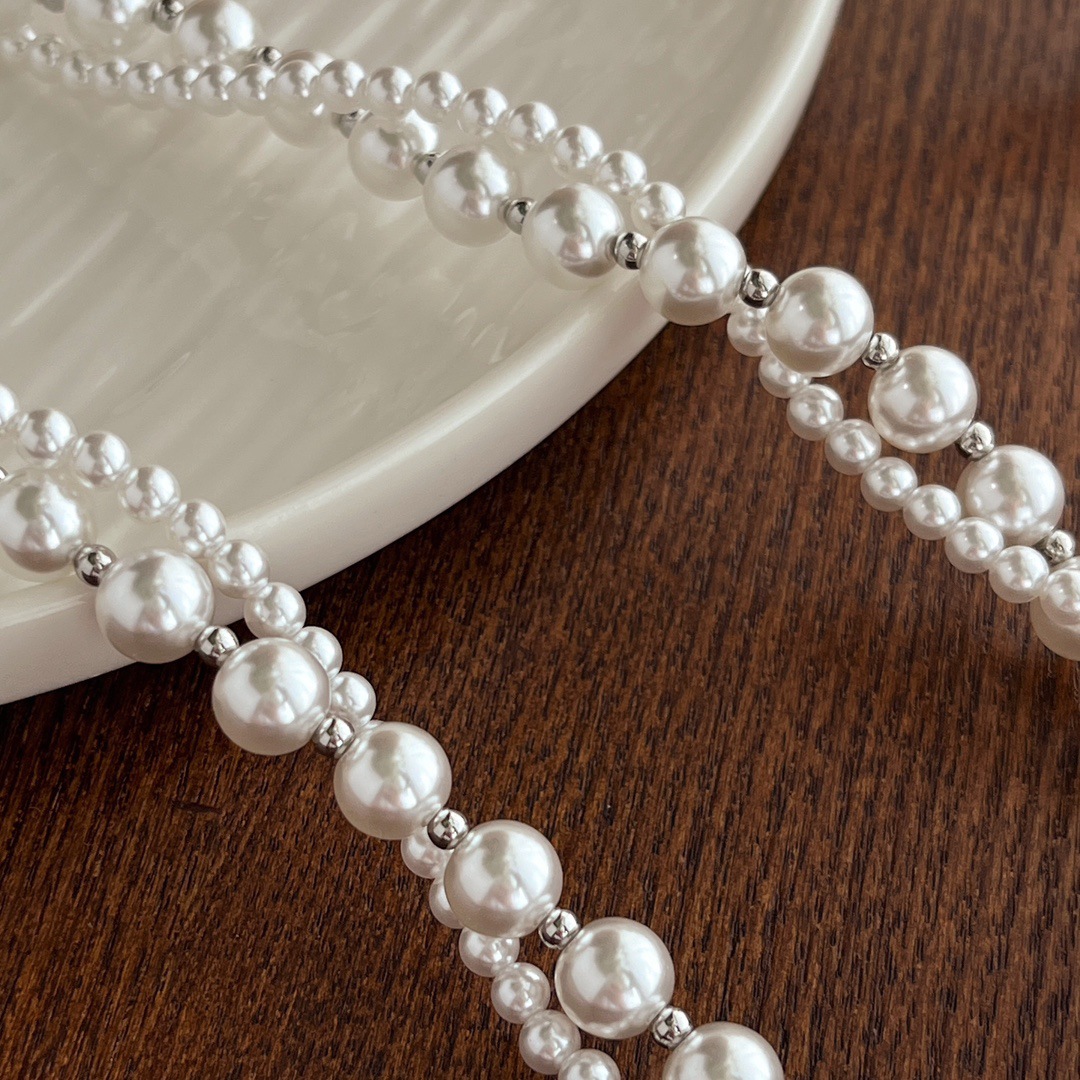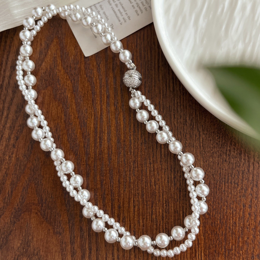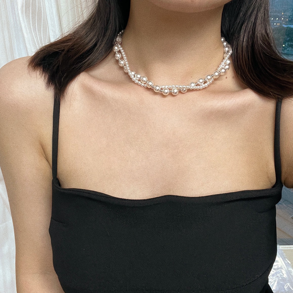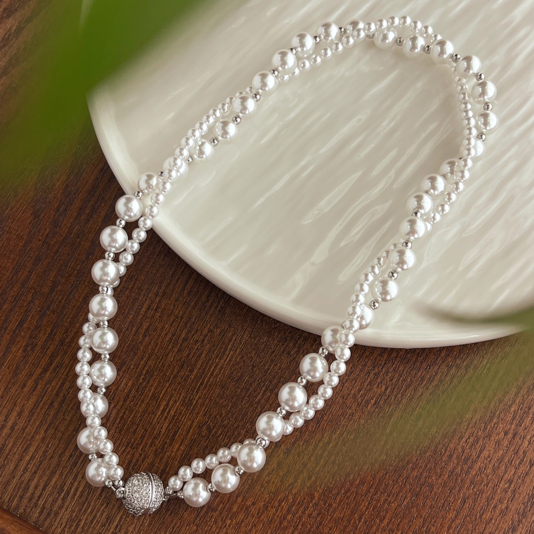 秋冬复古高品质施家正圆强光珍珠锁骨链双层缠绕颈链