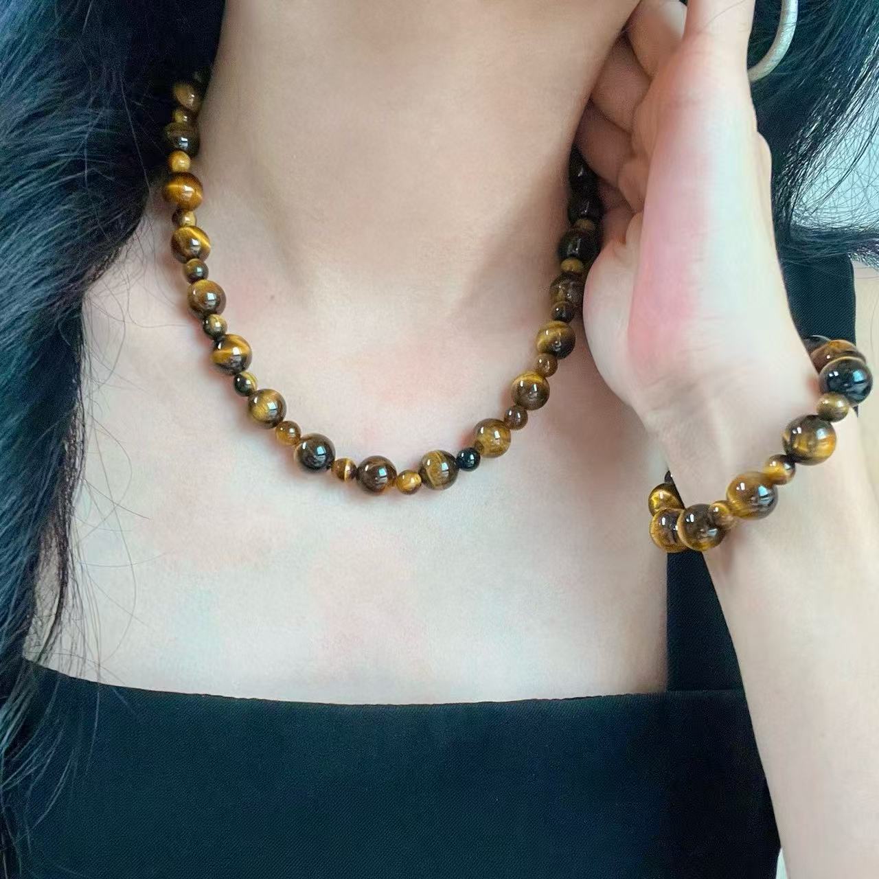 10mm店主推荐秋冬精品美拉德风天然虎眼石项链 保真可复检