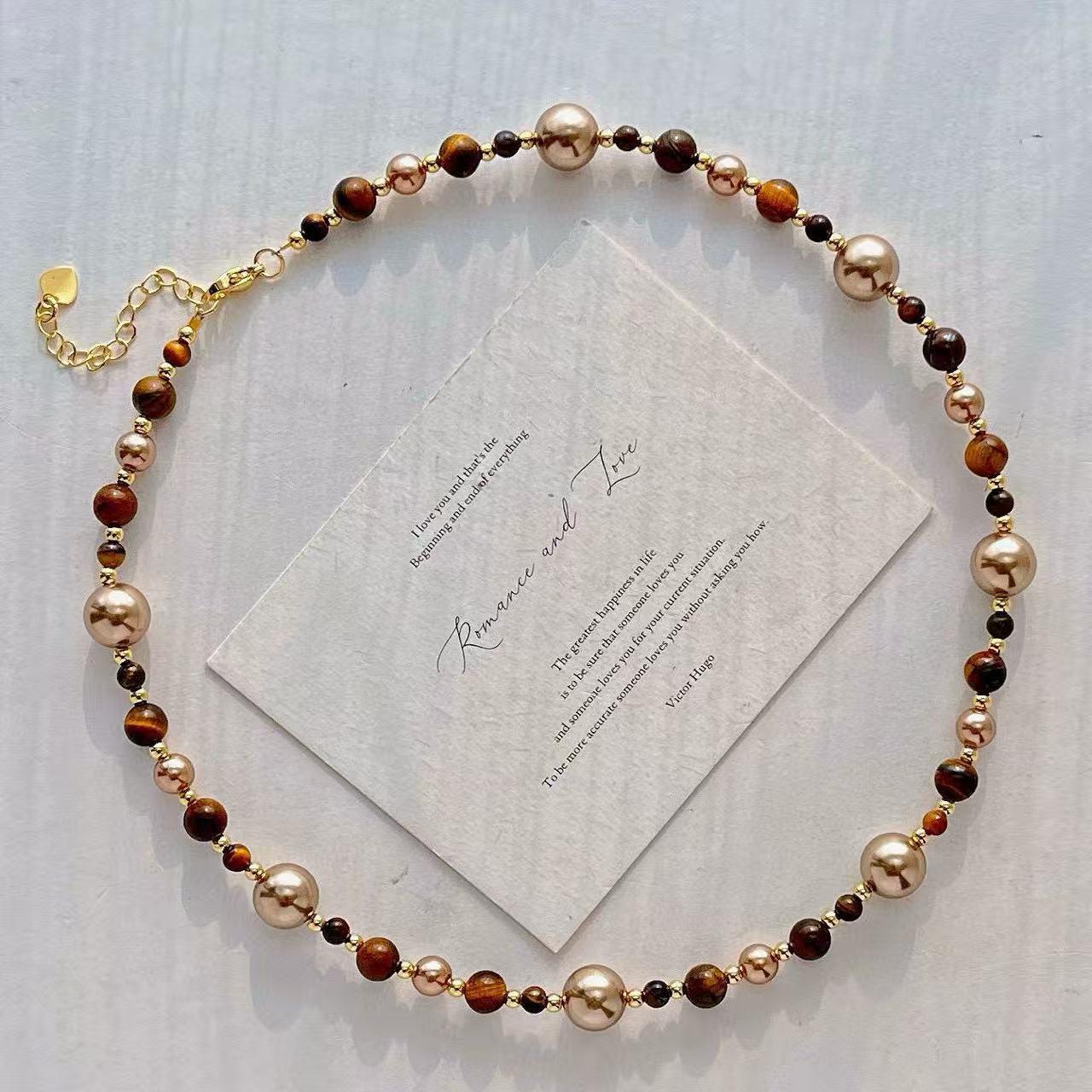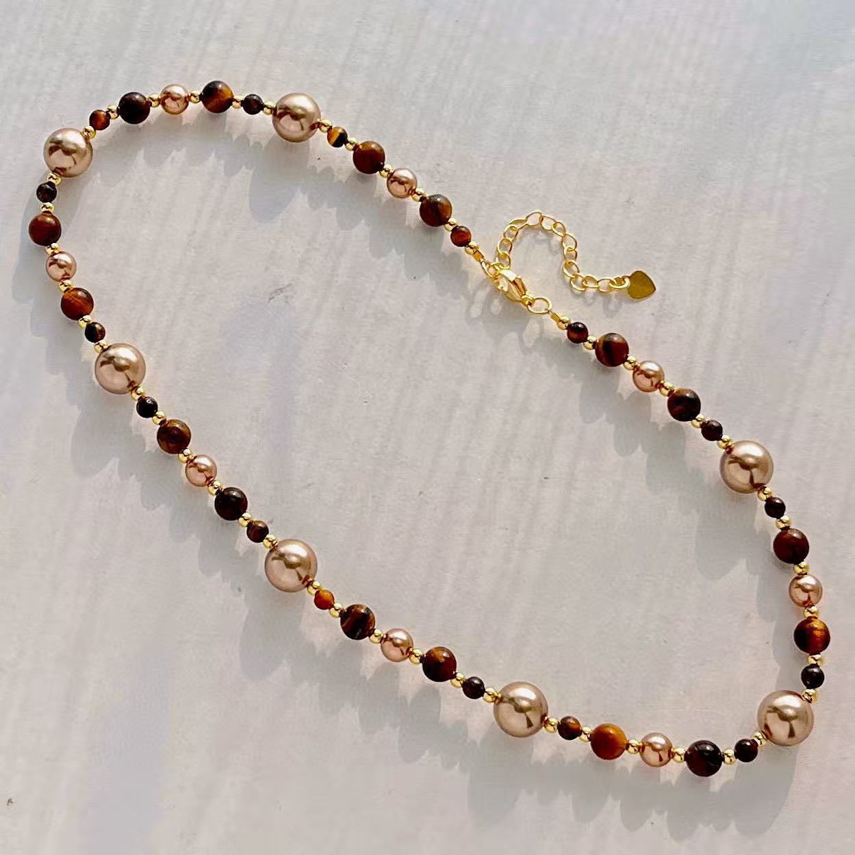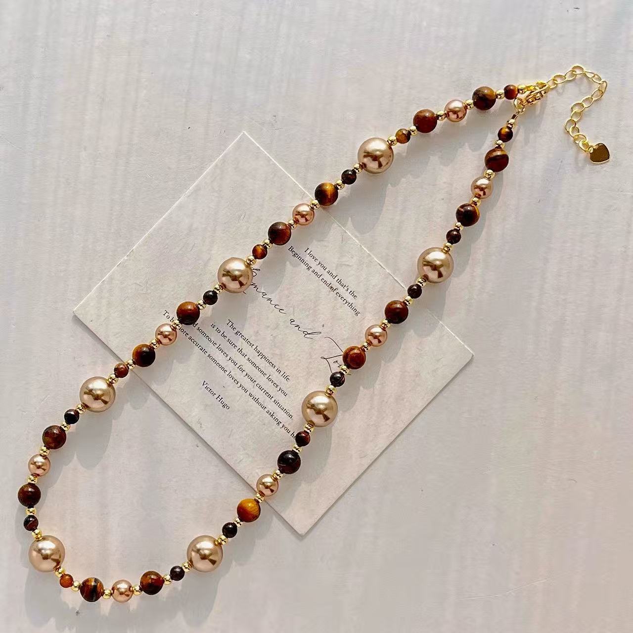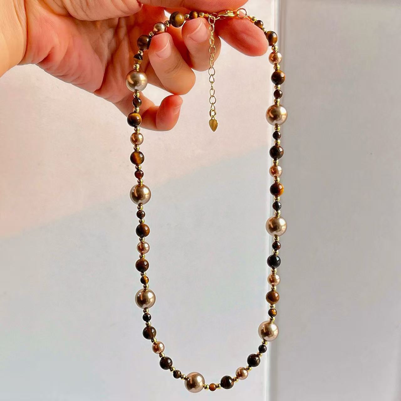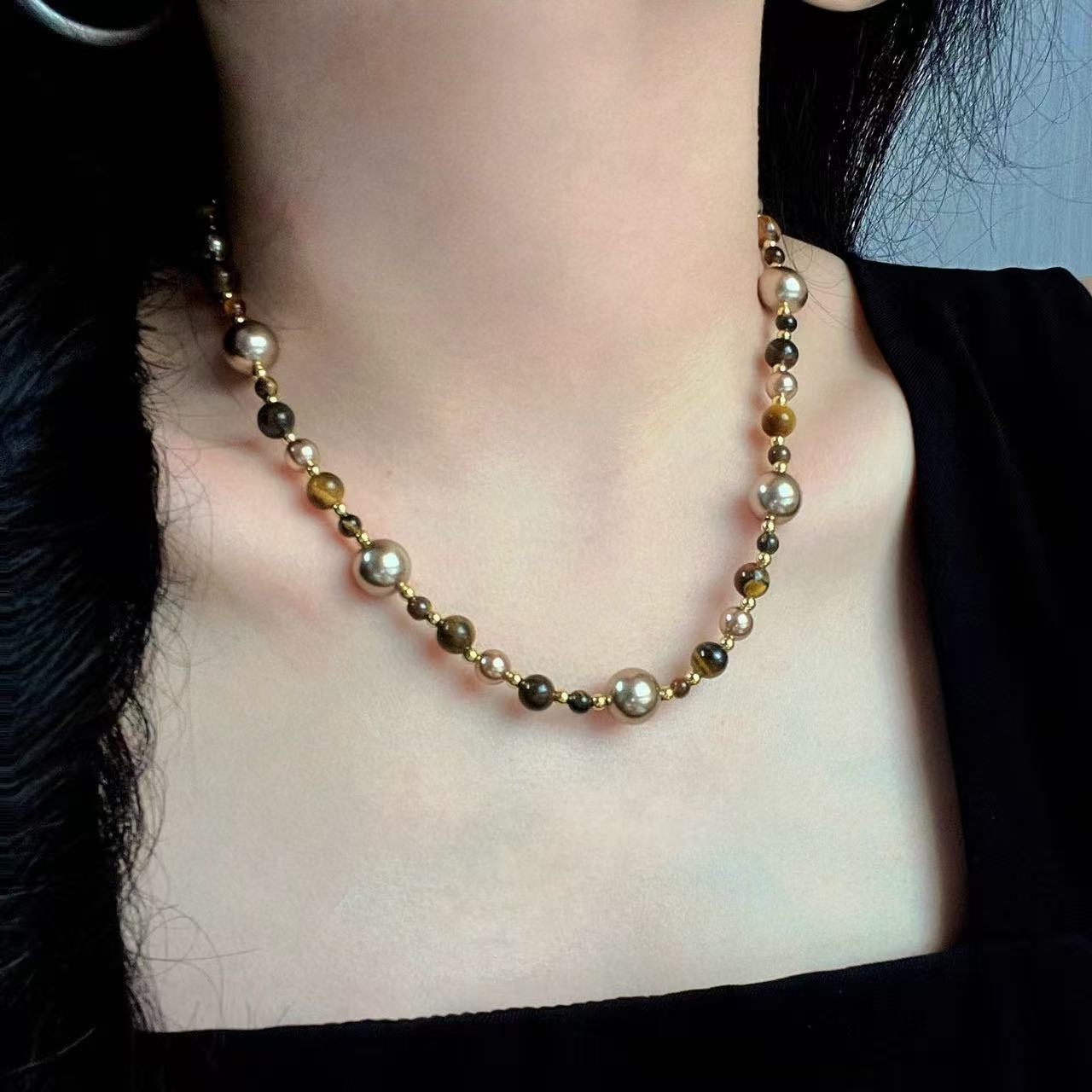 秋冬天然精品虎眼石施家珍珠项链锁骨链美拉德项饰女