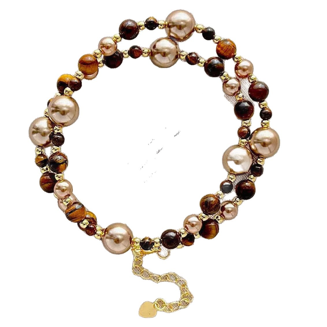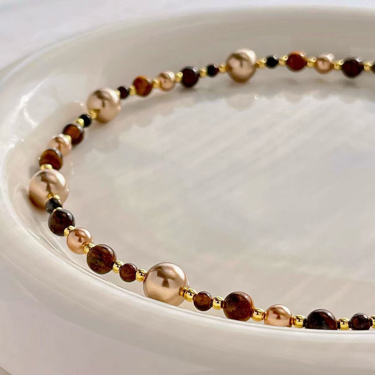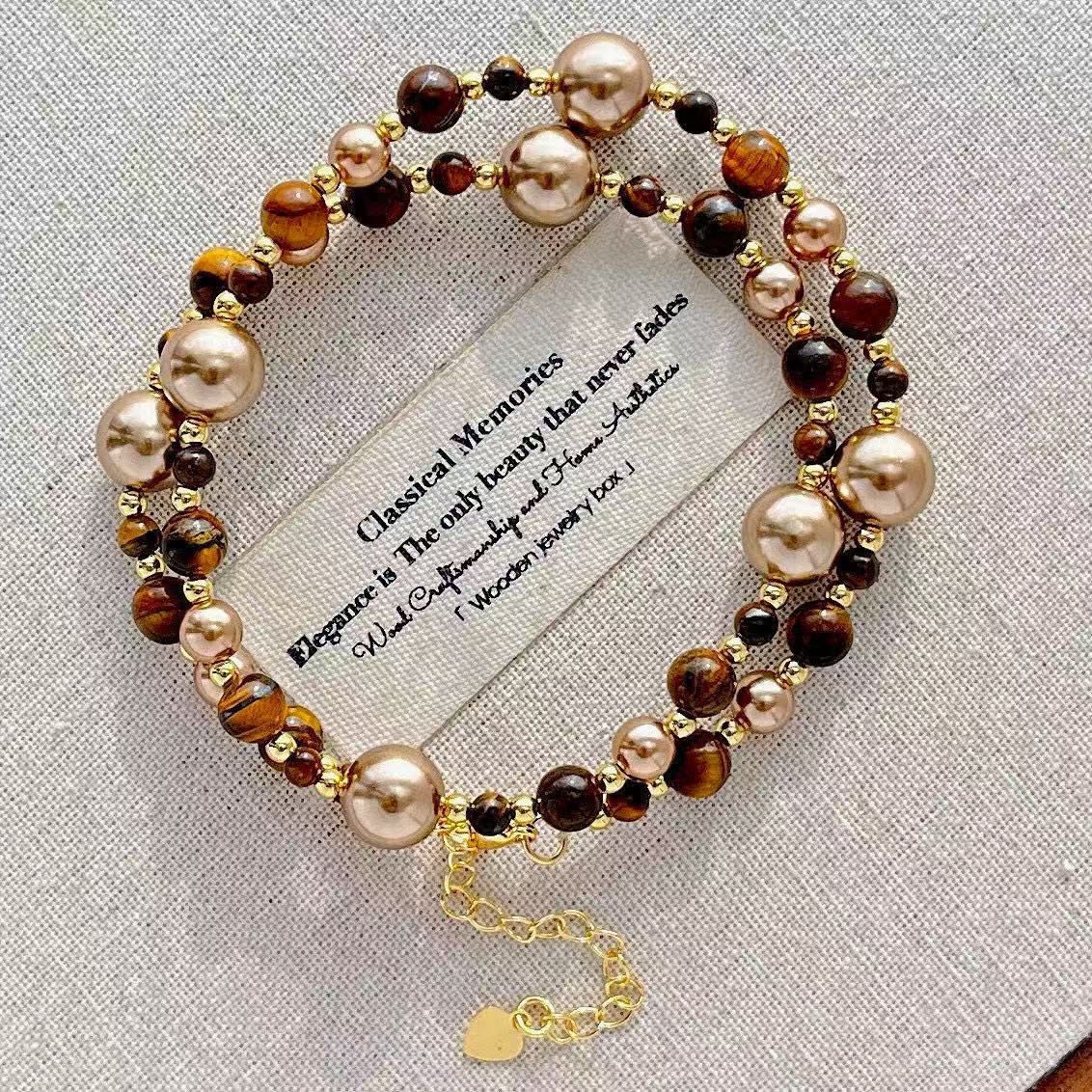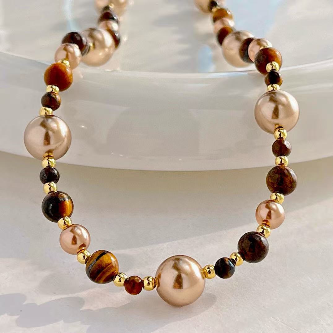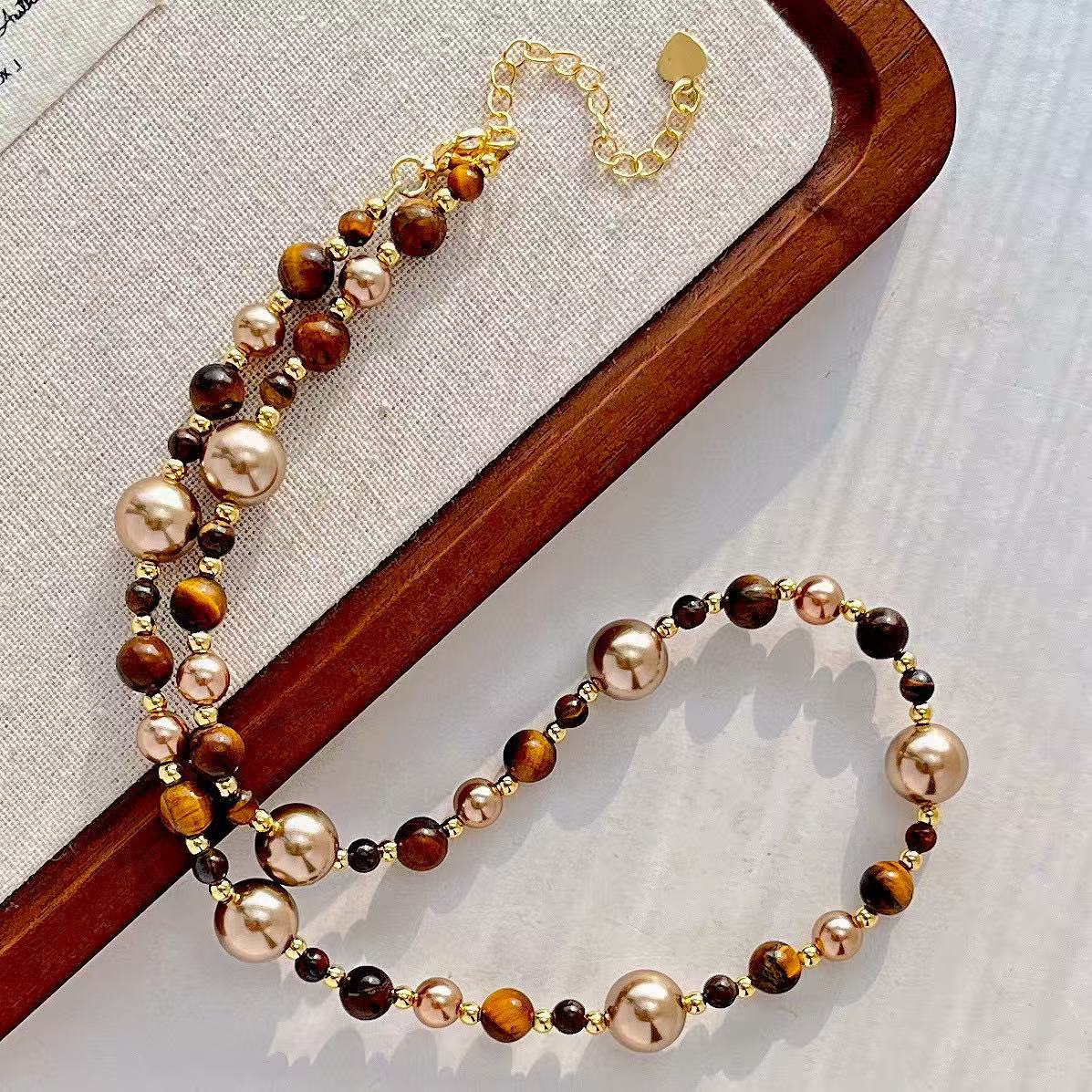 秋冬天然精品虎眼石施家珍珠项链锁骨链美拉德项饰女