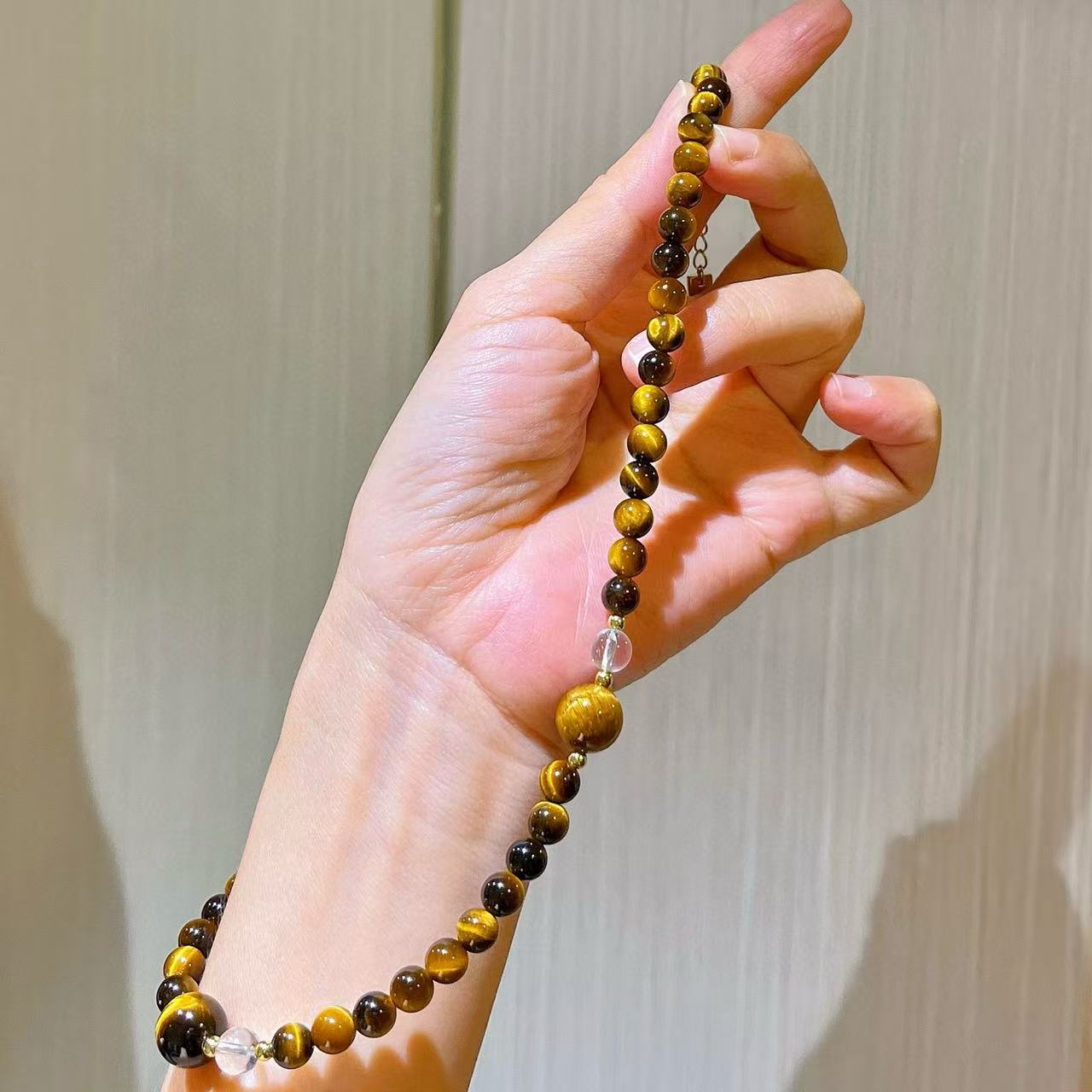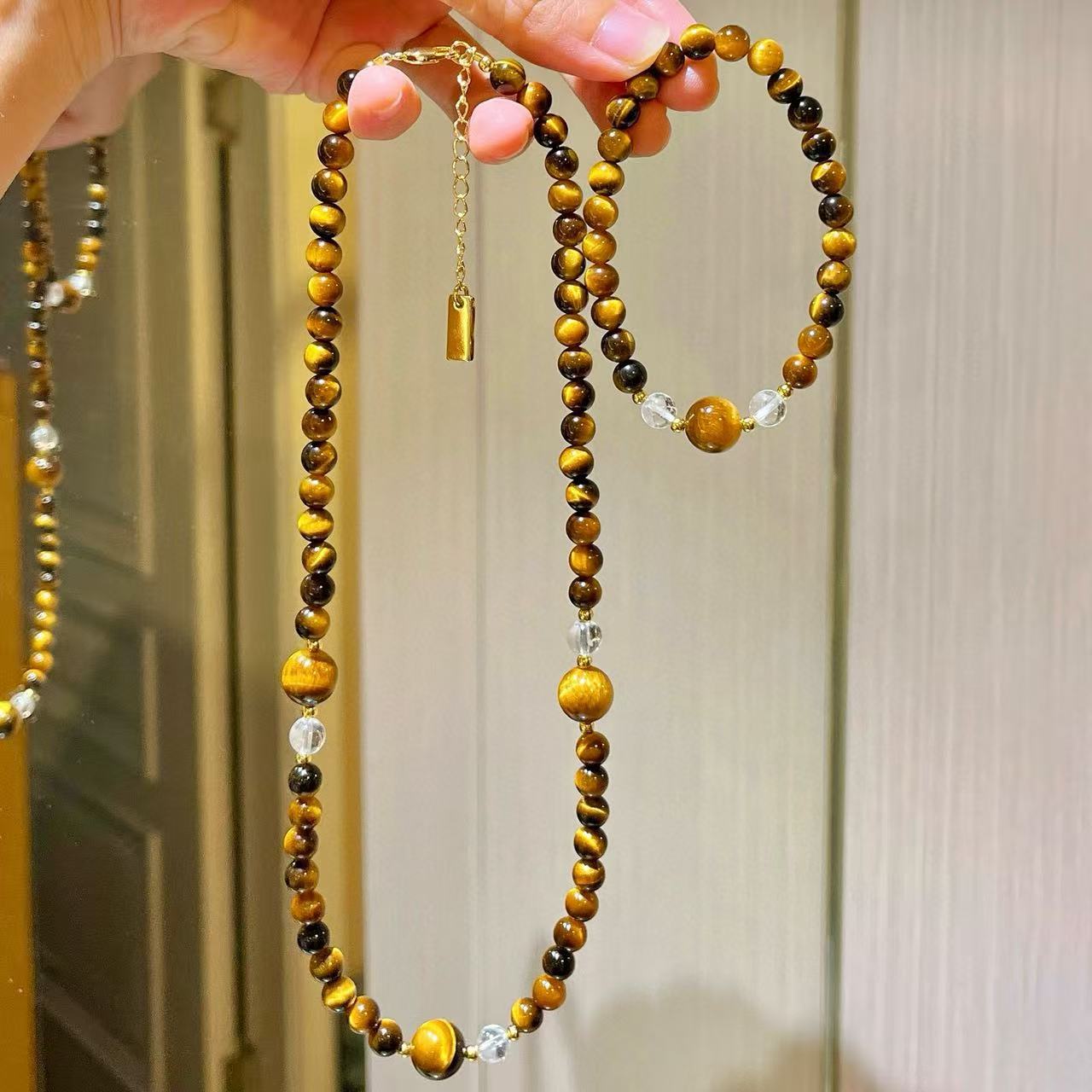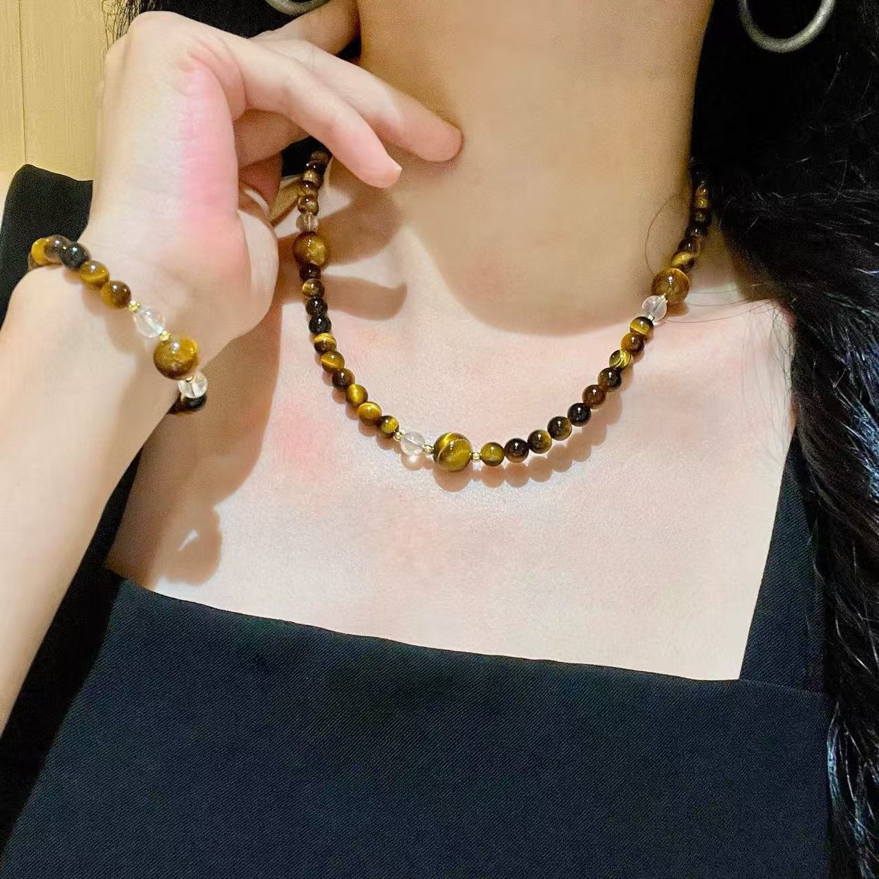 复古秋冬美拉德天然高品质虎眼石手链项链套装
