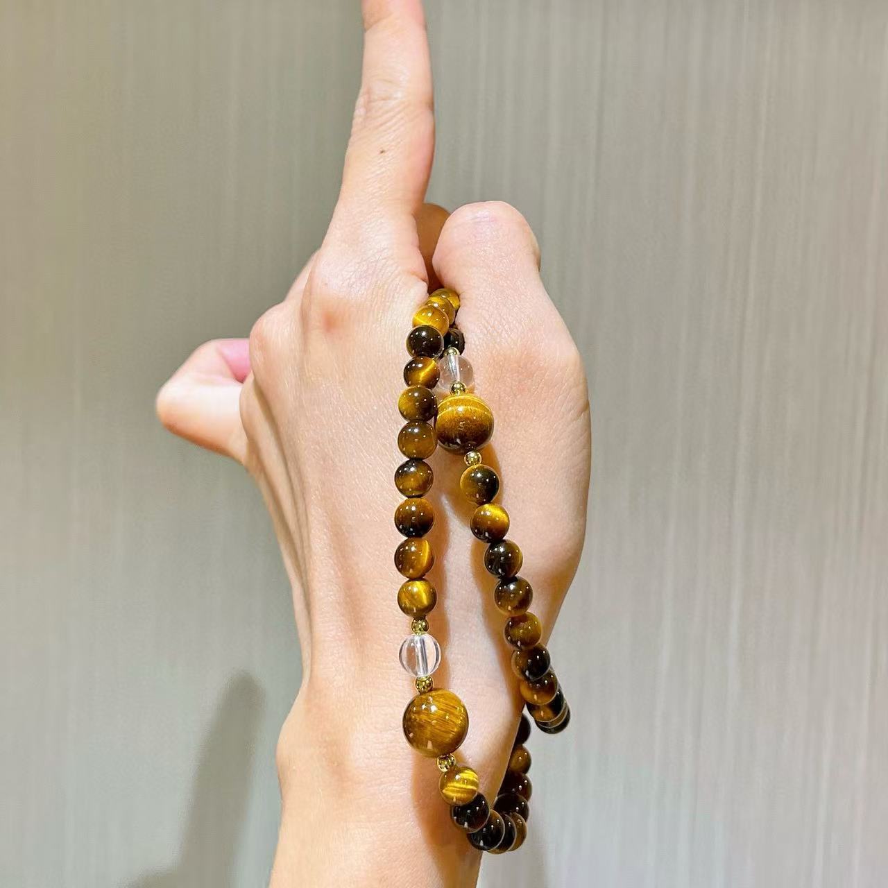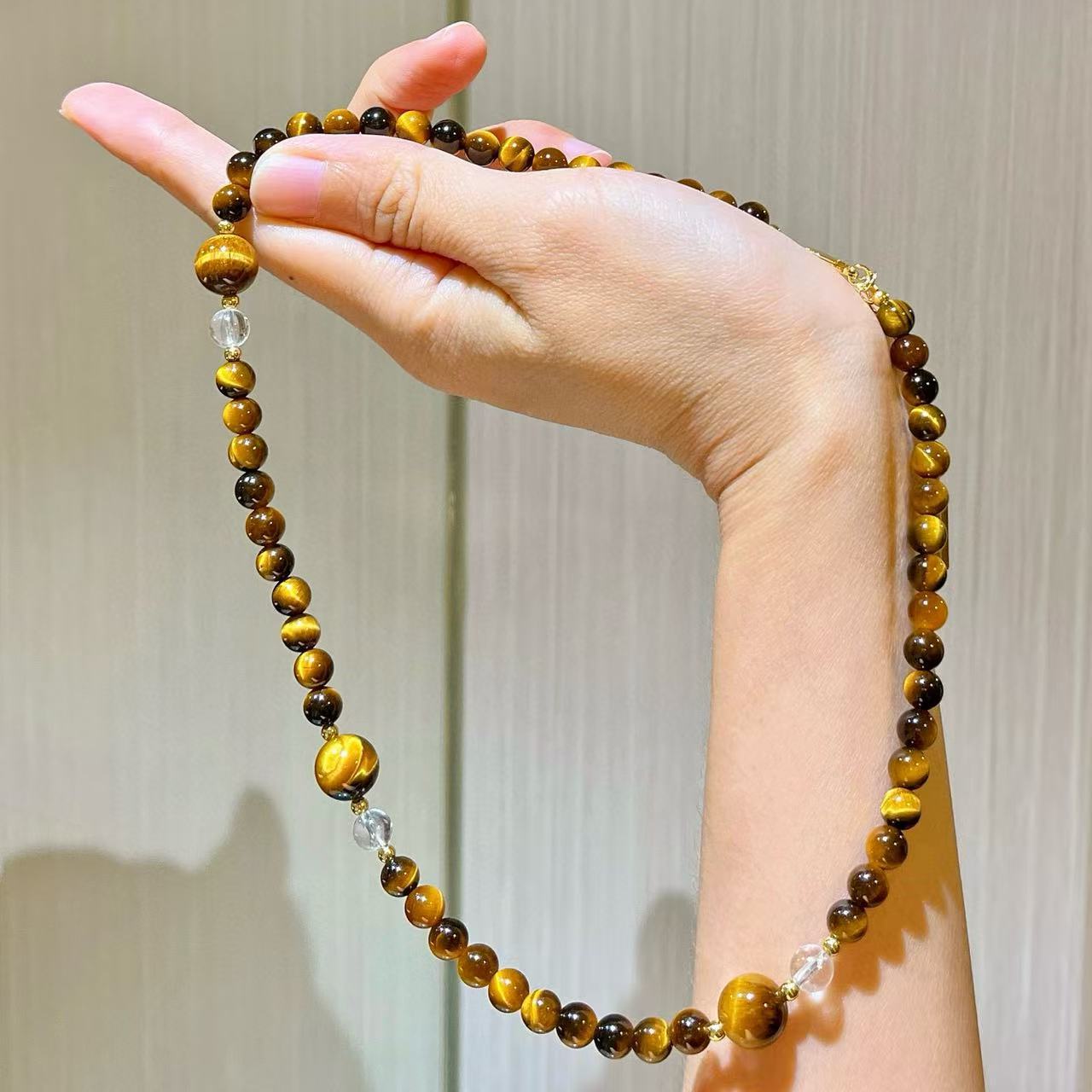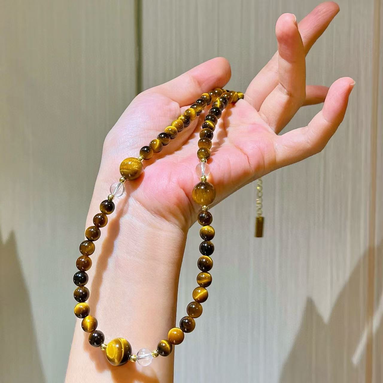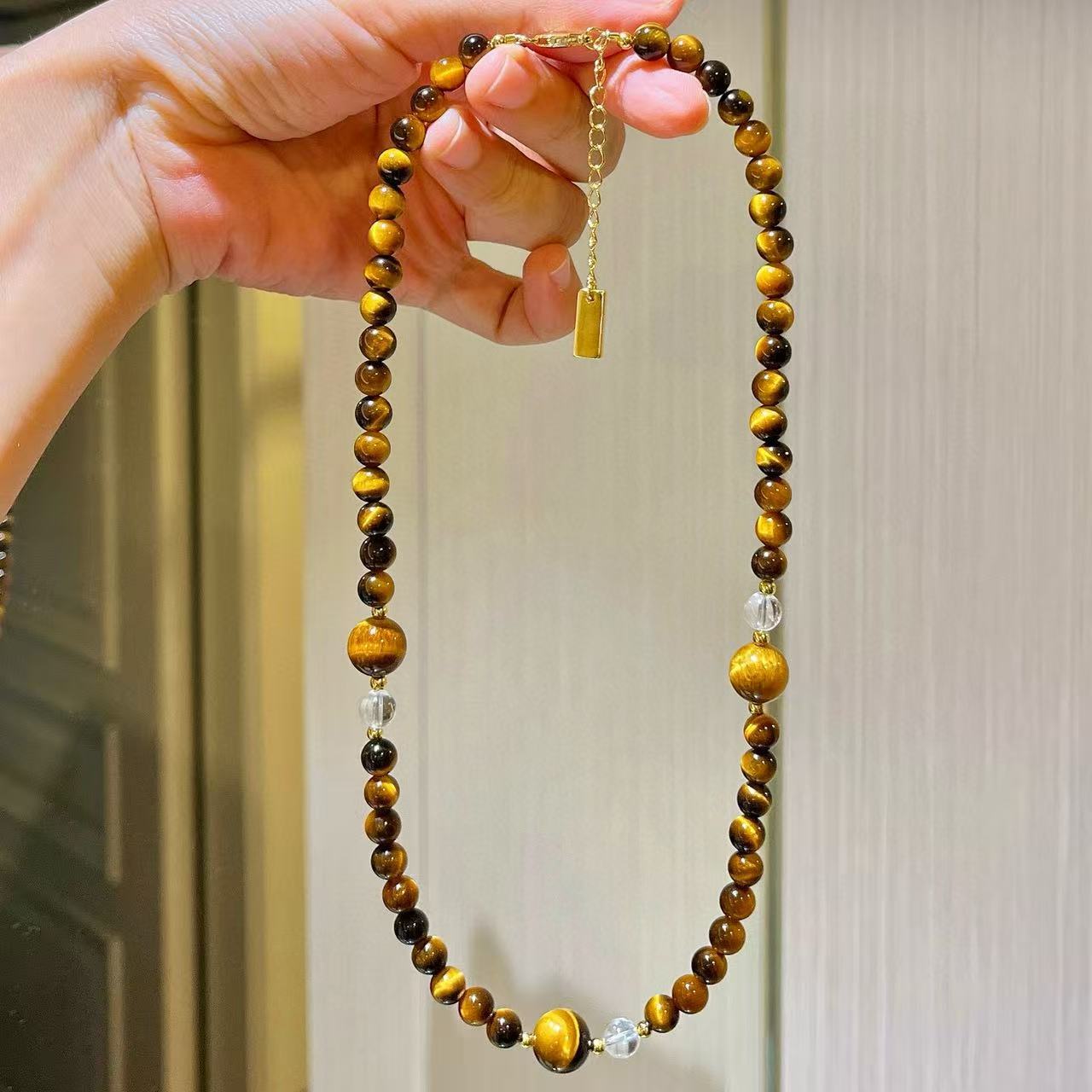 复古秋冬美拉德天然高品质虎眼石手链项链套装