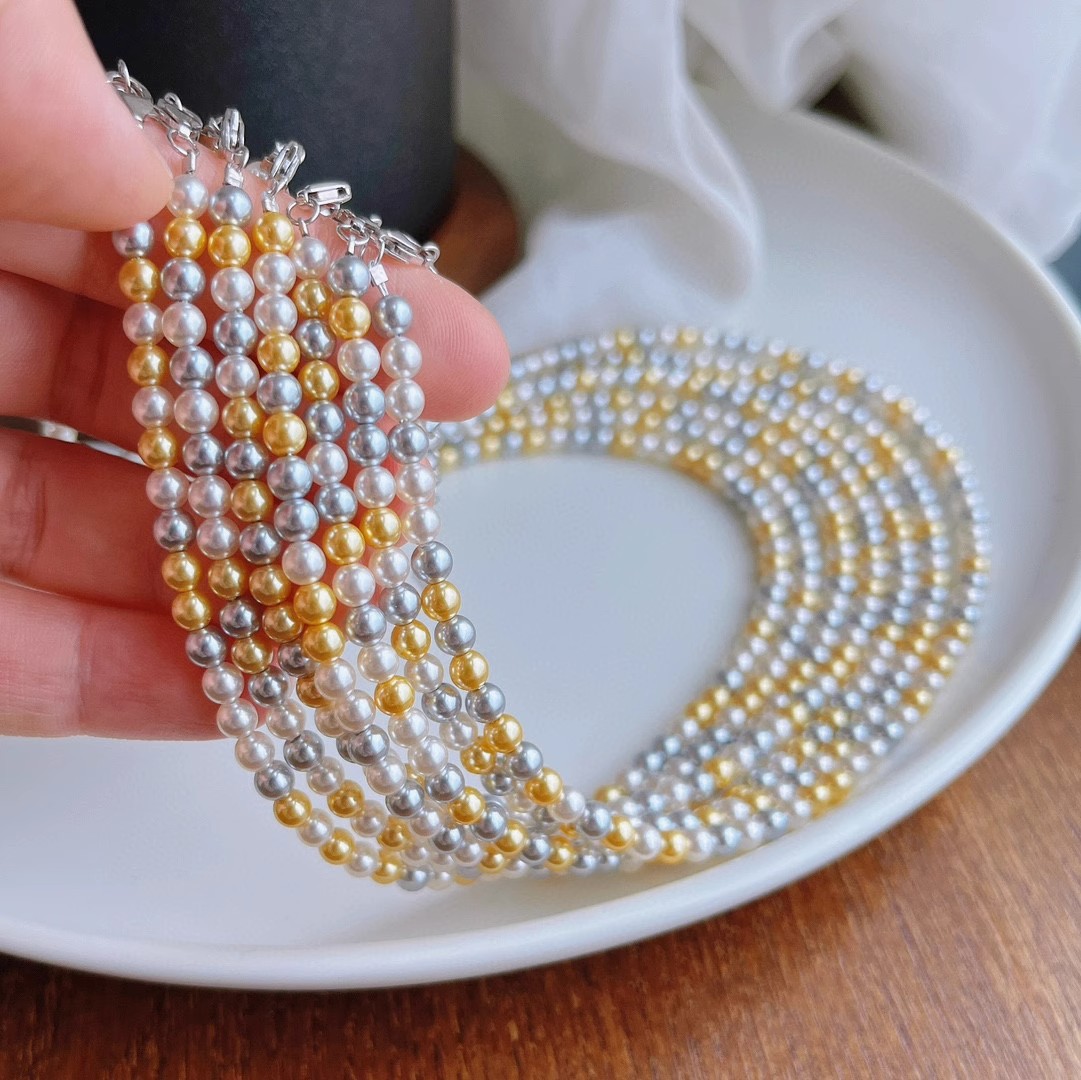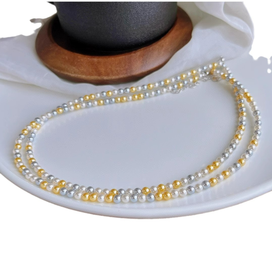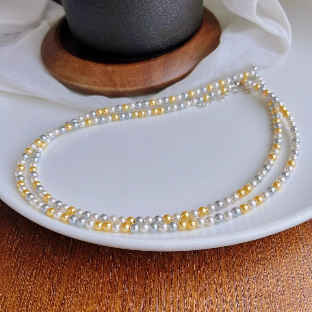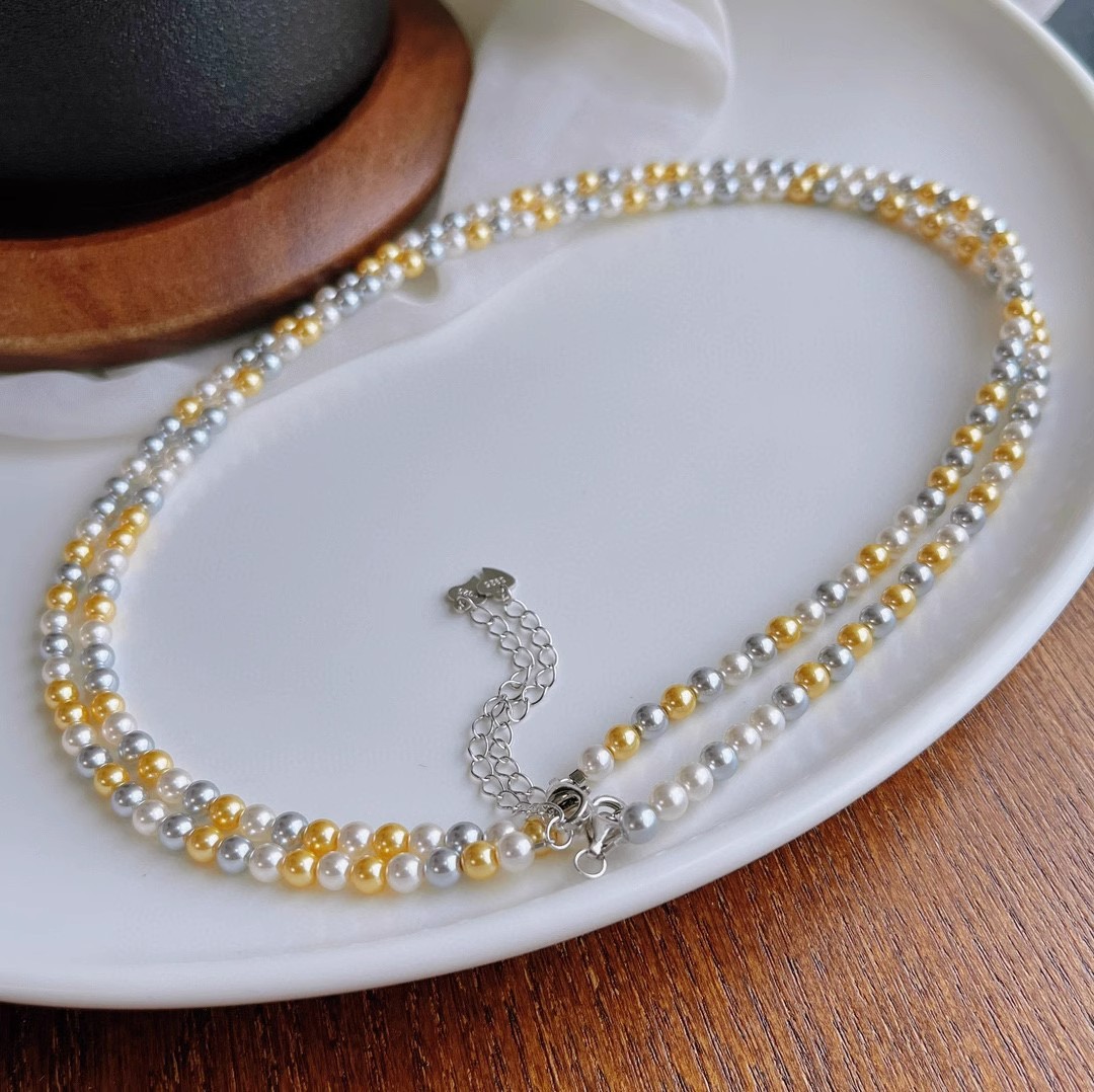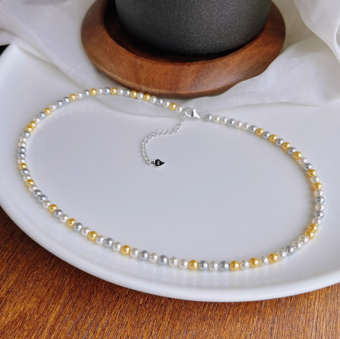正圆强光混彩施家珍珠项链女 4mm5mmbaby珠锁骨链925银扣