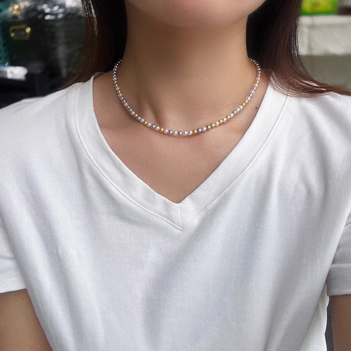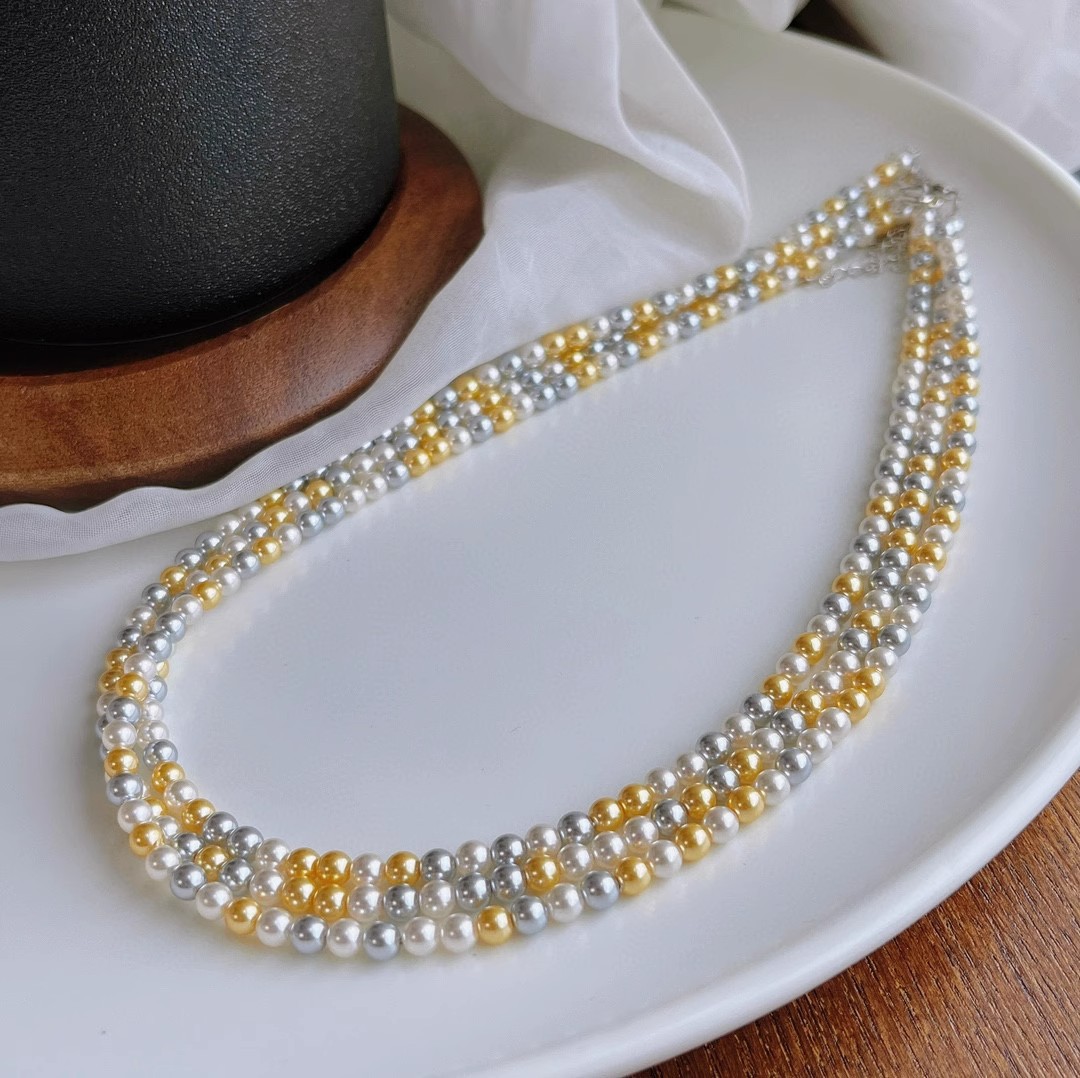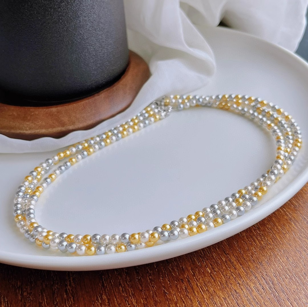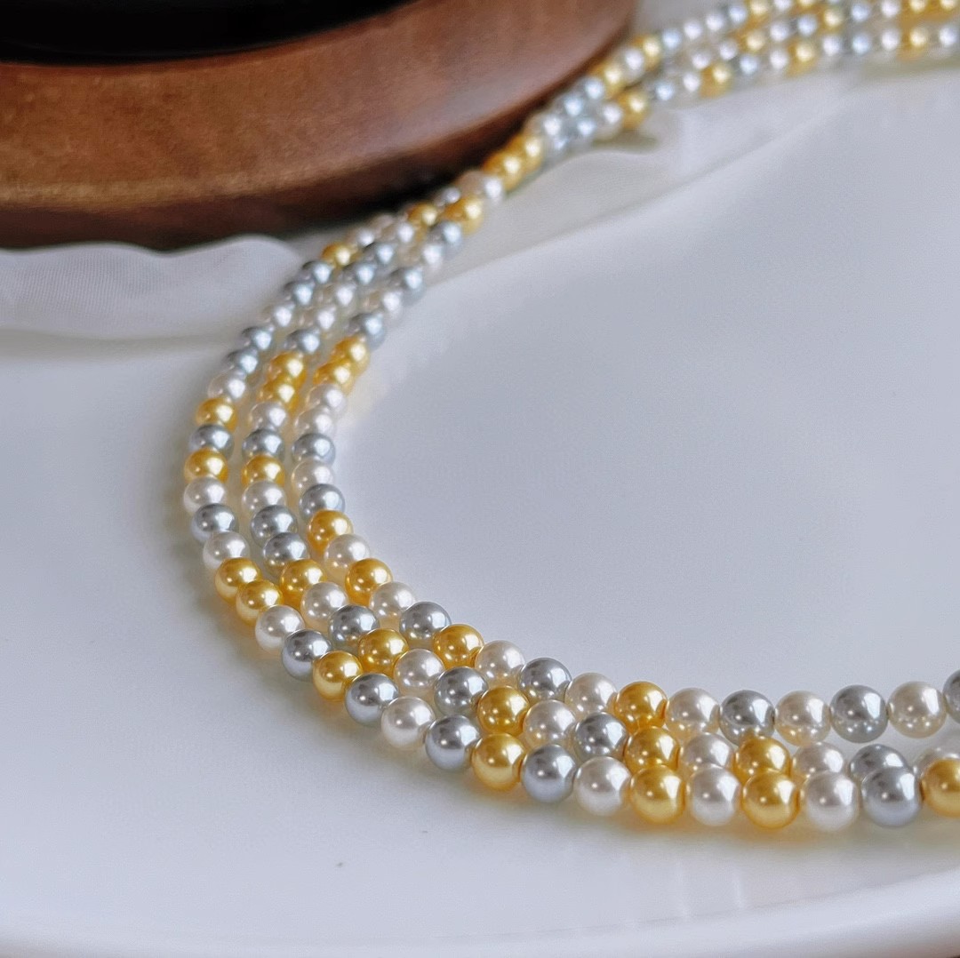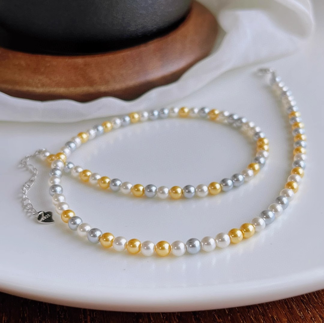 正圆强光混彩施家珍珠项链女 4mm5mmbaby珠锁骨链925银扣