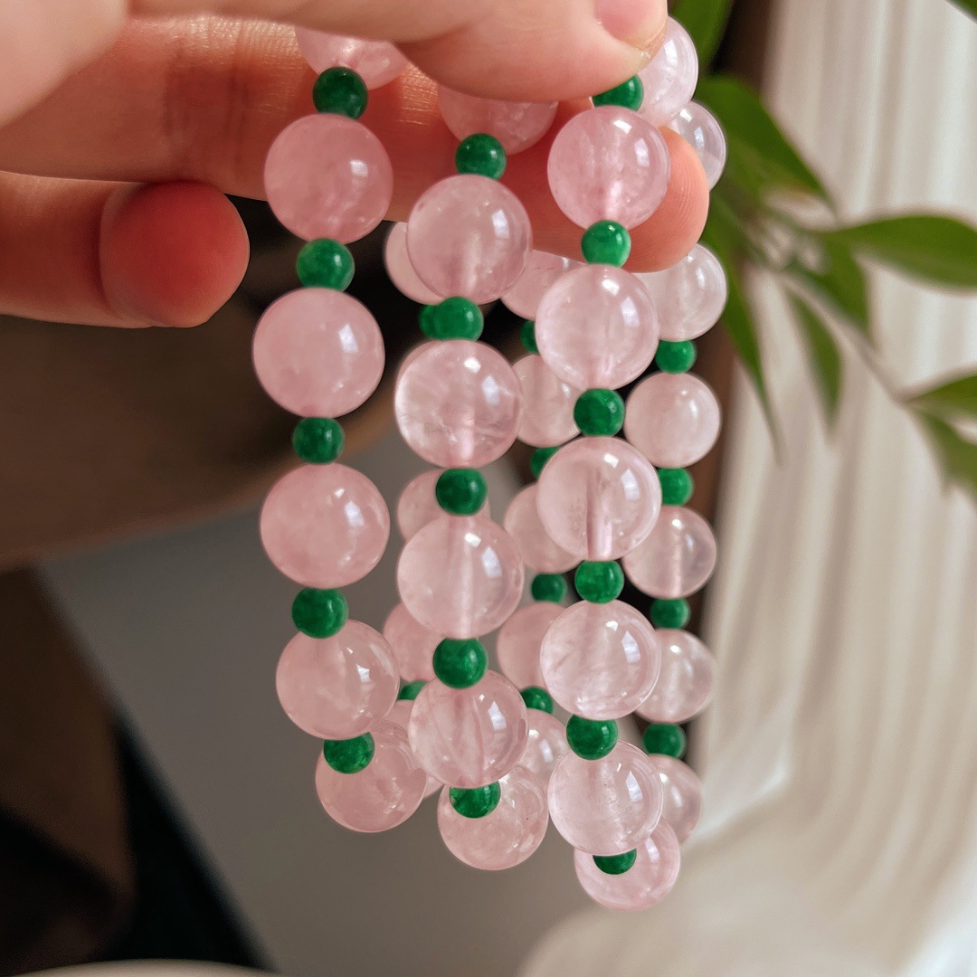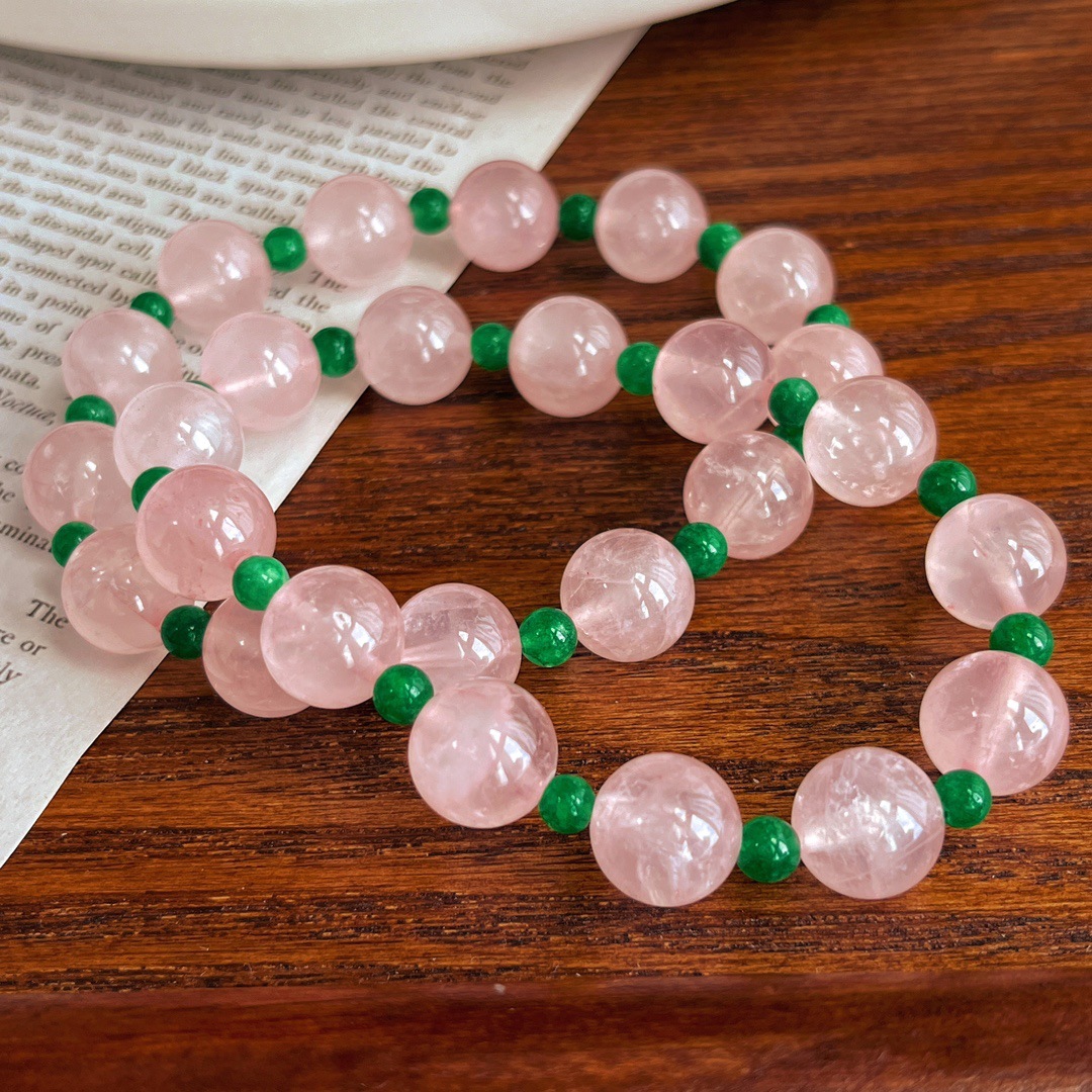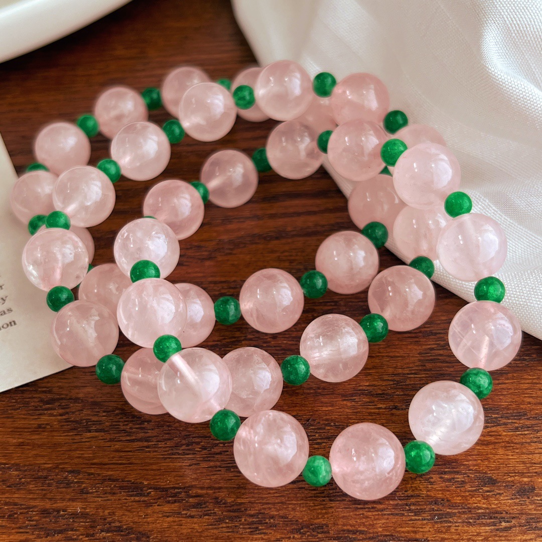 天然粉晶撞色翡翠干青色石英岩满天星手链氛围感手串女