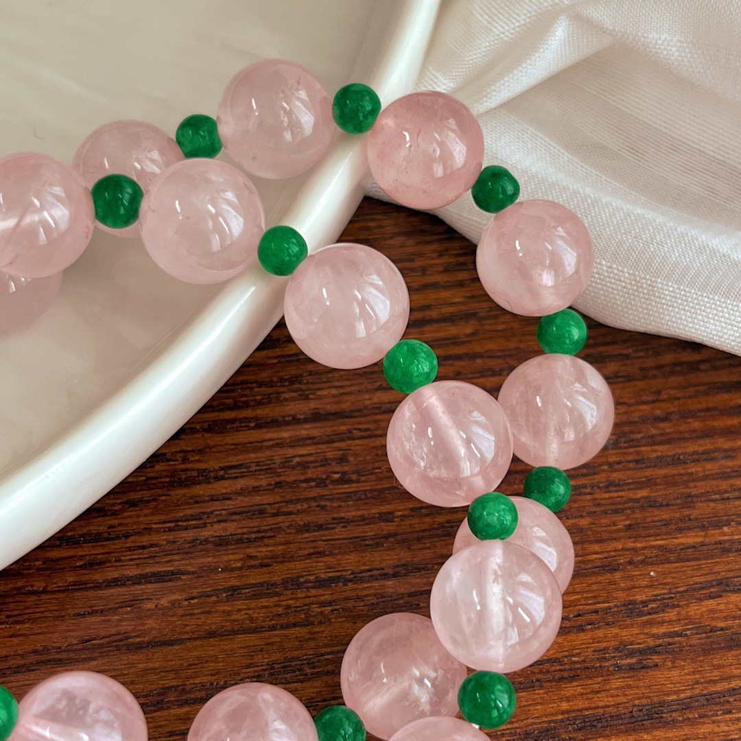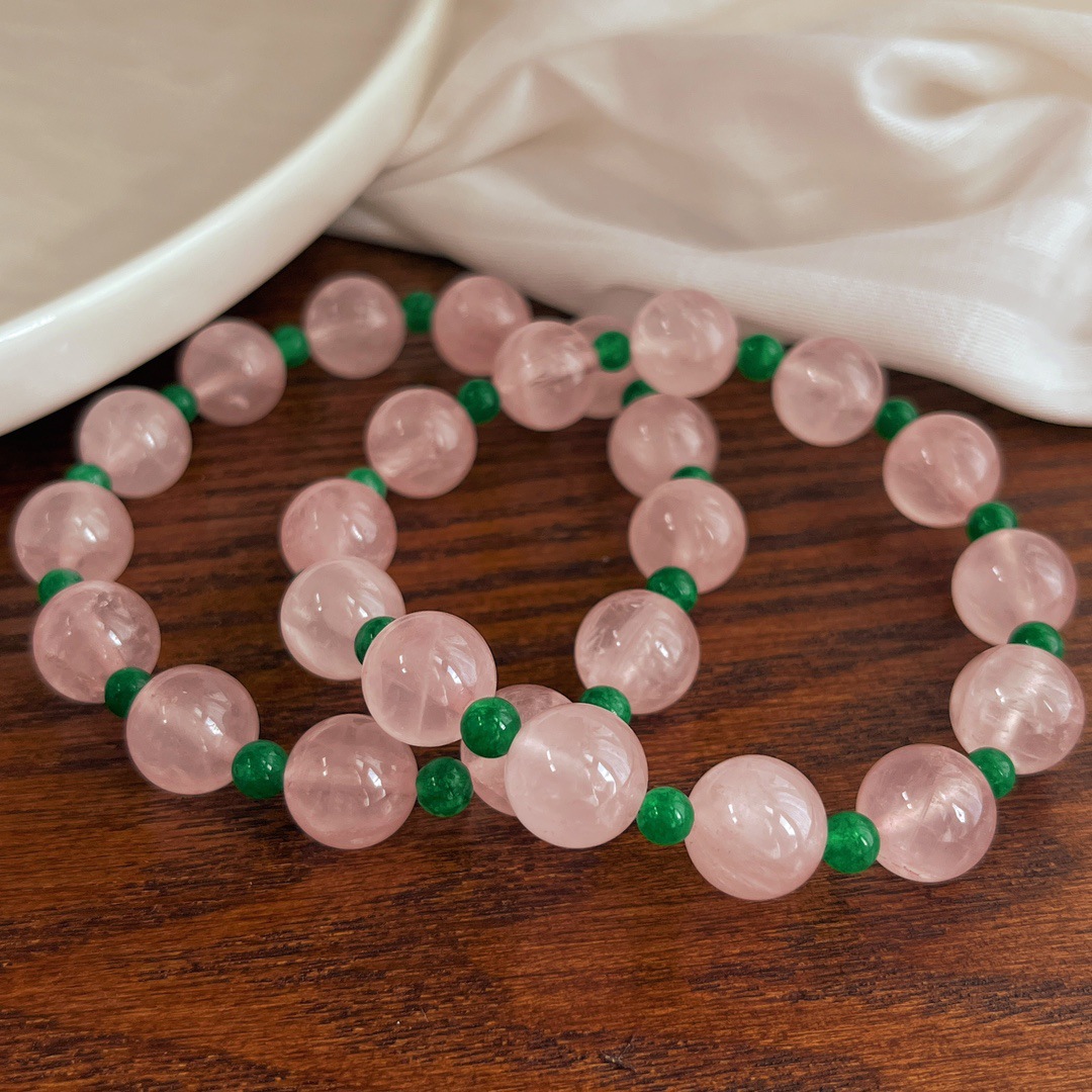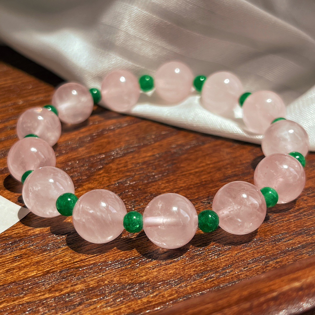 天然粉晶撞色翡翠干青色石英岩满天星手链氛围感手串女
