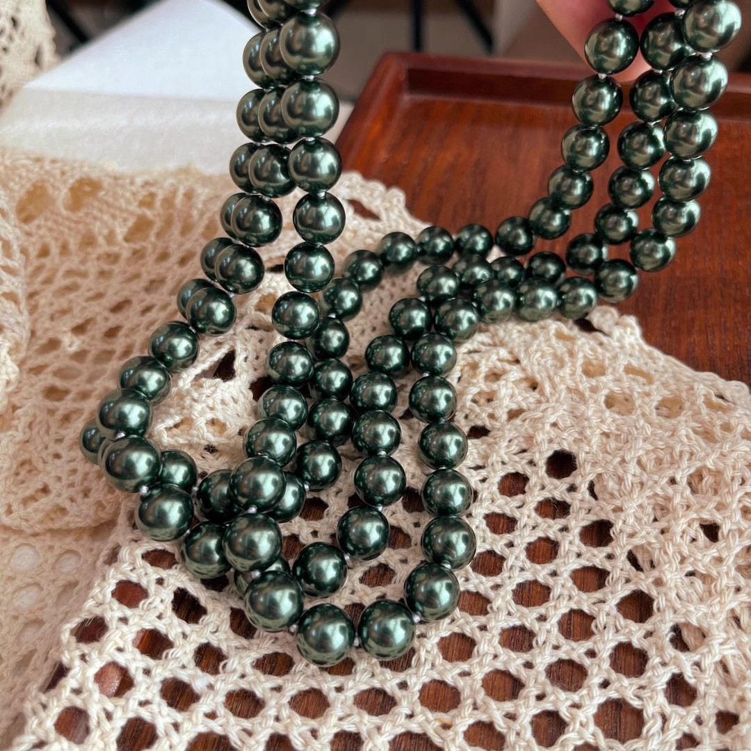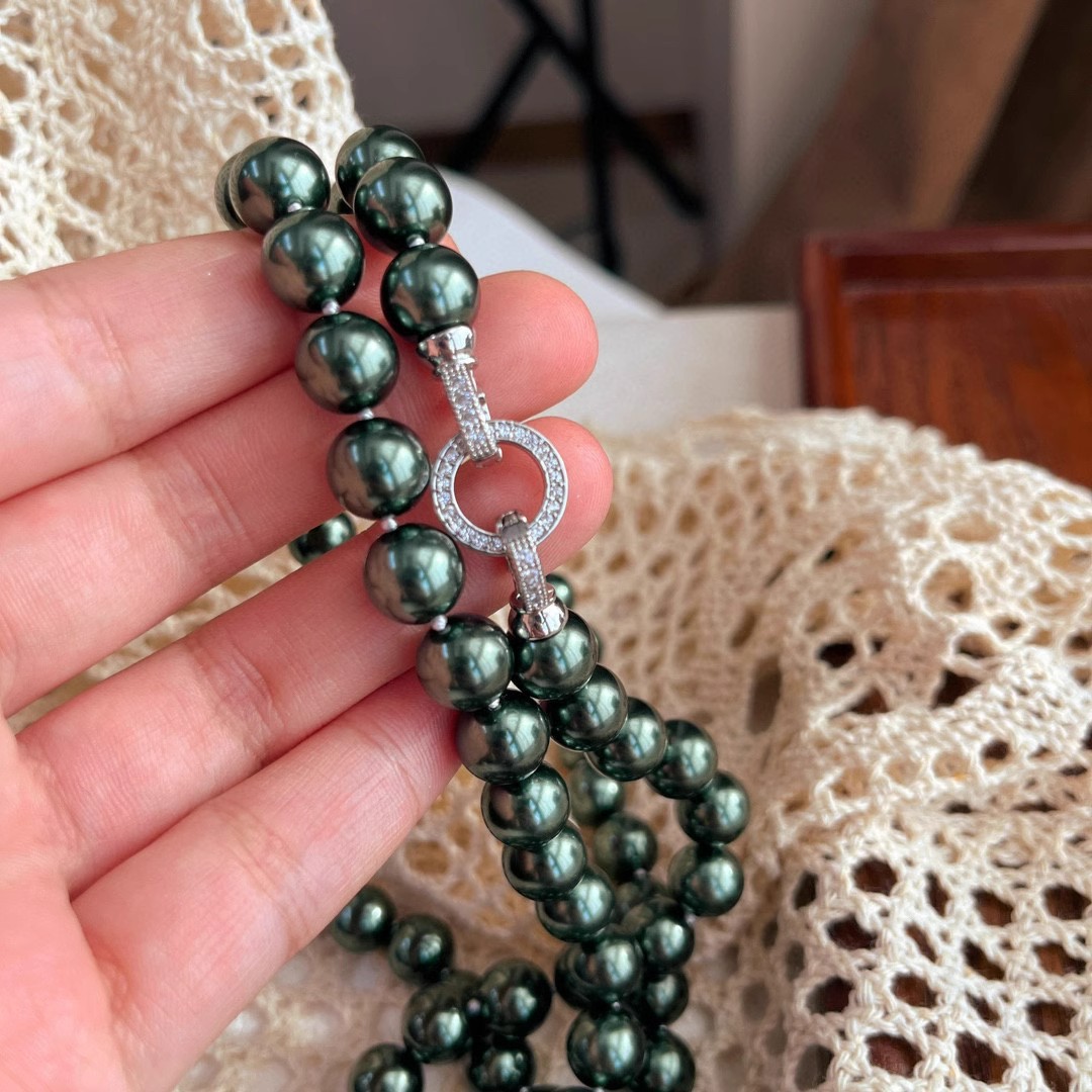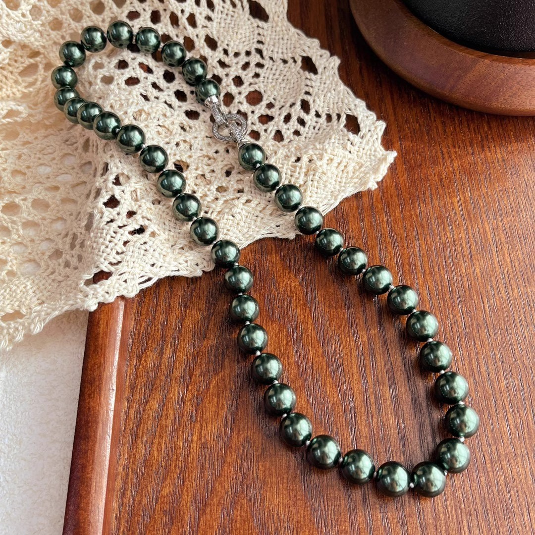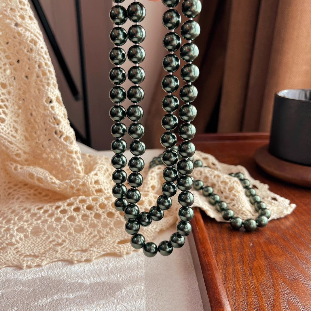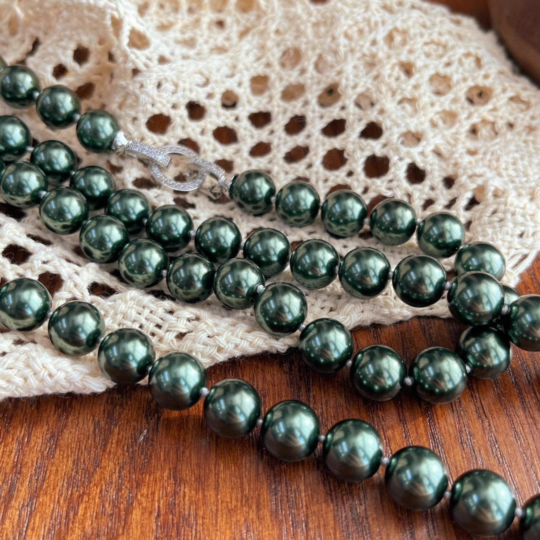 10mm孔雀绿高光大溪地施家黑珍珠珍珠项链颗颗打结感