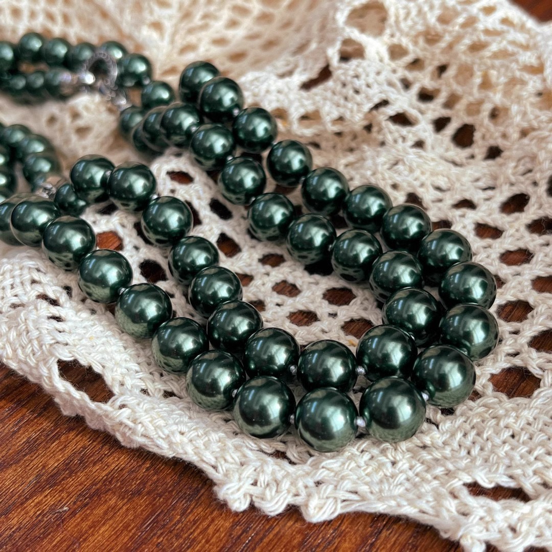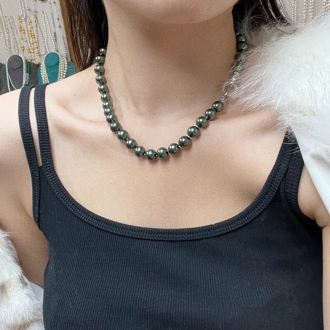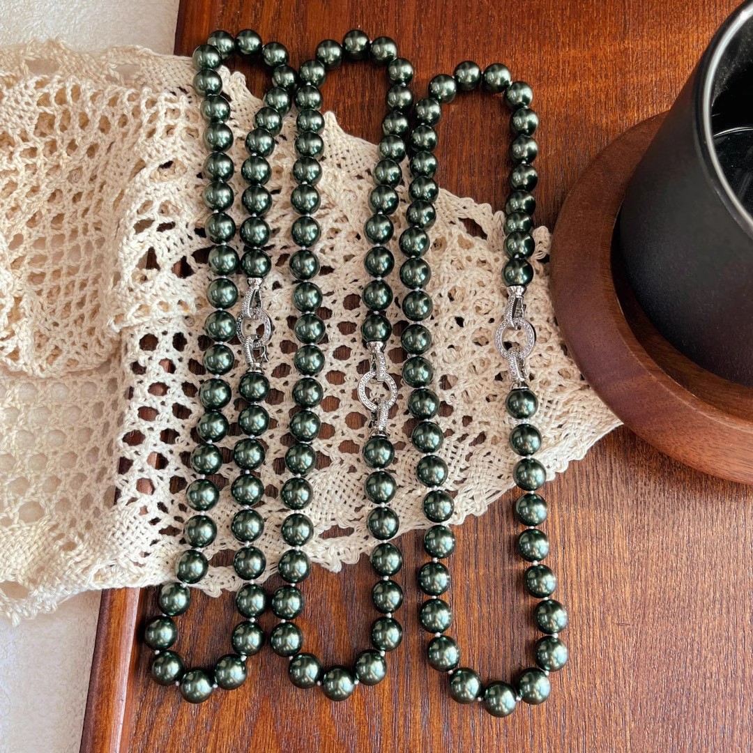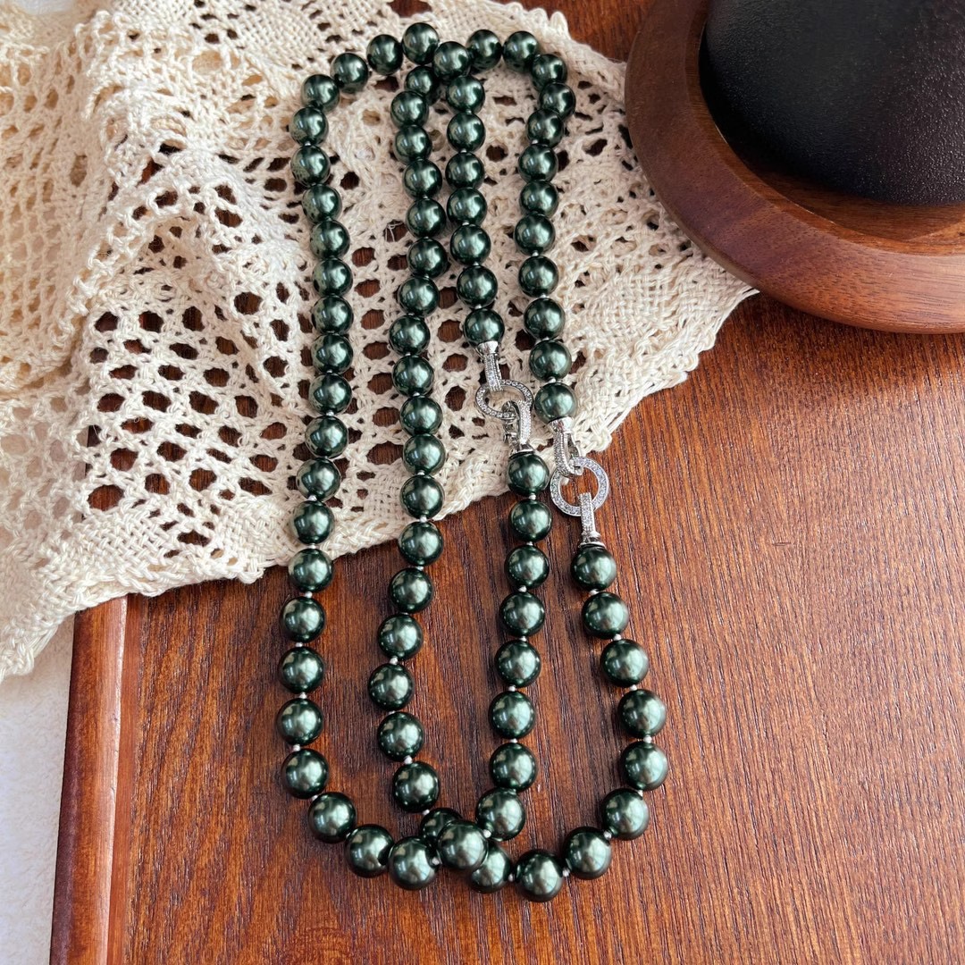 10mm孔雀绿高光大溪地施家黑珍珠珍珠项链颗颗打结感
