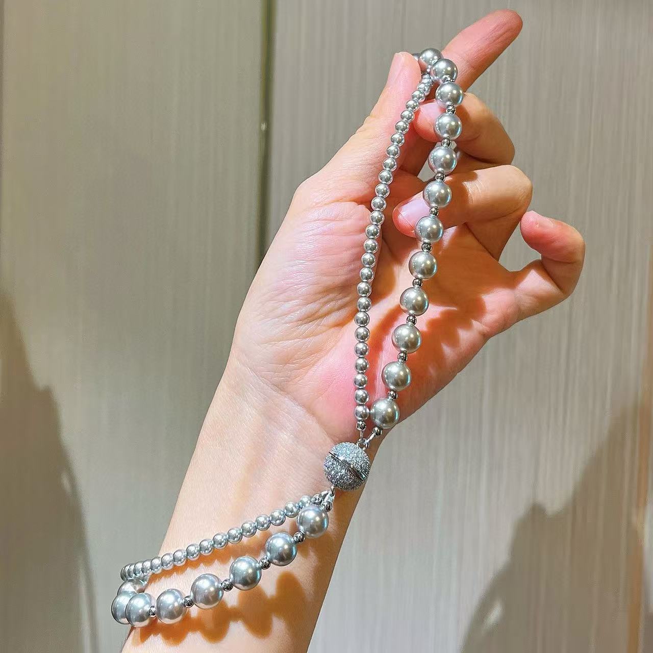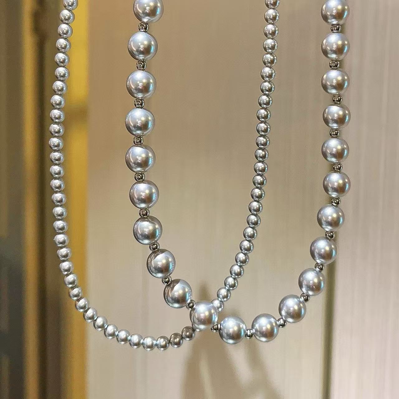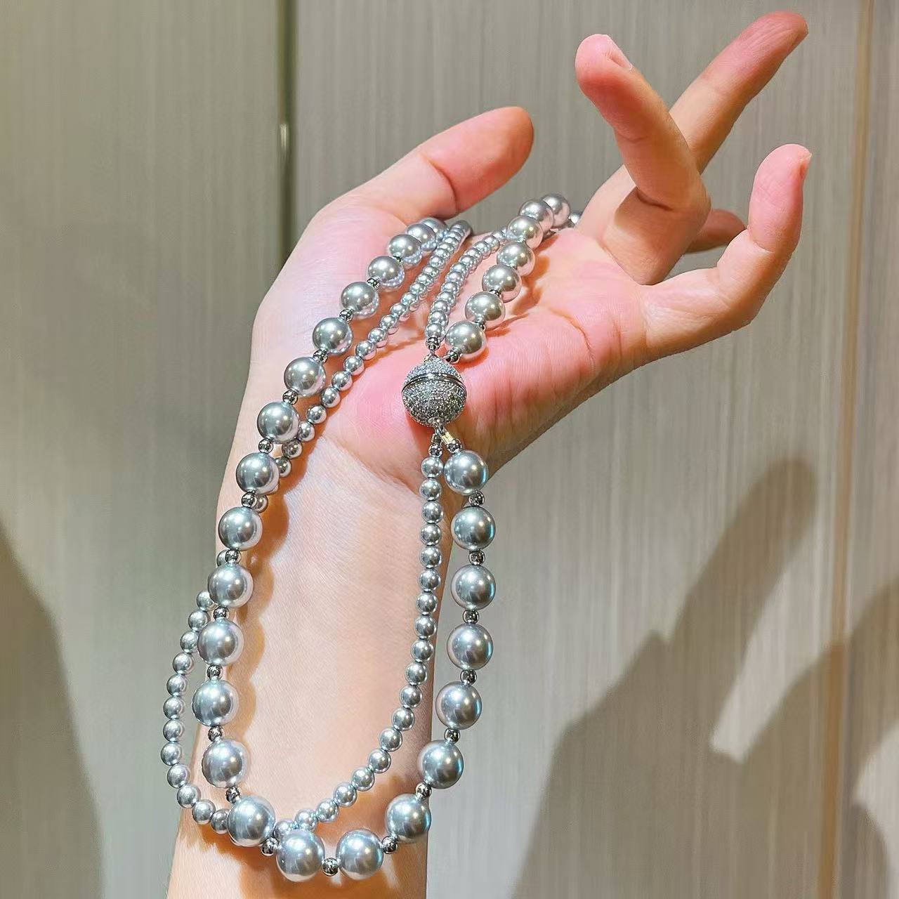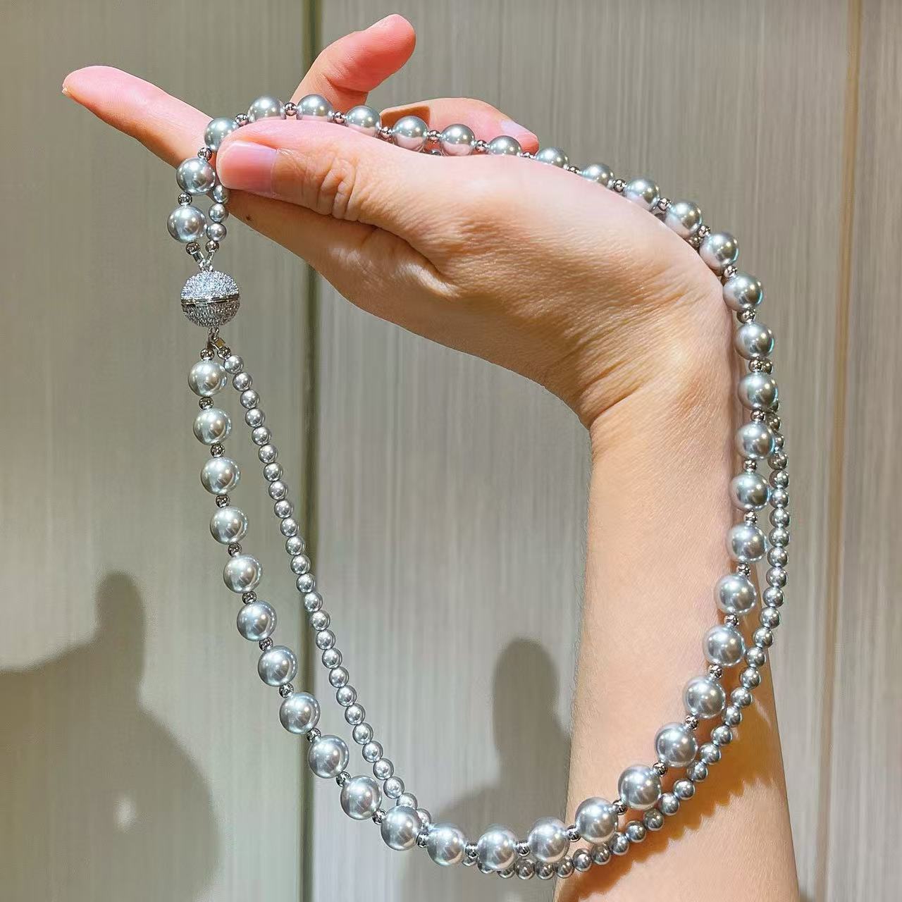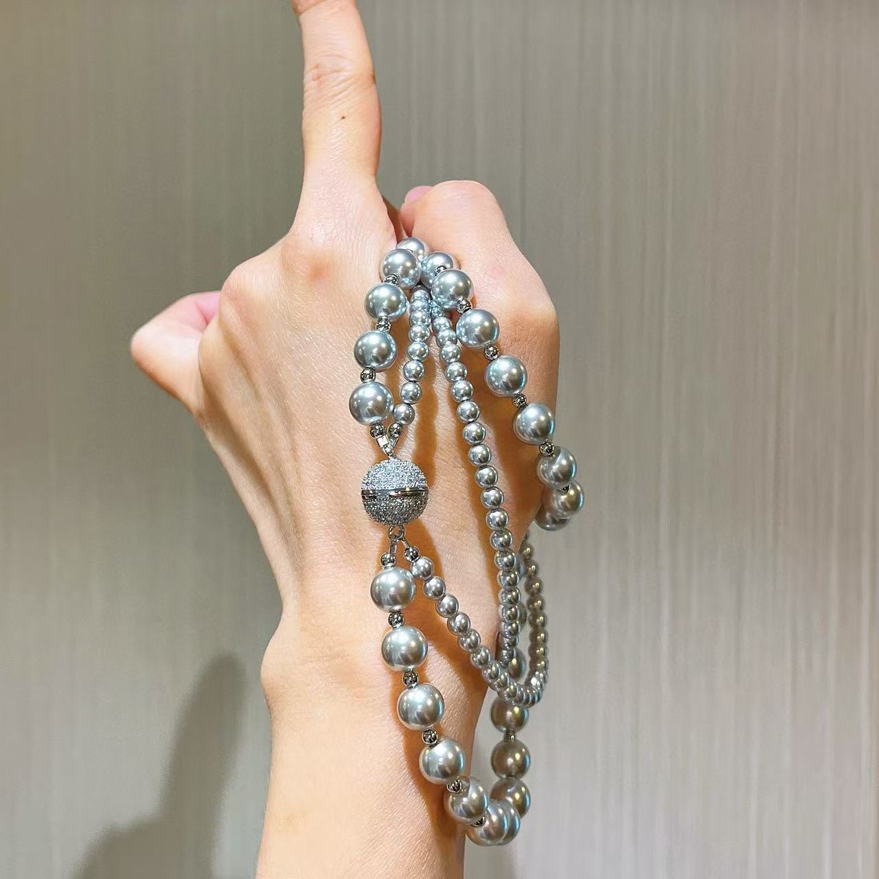 秋冬复古高品质人造水晶仿施家正圆强光珍珠锁骨链双层缠绕颈链