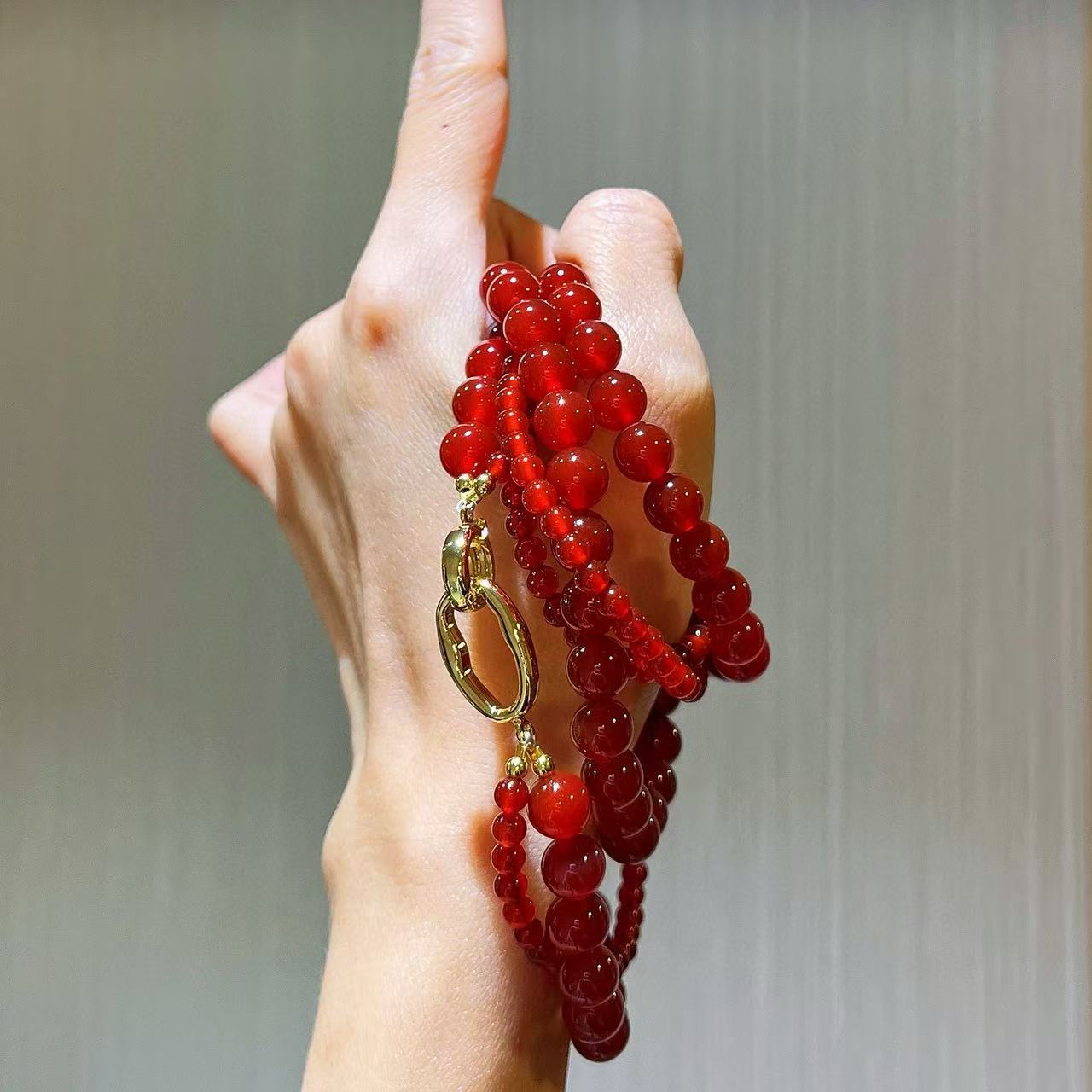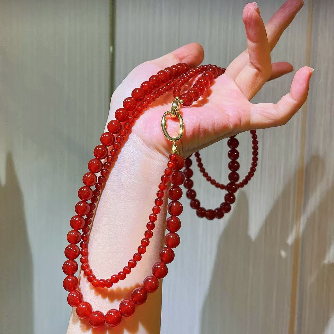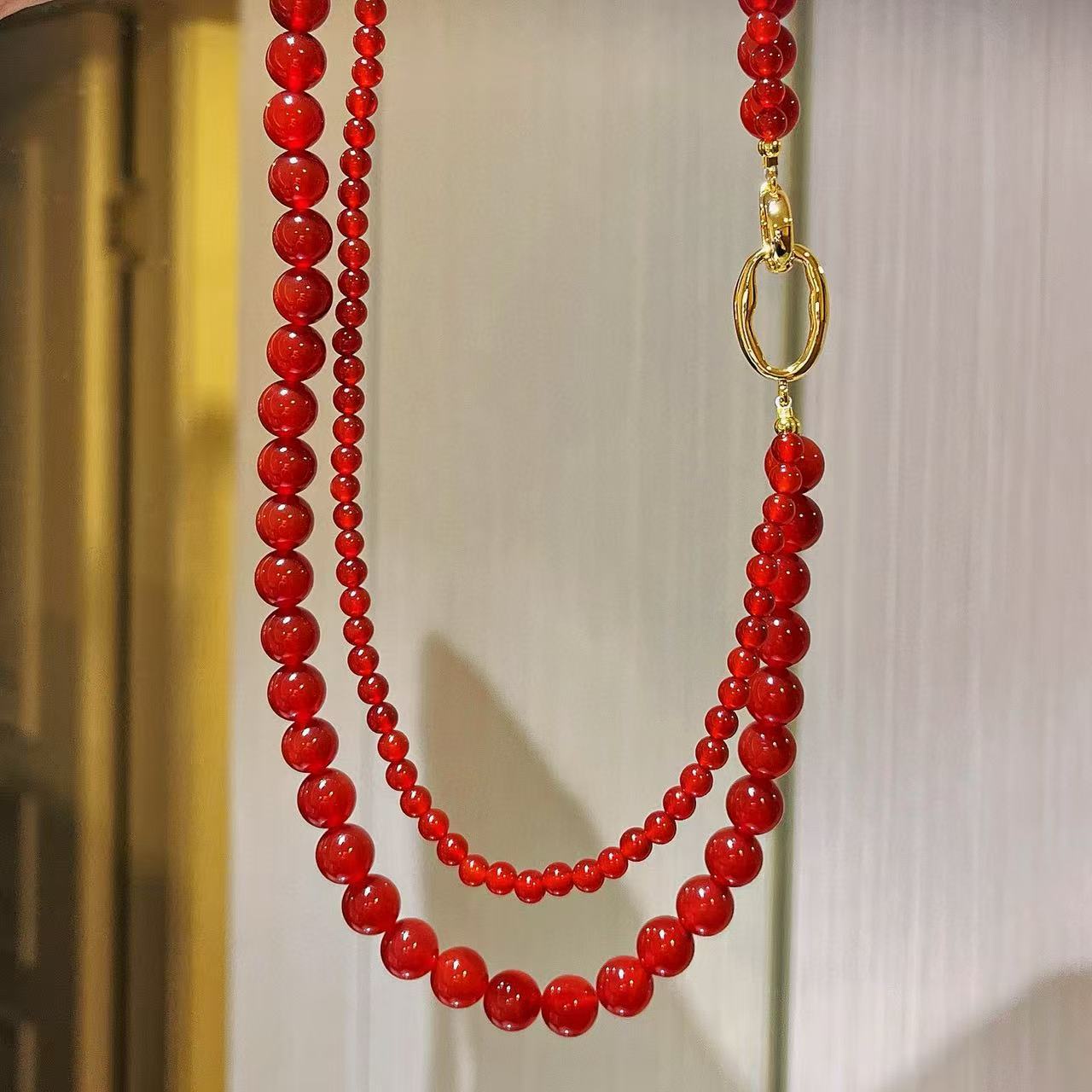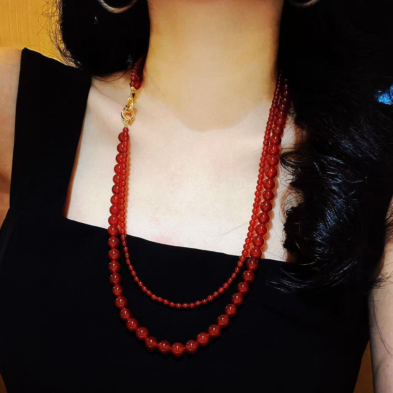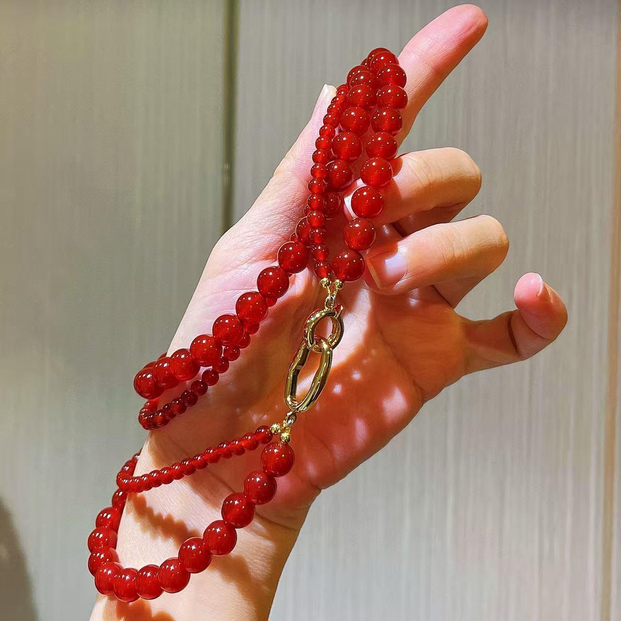 7A秋冬高品质天然红玉髓玛瑙设计感双层毛衣链项链锁骨链