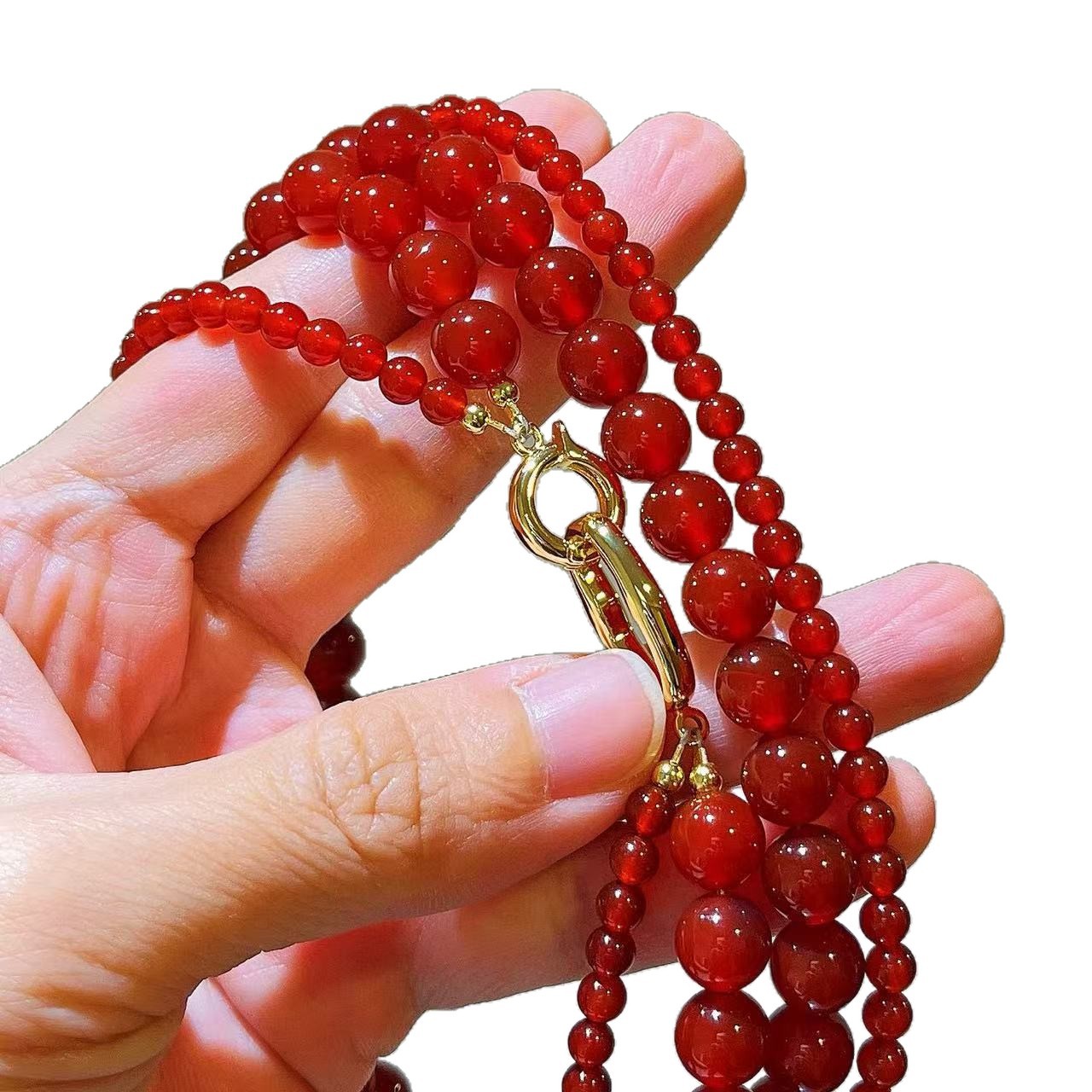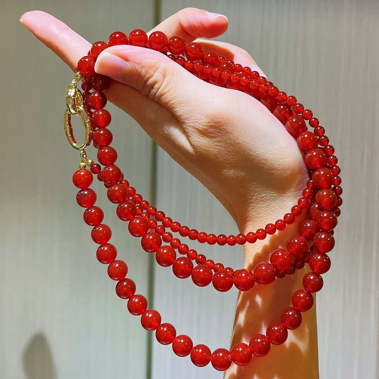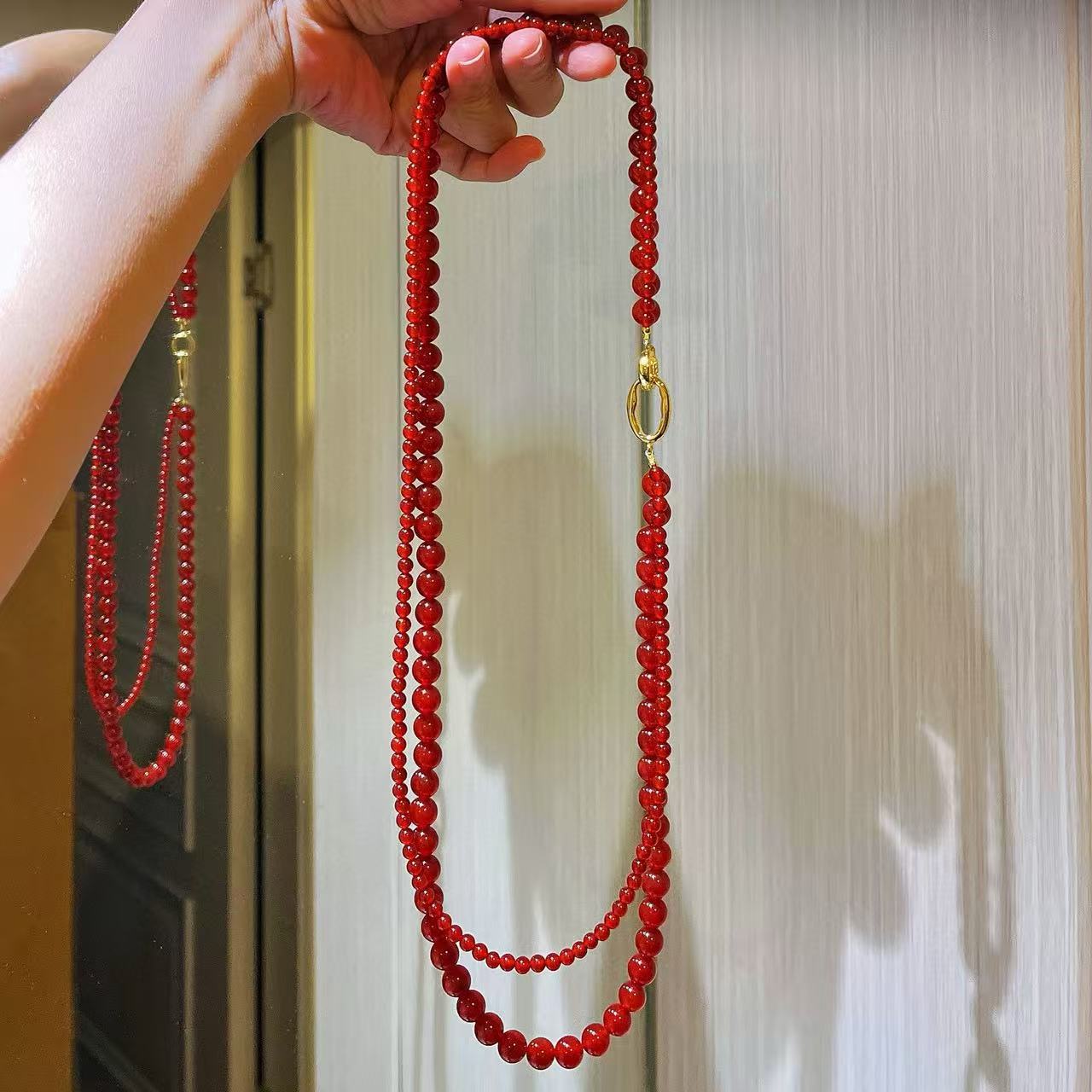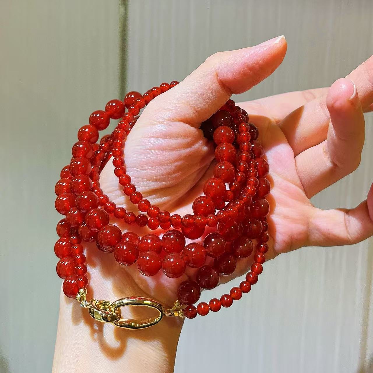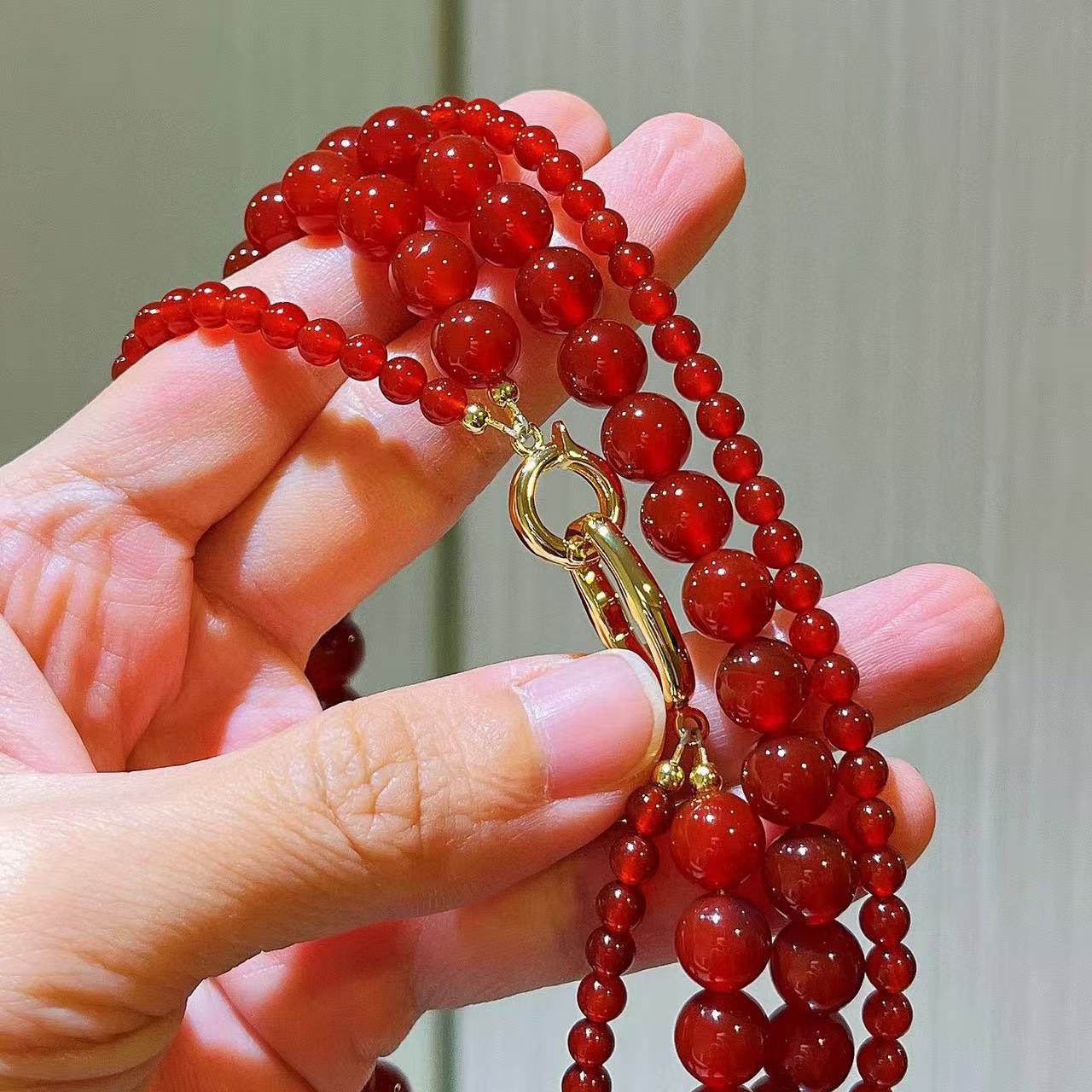 7A秋冬高品质天然红玉髓玛瑙设计感双层毛衣链项链锁骨链