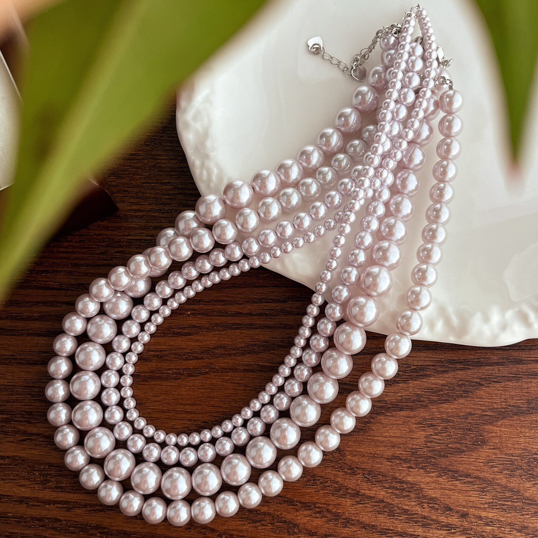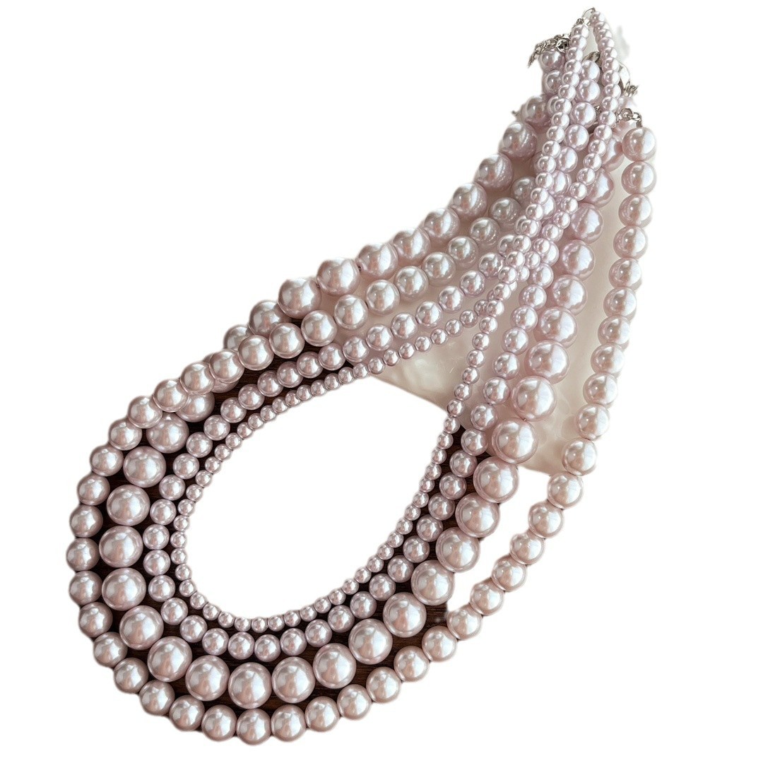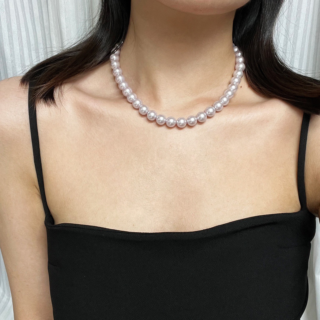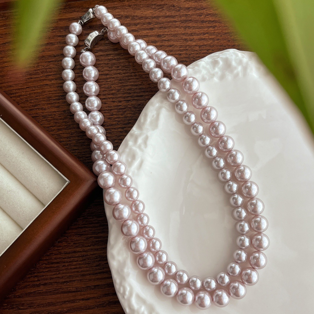 氛围感高品质曼塔玫瑰色人造珍珠锁骨链项链