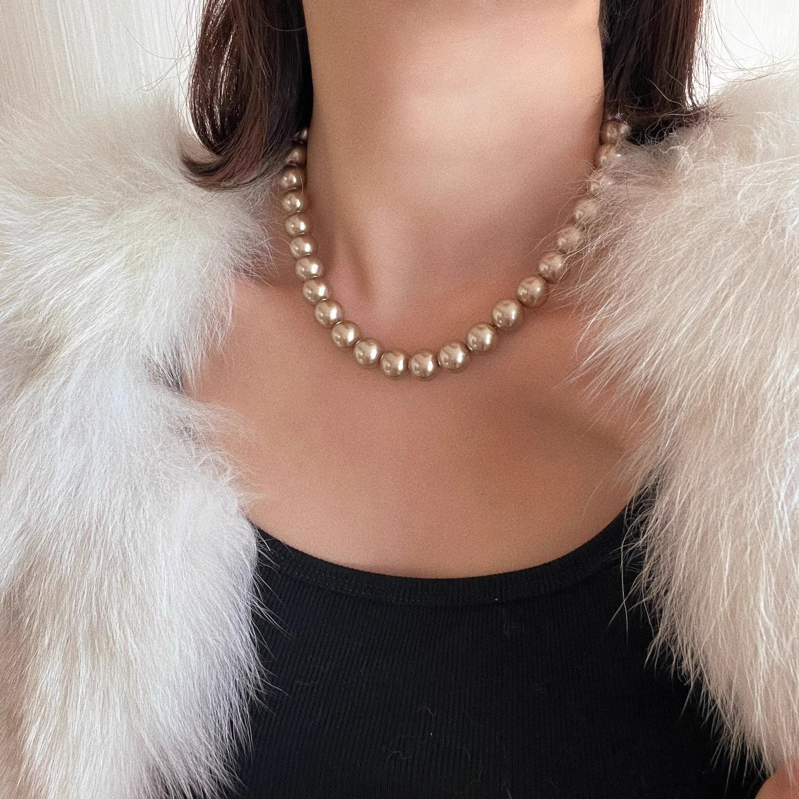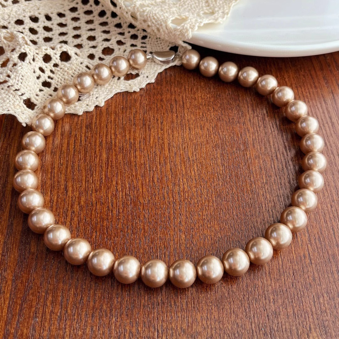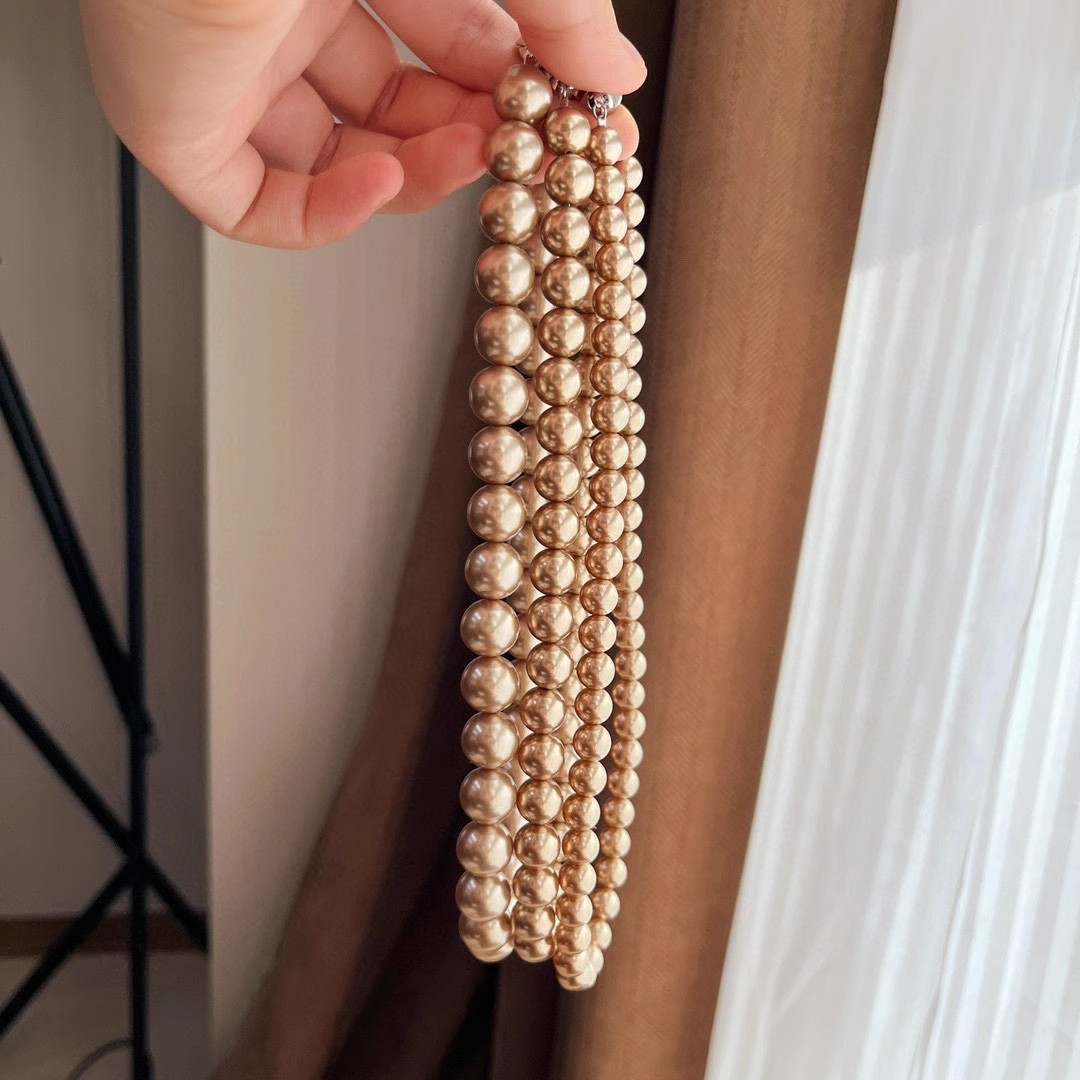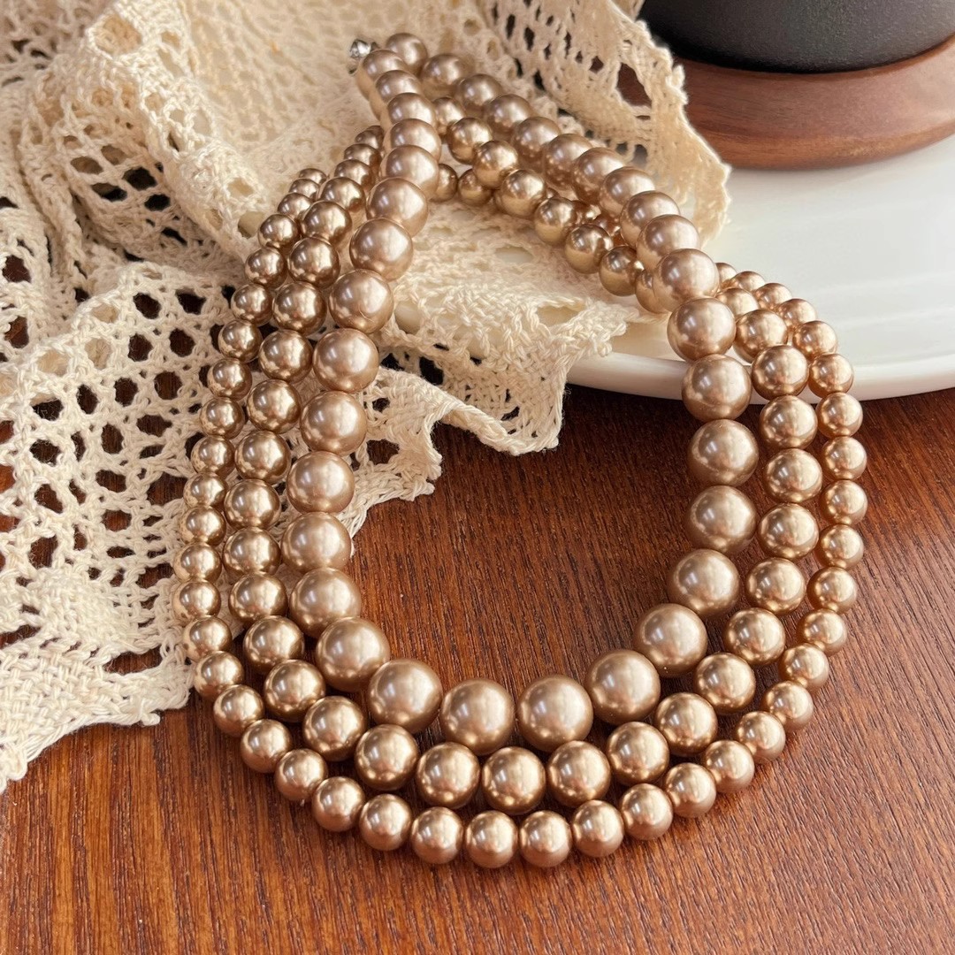 美拉德风金咖色施家珍珠项链女秋冬毛衣链大气轻奢小众感