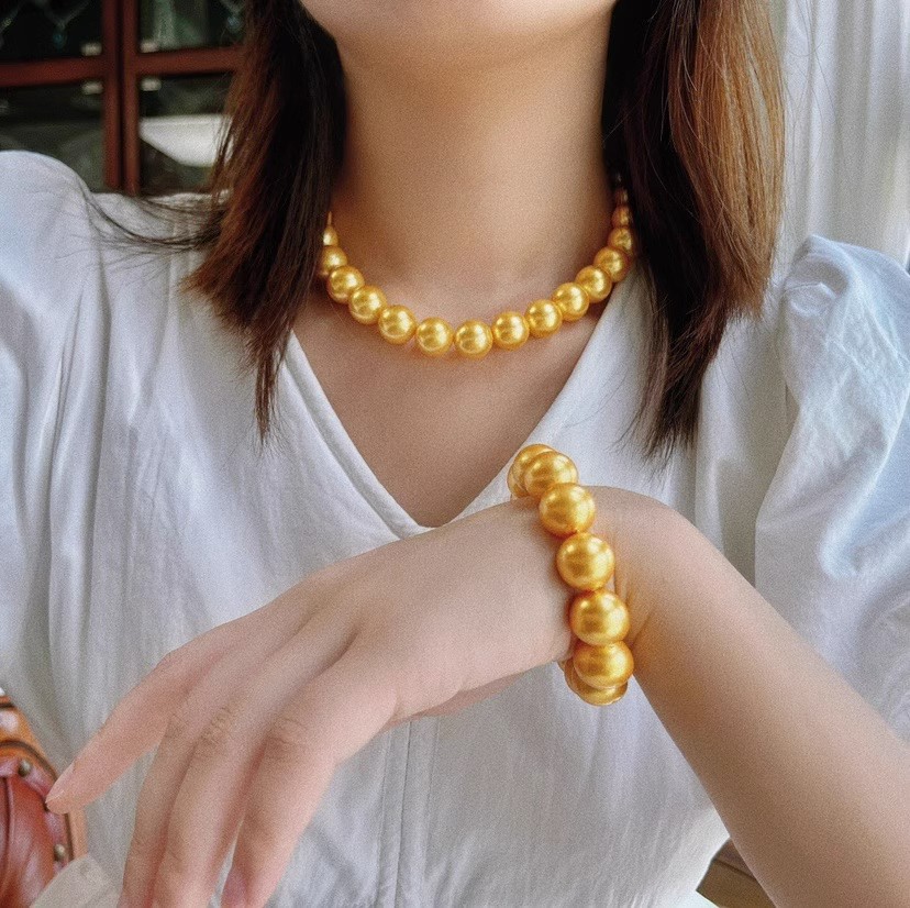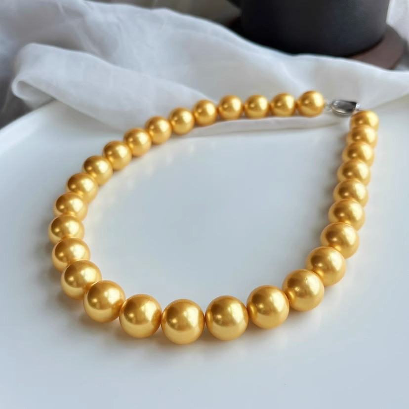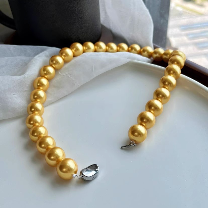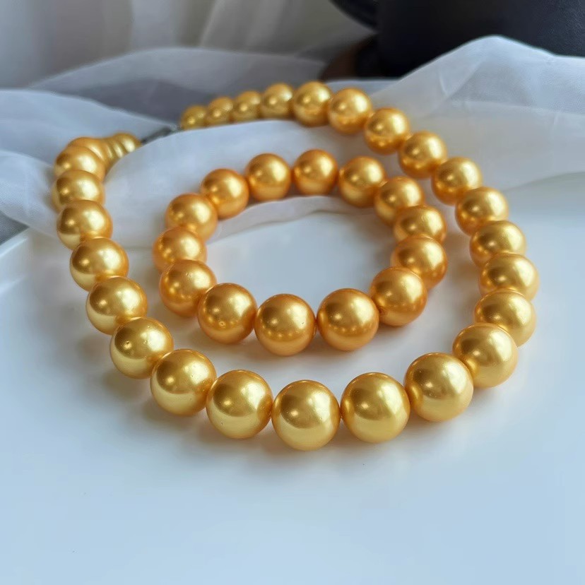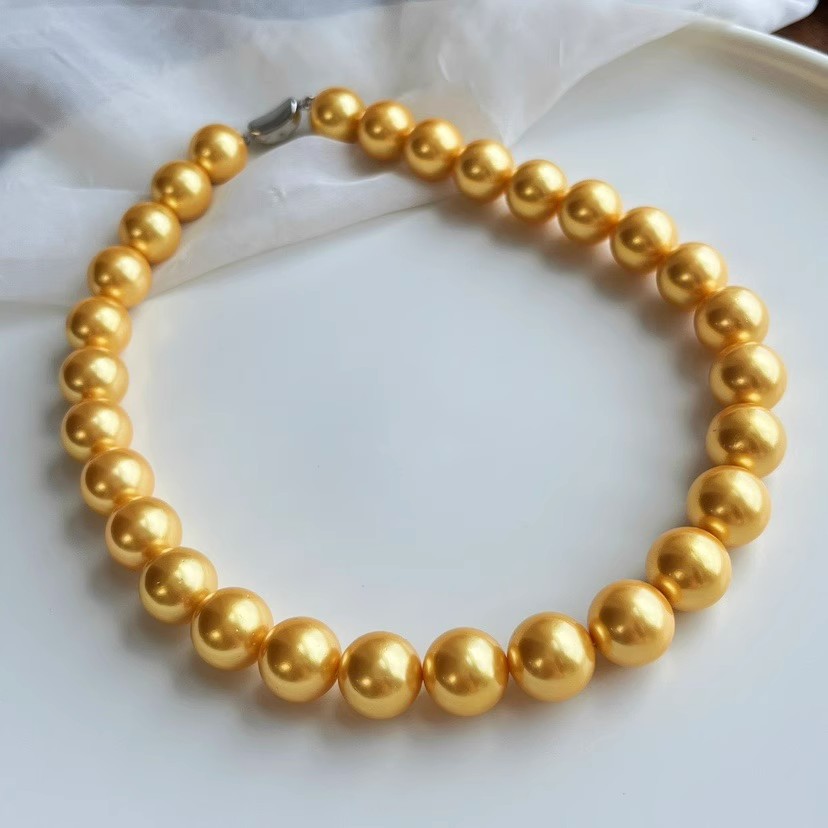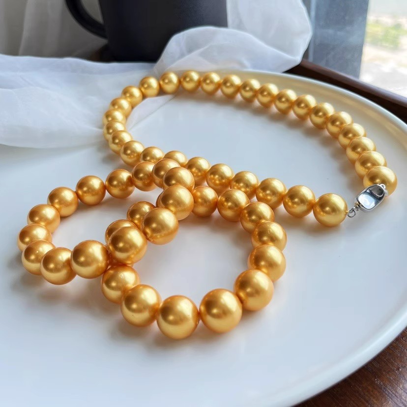 14mm金色大颗粒贝珠人造项链手链套装简约时尚百搭韩版