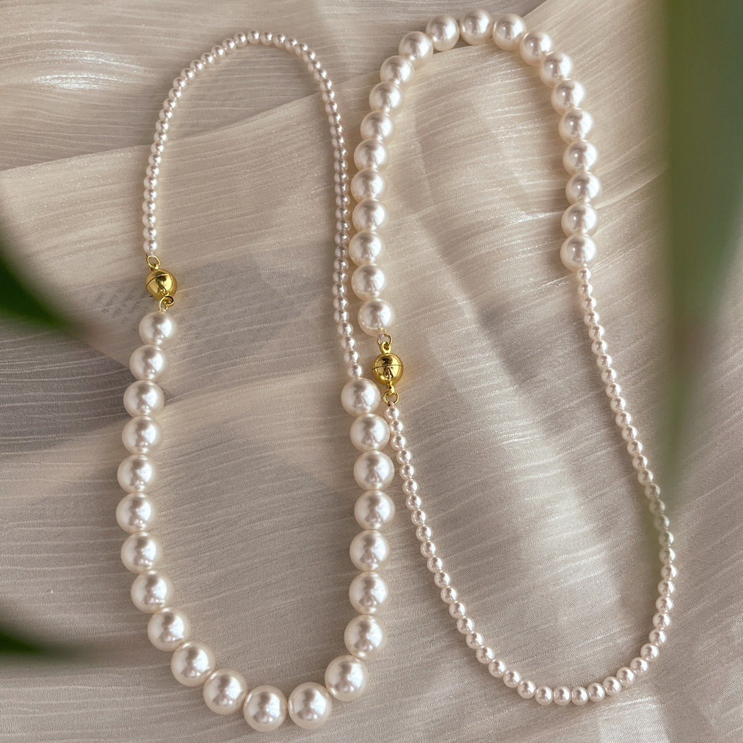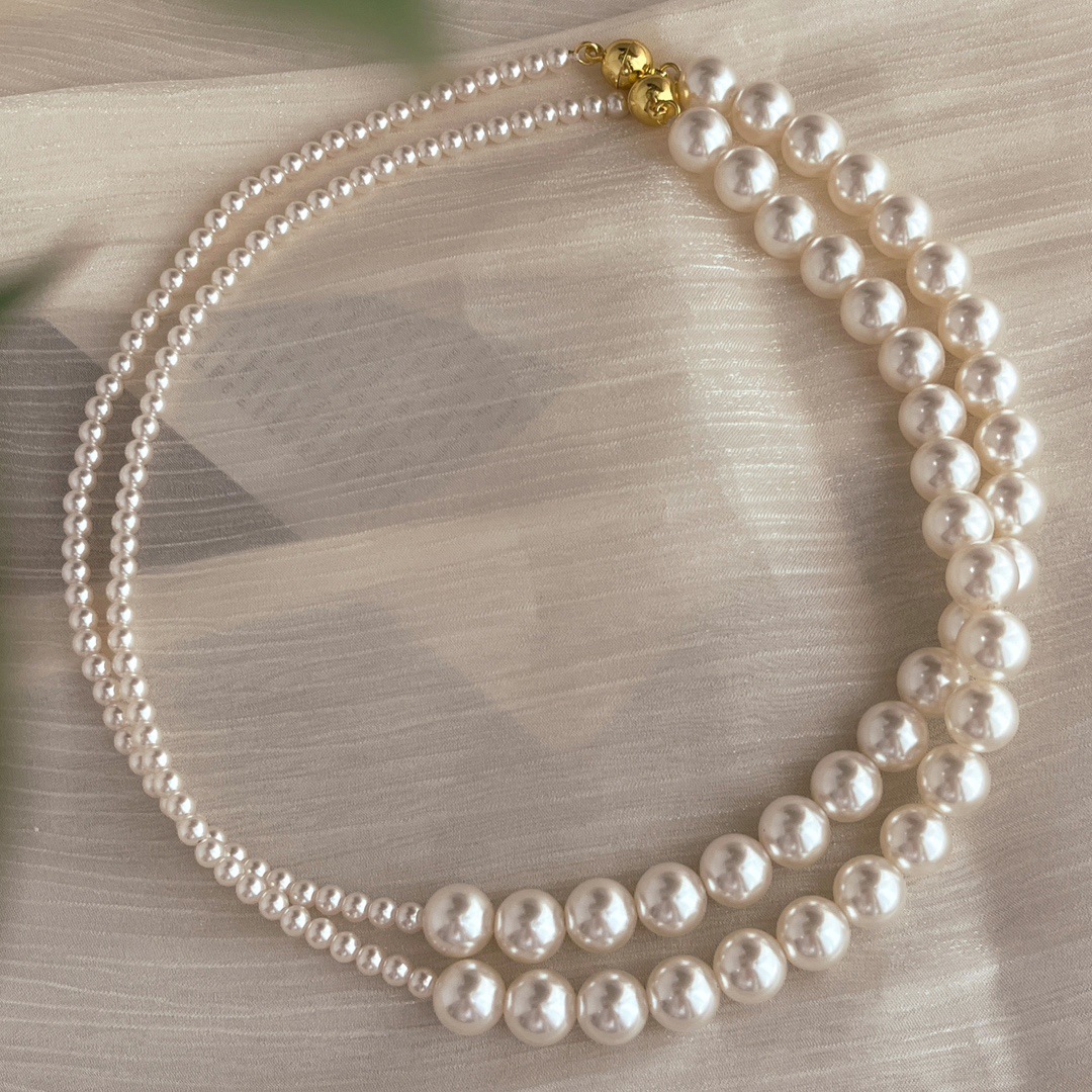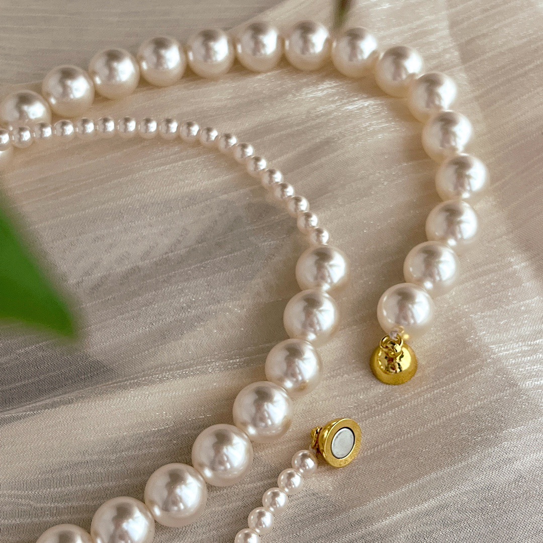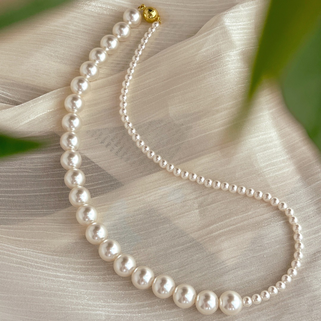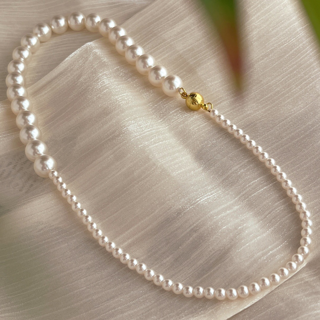 复古中式4mm10mm暖白650色施家正圆珍珠半诗半烟火项链女