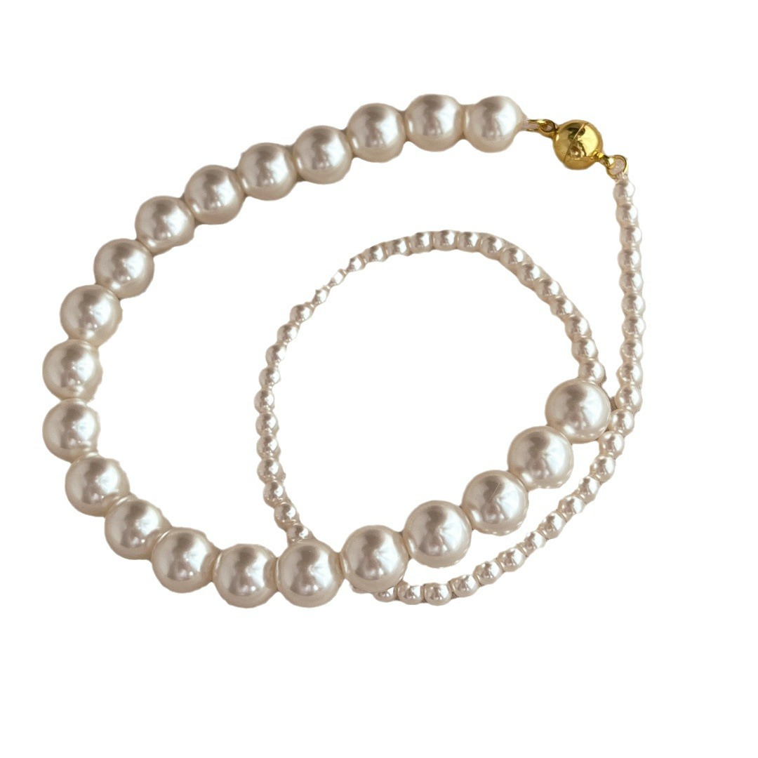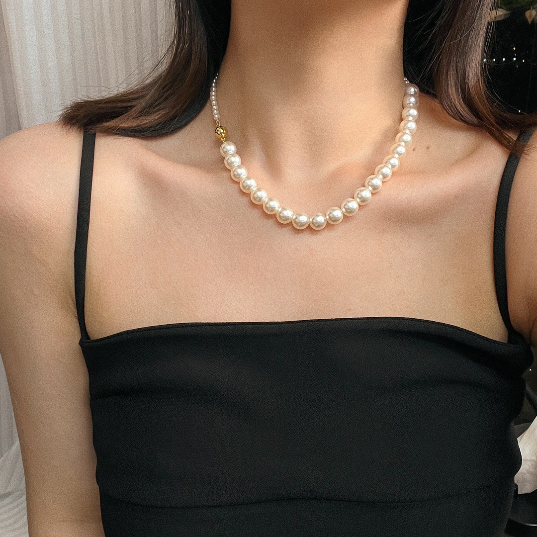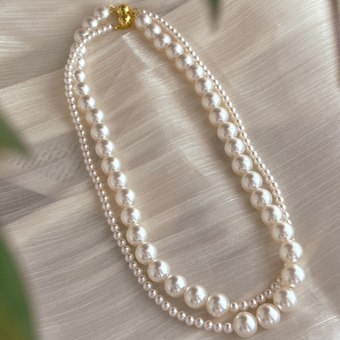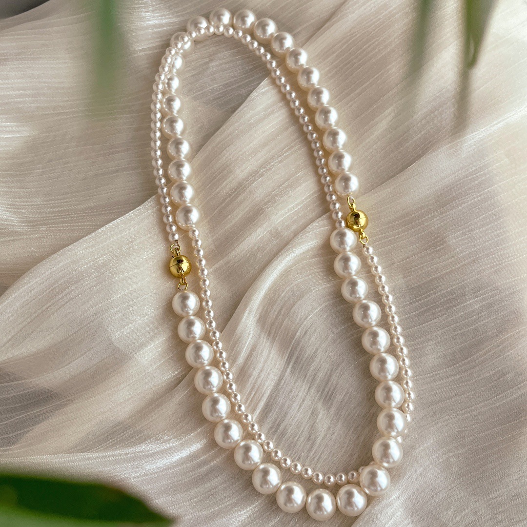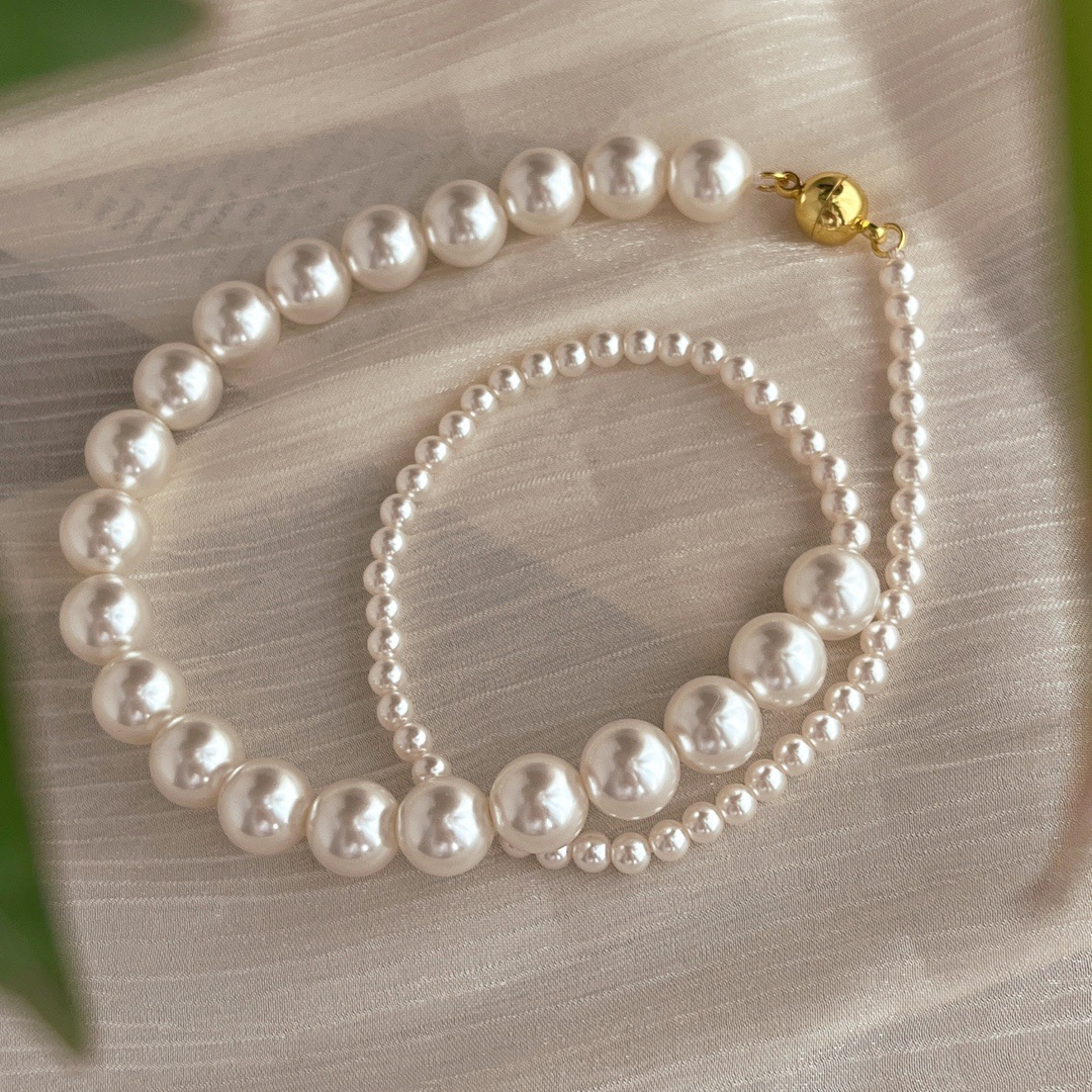 复古中式4mm10mm暖白650色施家正圆珍珠半诗半烟火项链女